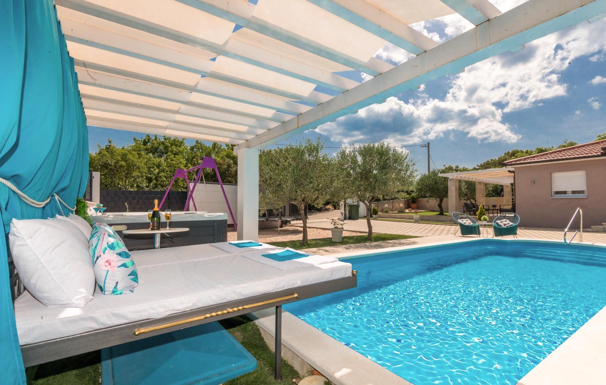 Dieses geschmackvoll eingerichtete Ferienhaus mit Pool liegt auf einem geräumigen und umzäunten Grundstück, nicht weit von der Stadt Imotski entfernt. Der Bungalow ist komplett ausgestattet und bietet Ihnen einen angenehmen Aufenthalt. Erfrischen Sie sich im Pool an heißen Sommertagen, gleich daneben ist auch eine überdachte Terrasse mit Grill für köstliche Mahlzeiten. Hinter dem Haus ist der Freizeitraum mit Billard und anderen Aktivitätsmöglichkeiten. Spielgeräte im Freien tragen zur Unterhaltung der Kinder bei. Besuchen Sie die Stadt Imotski mit vielen kulturellen Veranstaltungen während der Sommermonate, sowie den Roten und Blauen See. Besuchen Sie auch die herrlichen Kiesstrände an der Riviera von Makarska. Genießen Sie das paradiesische Ambiente inmitten von unberührter Natur.