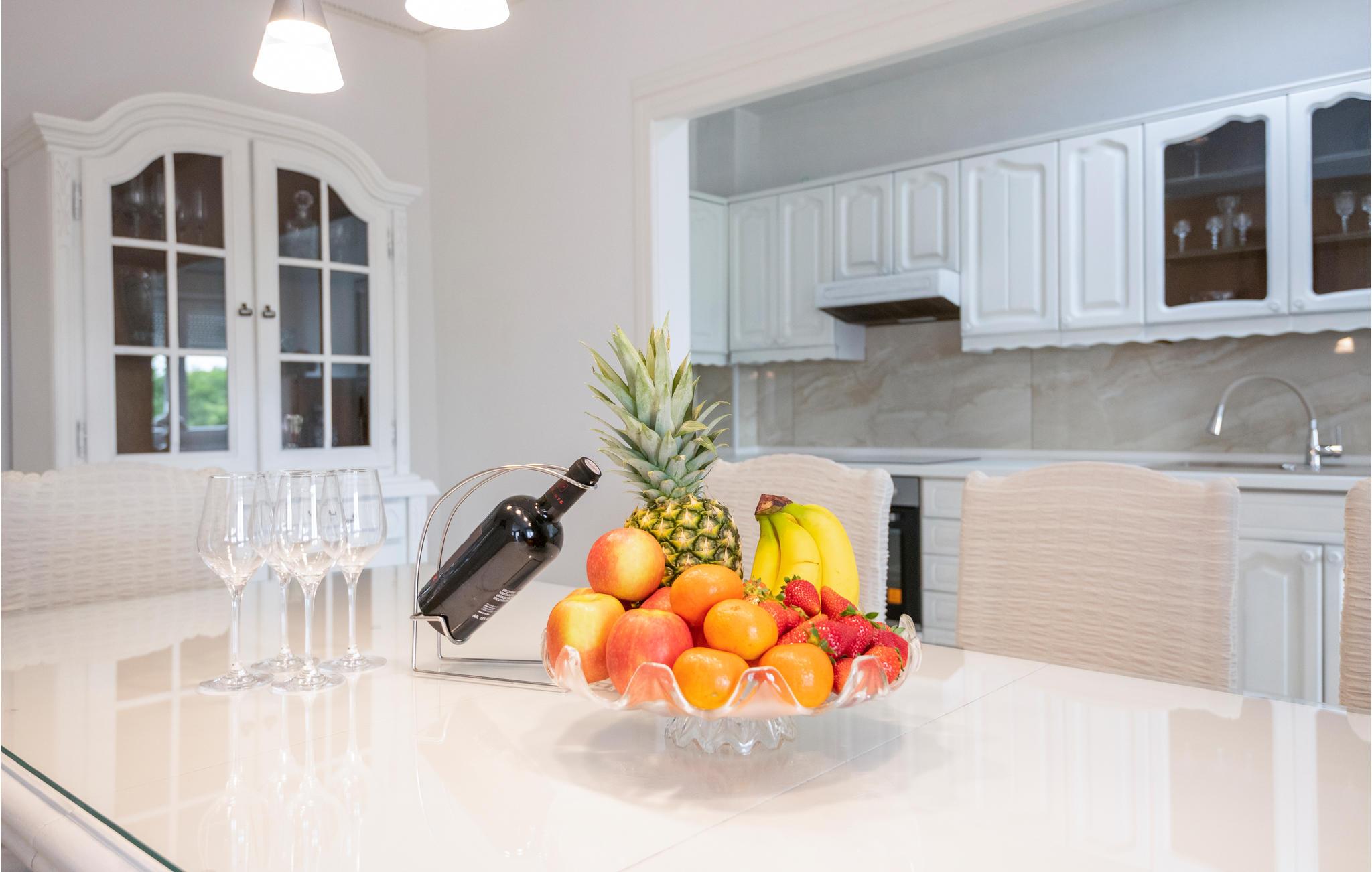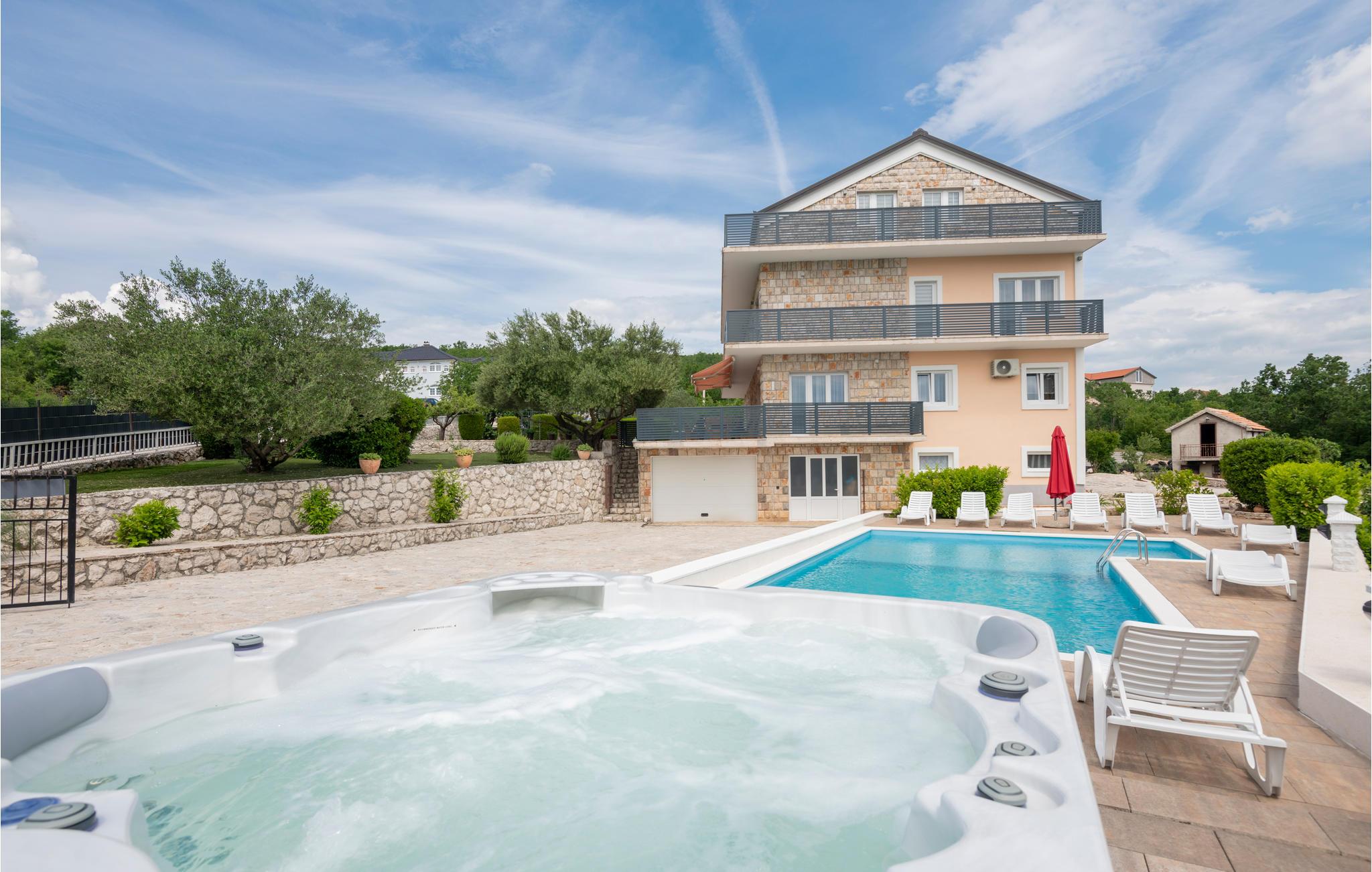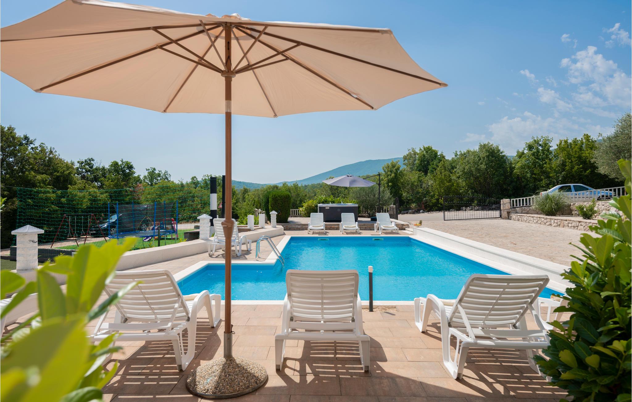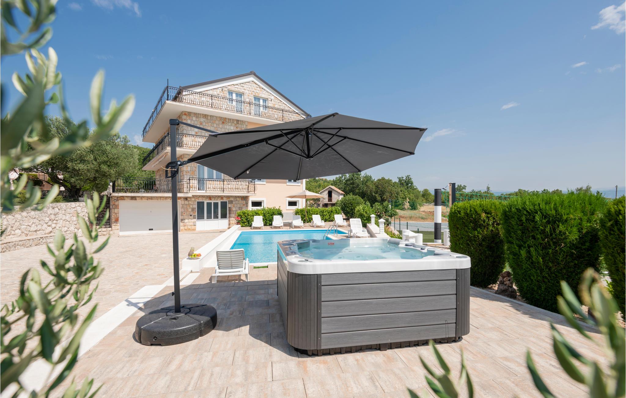 Dieses Haus verfügt über drei angelegte Etagen, mit jeweils Aufenthaltsmöglichkeiten, extra Toiletten und zusätzlich auch einem Fitnessraum im ersten Stock. Dasselbe ist somit ideal für eine große Freundesgruppe oder mehrere Familien die gemeinsam Urlaub machen wollen. Das Haus verfügt über mehrere Balkone und Terrassen, wobei es vor dem Haus ist eine Terrasse mit Grill gibt. Zudem finden Sie hier auch einen Spielplatz für Kinder, einen Fußballplatz mit Basketballkorb und Badminton, sowie einen größtenteils eingezäuntem Hof. Genießen Sie Stunden am Pool, grillen gemeinsam auf der Terrasse oder baden Sie sich bequem in der Sonne.
