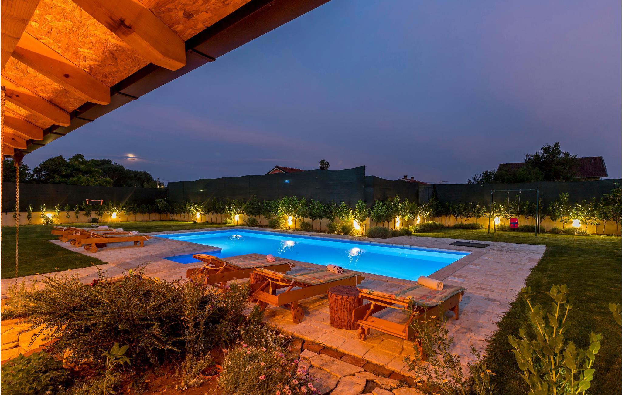 Es bietet ein gemütlich, rustikales Interieur, eine sehr gute Ausstattung und viele Unterhaltungsmöglichkeiten auf dem umzäunten Grundstück. Alle Etagen sind mit Innentreppen verbunden. Im geräumigen Außenbereich mit Pool, Whirlpool, Kinderspielzeug und überdachtem Essbereich mit Grill bietet Platz für endlosen Spaß und angenehme Entspannung.