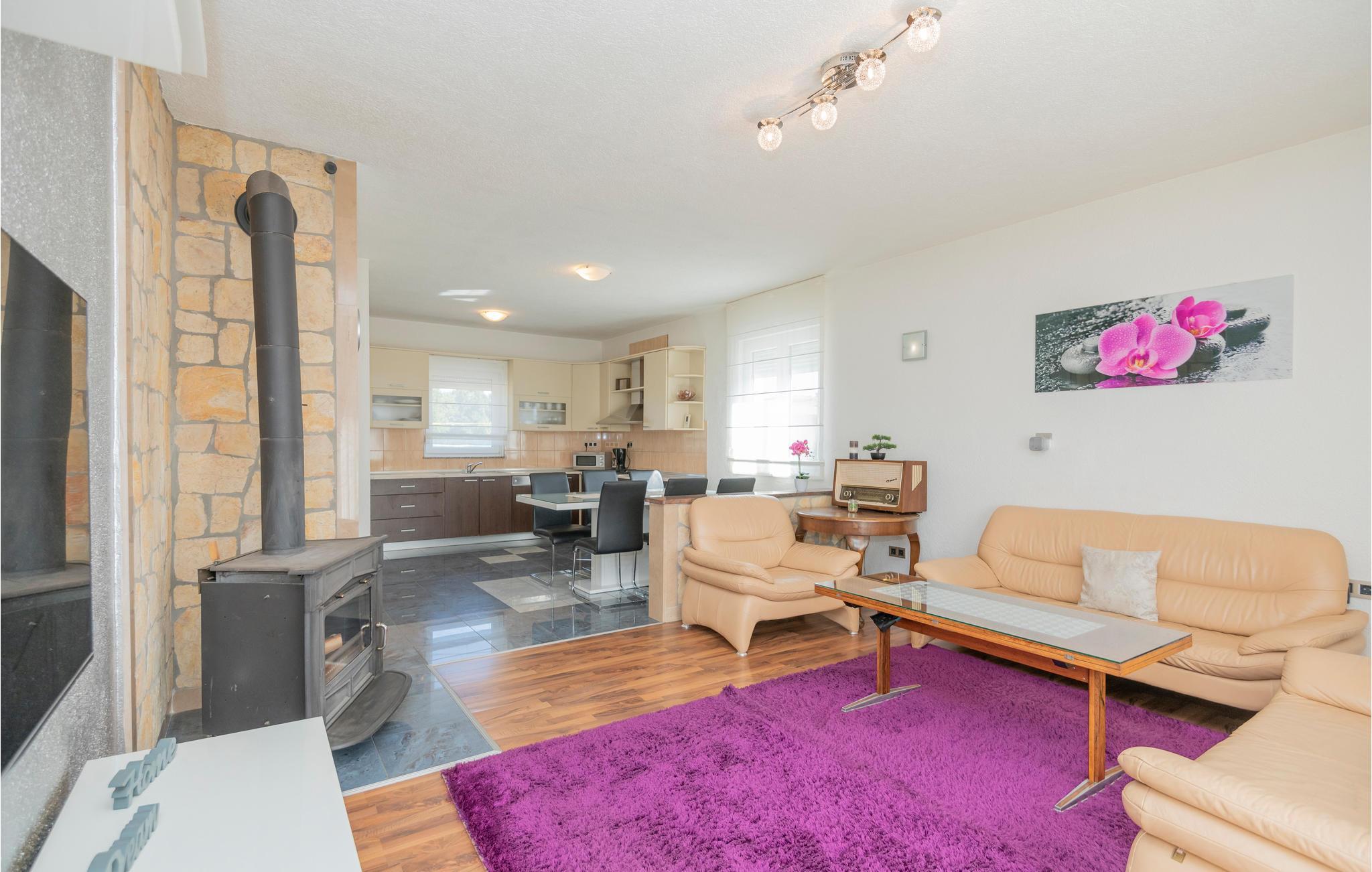 Dieses komfortable Ferienhaus mit Pool liegt in idyllischer Umgebung im Landeinneren Mitteldalmatiens. Es liegt auf einem großen Grundstück, nur wenige Fahrminuten mit dem Auto von Imotski entfernt. Der komplette Wohnbereich ist im Erdgeschoß untergebracht und vor dem Haus können Sie sich im Pool erfrischen, während sich die Kinder im Spielbereich unterhalten. Auf der Terrasse mit Grill können Sie gesellige Stunden erleben. Schöne Kiesstrände und Freizeitmöglichkeiten erwarten Sie in Makarska, Brela und Baška Voda, in nur etwa einer halben Stunde mit dem Auto.