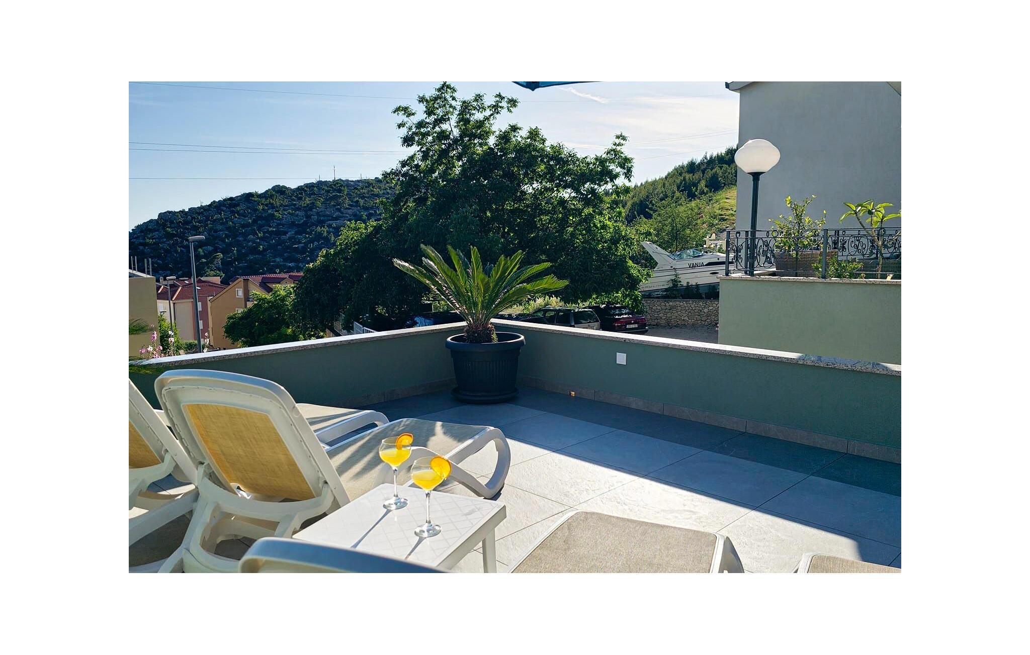 In einem ansprechenden Haus mit mehreren Wohneinheiten erwarten Sie diese beiden komfortablen und funktionalen Ferienwohnungen. Die Ferienwohnung CDT832 ist die größere der beiden Wohnungen, sie hat zwei Schlafzimmer, zwei Bäder, Küche und Wohnzimmer und Sie können den Anreisetag dort frei wählen. Die Ferienwohnung CDT833 hat dagegen ein Schlafzimmer, Bad, Küche und Wohnzimmer. Beide Wohnungen verfügen über eine Terrasse mit Panoramablick auf das Meer für schöne Stunden im Freien. Es gibt auch einen Grill für die Zubereitung schmackhafter Gerichte. Weitere Annehmlichkeiten für einen komfortablen Aufenthalt finden Sie in Zentrum von Makarska, das ca. 2 km entfernt ist.