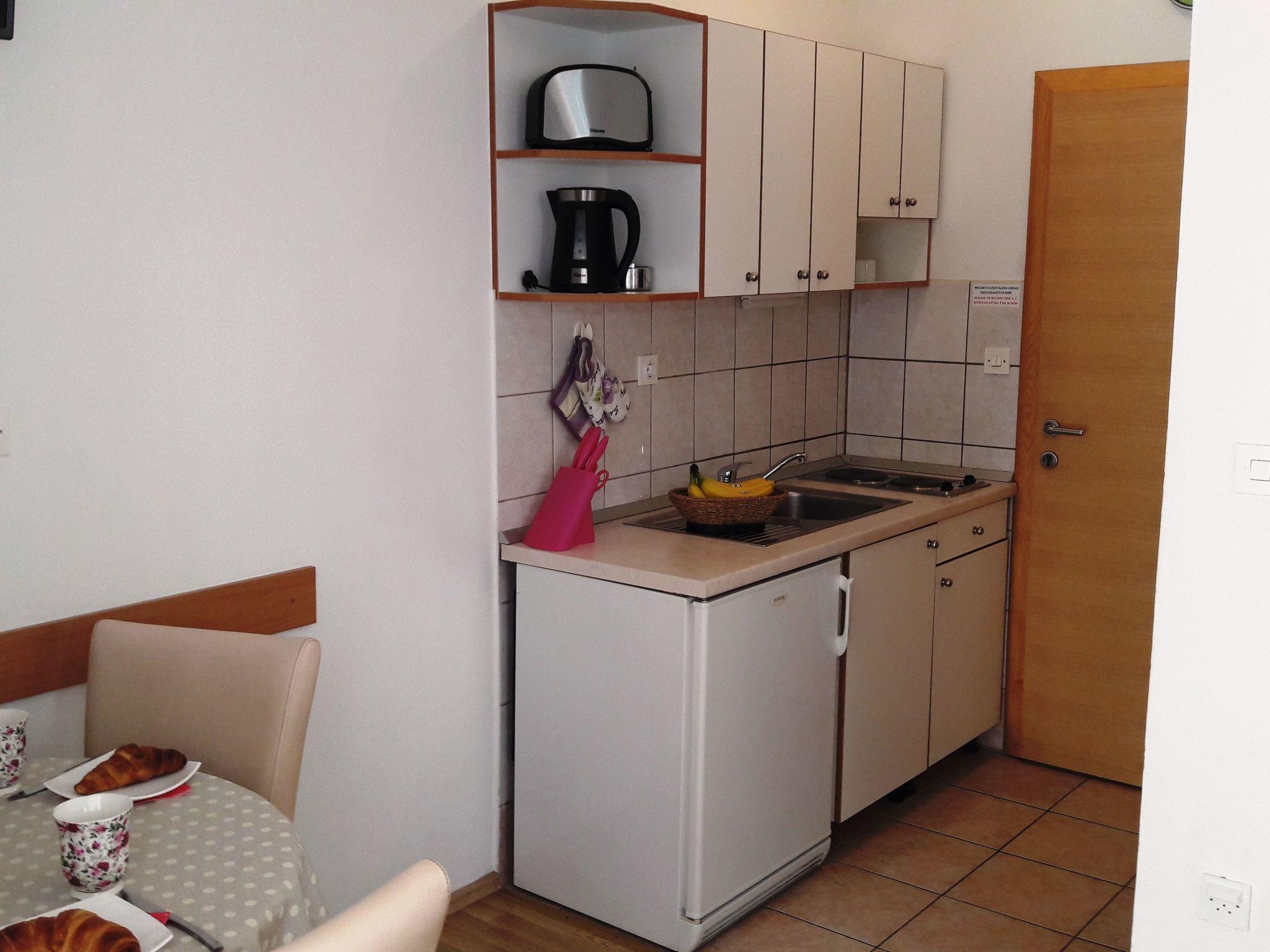 This apartment is on the second floor of a three-storey building. It is located in the center of Makarska, just 300m from the pebbly beach. The owners live next door, so they are always at your service.Cosy holiday apartment on the top floor, for up to four people, with a view over the Makarska Riviera and the Biokovo mountains from the private sunny balcony