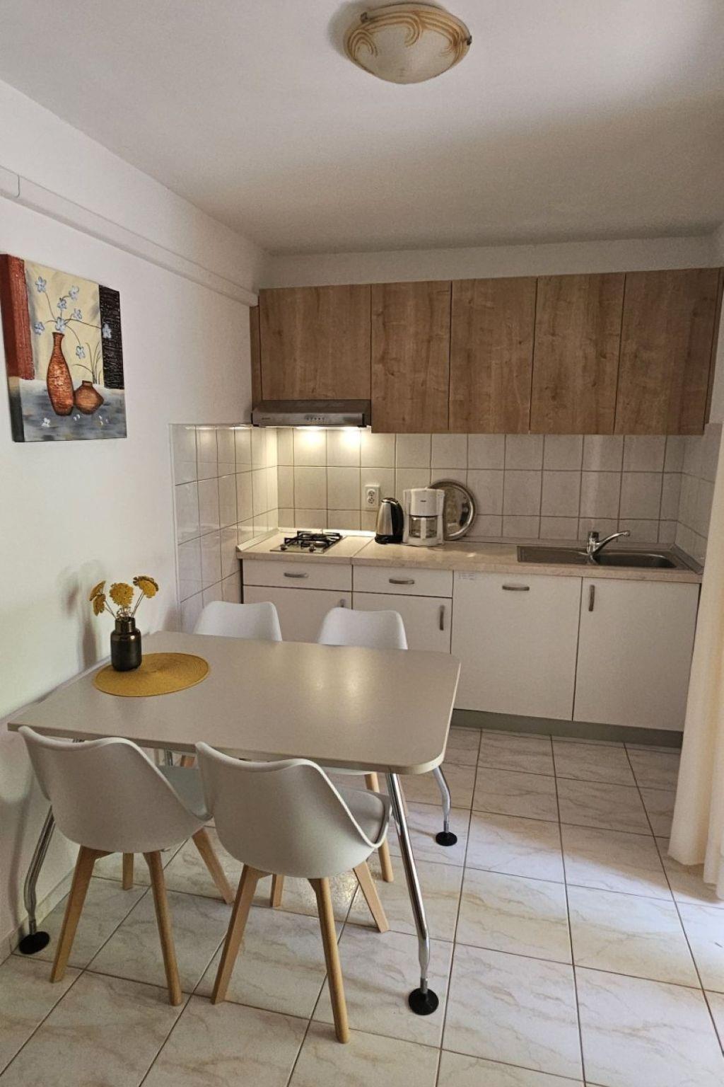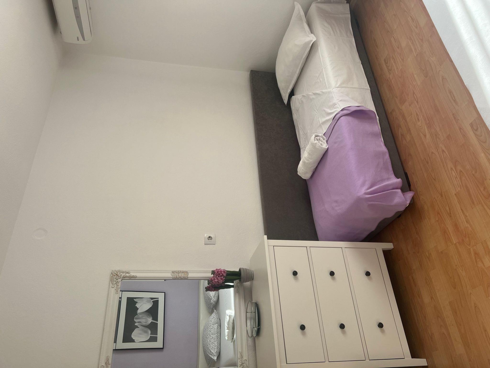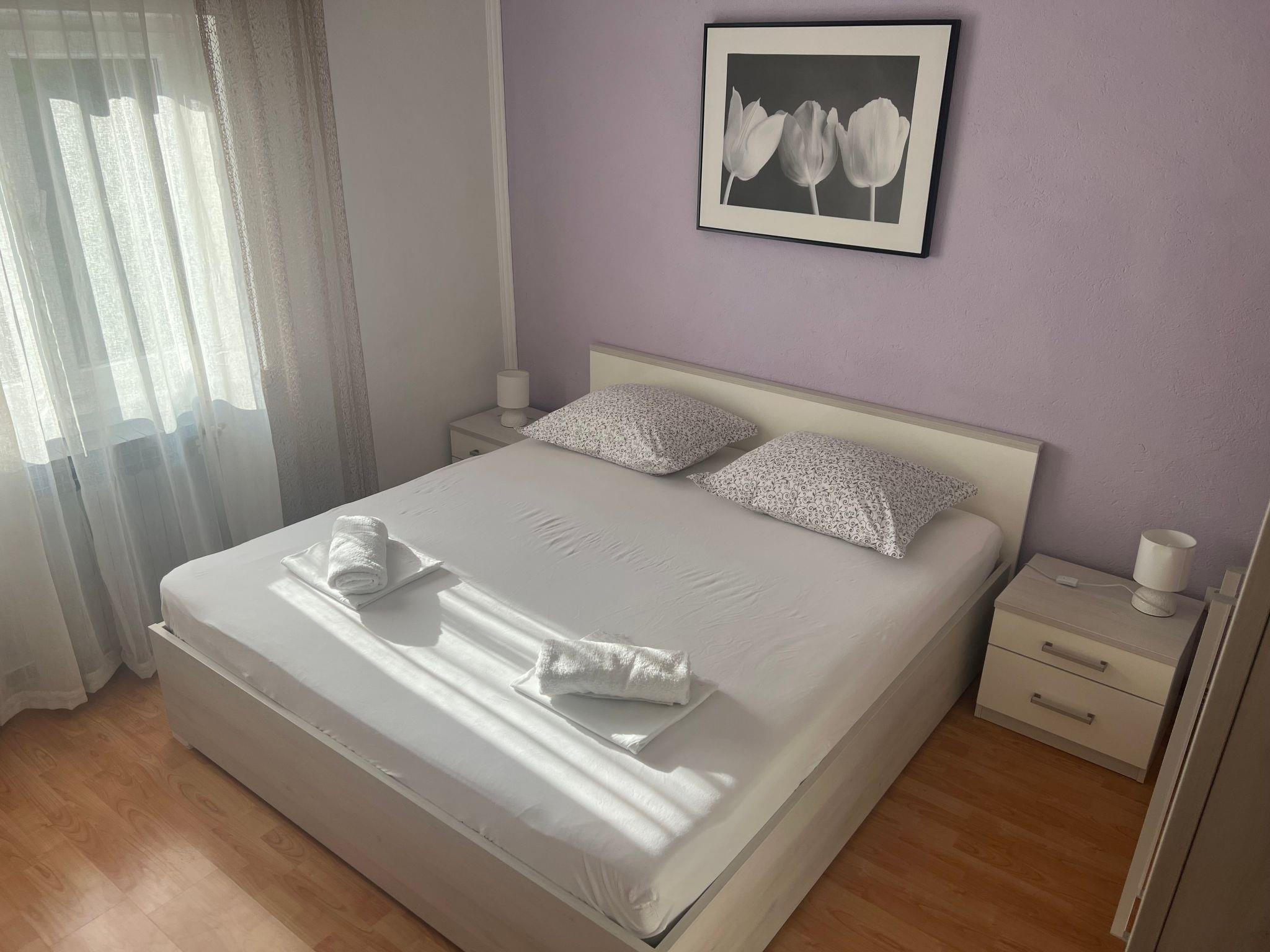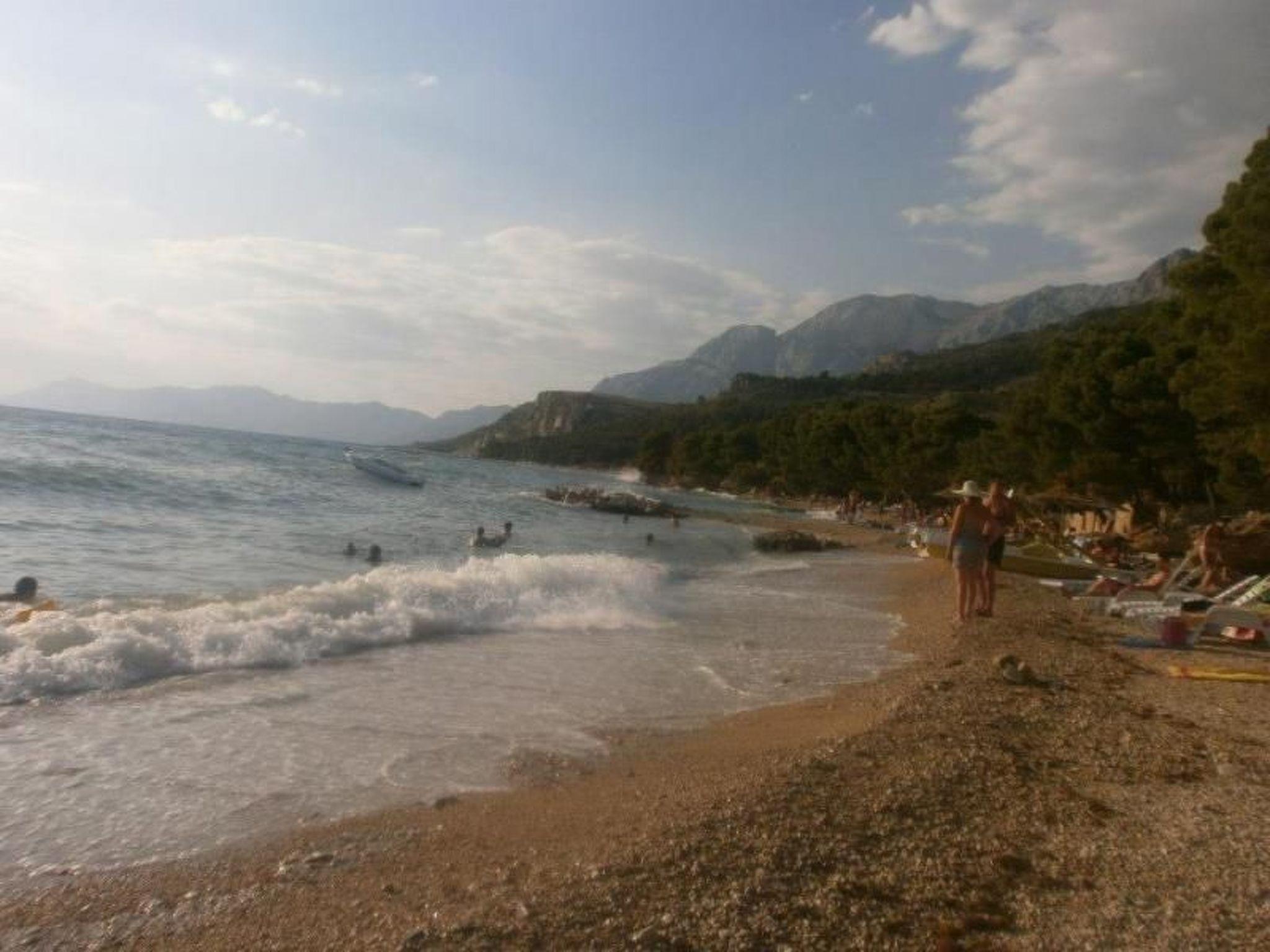 New, modern, beautiful holiday flat, above Makarska, in the district Veliko brdo, 2.5 km from the centre of Makarska, in a quiet, sunny position on a slope, 2 km from the beach, in the countryside, south facing position. In a quiet position, beautiful view of the town, the island and the sea. For shared use: property 1300 m2 (fenced), large Mediterranean garden with barbecue, outdoor shower. Garden furniture. Car park at the house on the premises. Shop 1.0 km, restaurant 200 m, pebbly beach 2 km. The house is situated on the edge of an olive grove. A warm welcome ! Accommodation: 2-room flat 90 m2, on the 1st floor, nicely furnished, very comfortable: living/dining room (the kitchen), exit to the terrace (12m2) from the kitchen (east), 1st room with a double bed + sofa bed and air conditioning, 2nd room with a double bed + sofa bed and air conditioning, 2 bathrooms + washing machine, veranda to the south with satellite TV. At your disposal: Internet (wireless LAN), shared garden with private table (separate), barbecue, car park. Ideal for those who want a relaxing holiday, away from the noise and mass tourism.