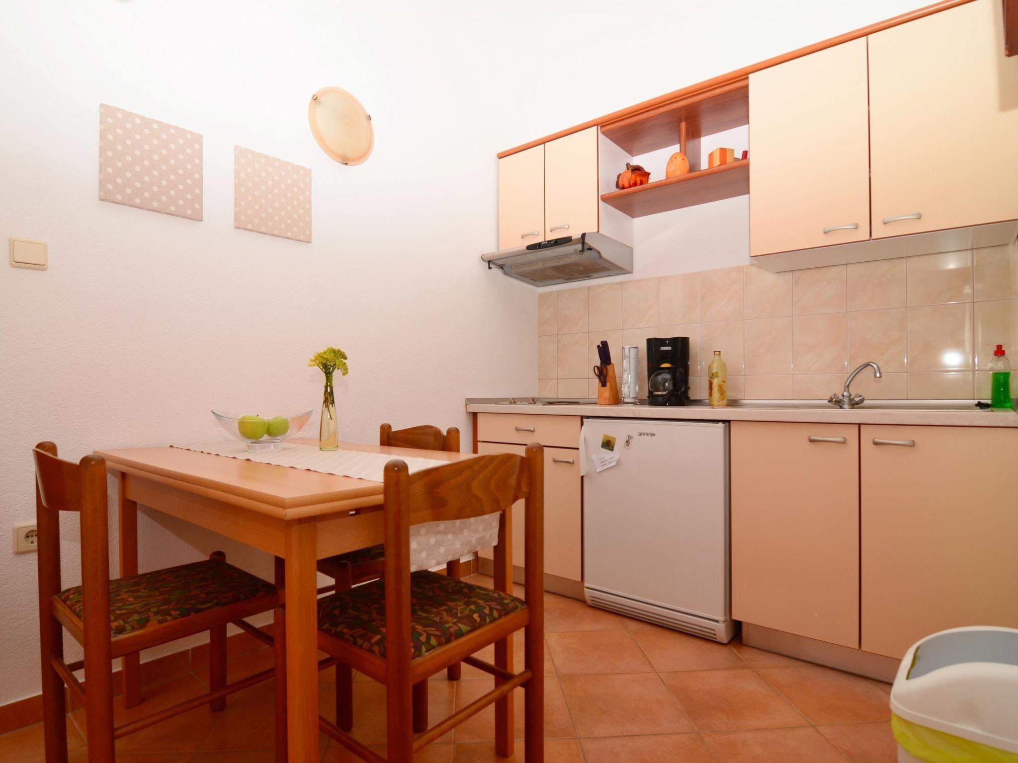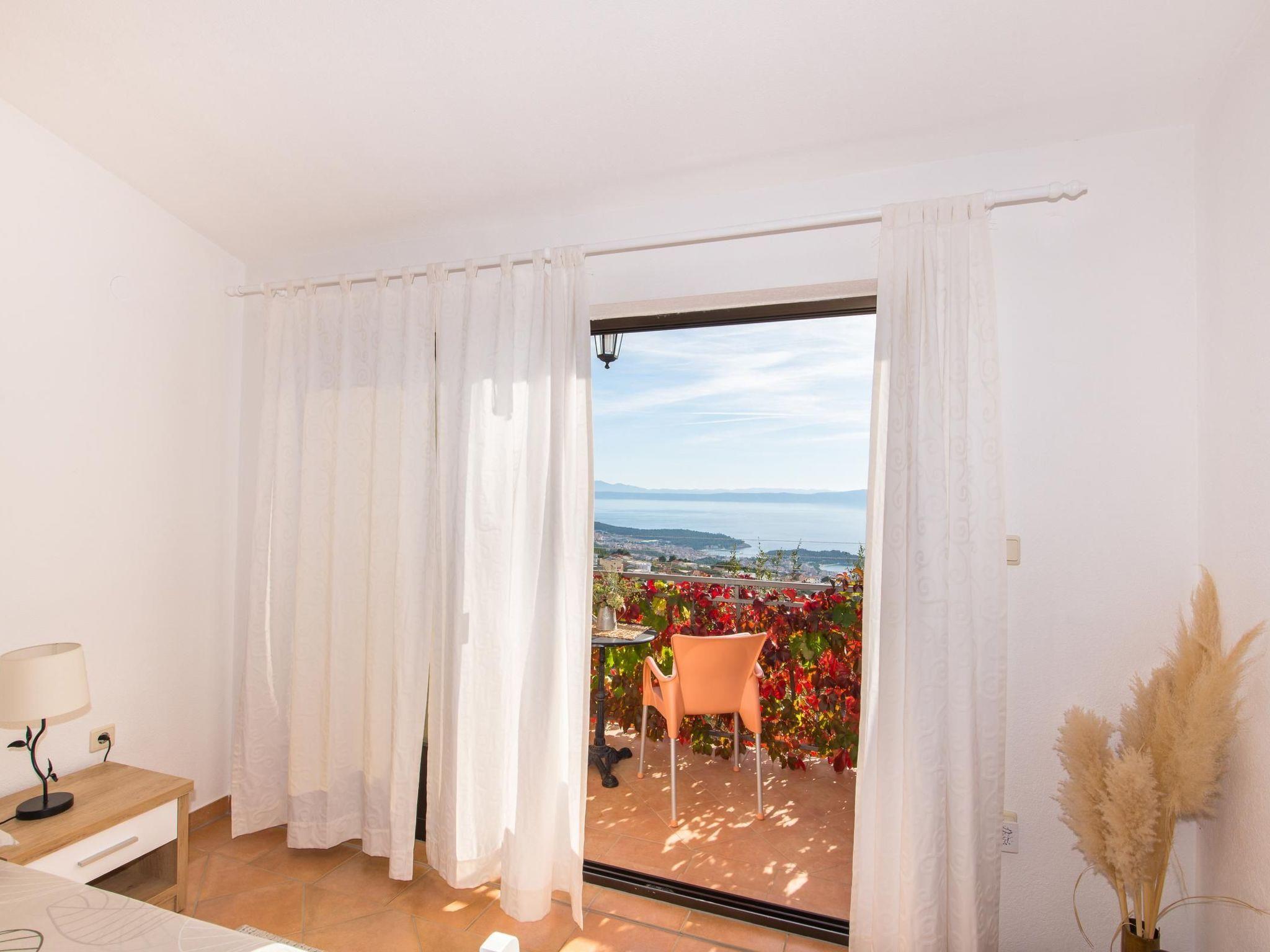 New, modern, beautiful holiday flat, above Makarska, in the district Veliko brdo, 2.5 km from the centre of Makarska, in a quiet, sunny position on a slope, 2 km from the beach, in the countryside, south facing position. In a quiet position, beautiful view of the town, the island and the sea. For shared use: property 1300 m2 (fenced), large Mediterranean garden with barbecue, outdoor shower. Garden furniture. Car park at the house on the premises. Shop 1.0 km, restaurant 200 m, pebbly beach 2 km. The house is situated on the edge of an olive grove. A warm welcome ! Accommodation: 1-room flat 28 m2, on the 2nd floor, beautifully furnished, very comfortable: /kitchen/dining room, exit to the balcony, 1 bedroom with double bed, 1 bathroom. At your disposal: Internet (wireless LAN) in the house, shared use of the garden with its own table (separate). Ideal for those who want a relaxing holiday, away from the noise and mass tourism.