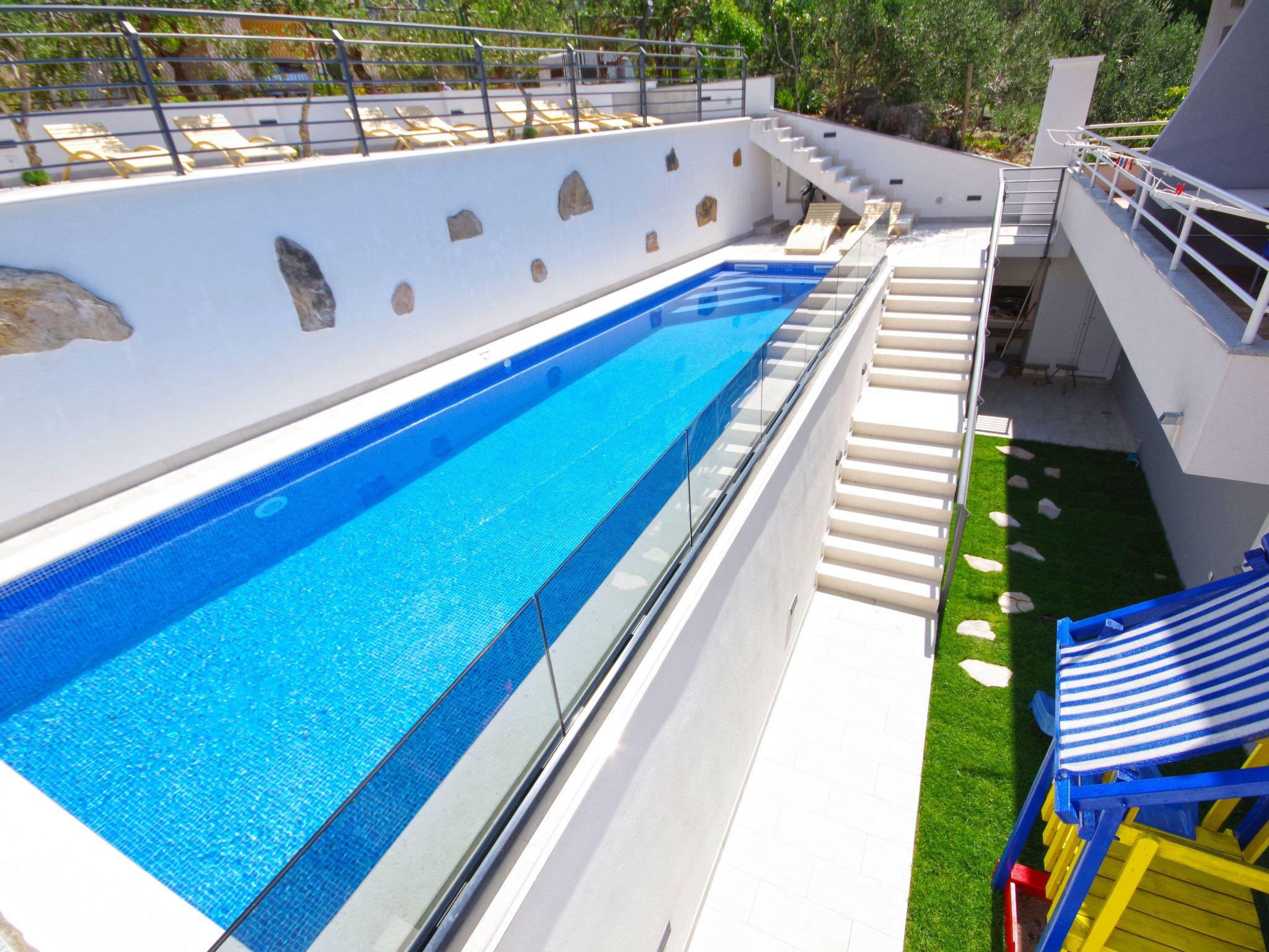 The 38m² apartment is on the second floor. It has a bedroom with a double bed and a bathroom with a shower and toilet. The living room-kitchen also has a sofa bed for two people. The kitchen provides a hob, oven and fridge. House have pool and playground for children's.