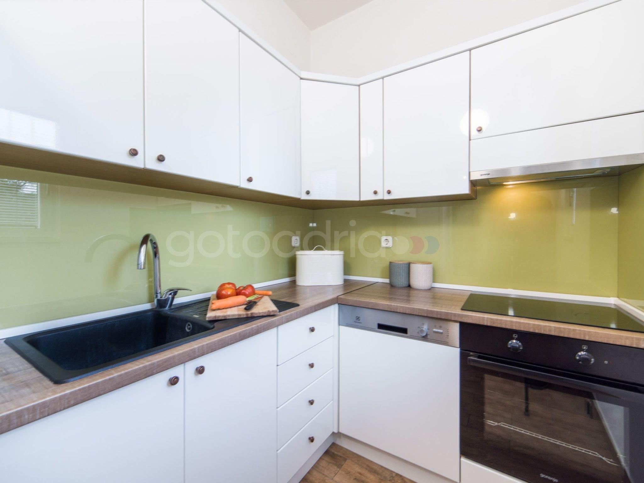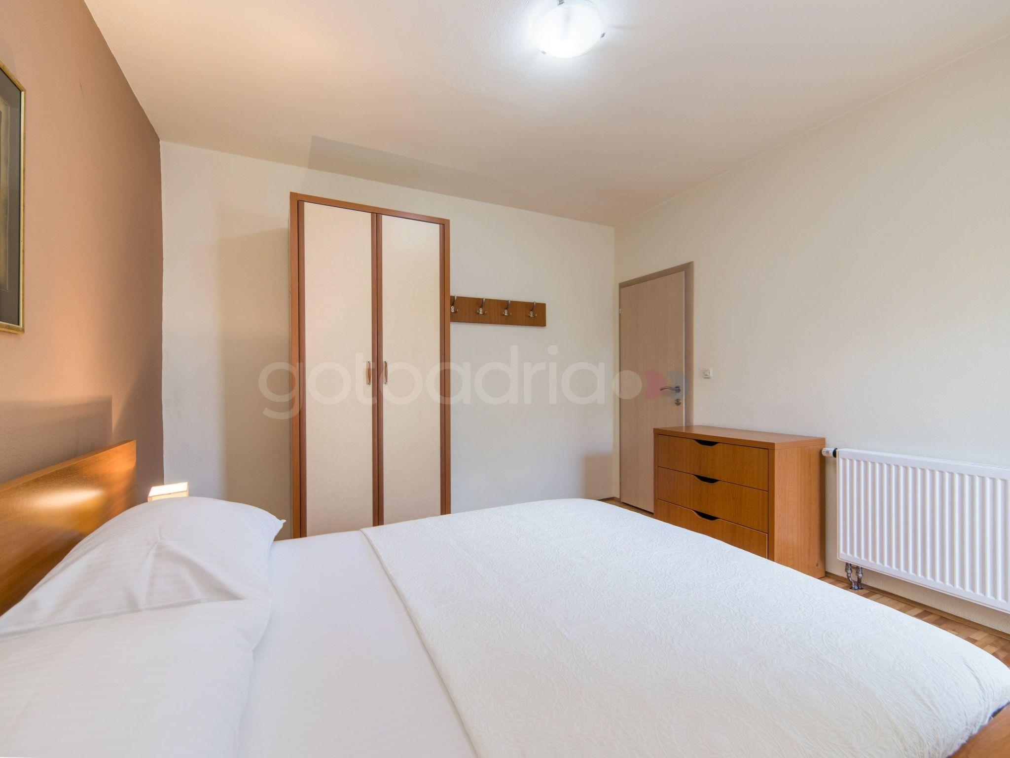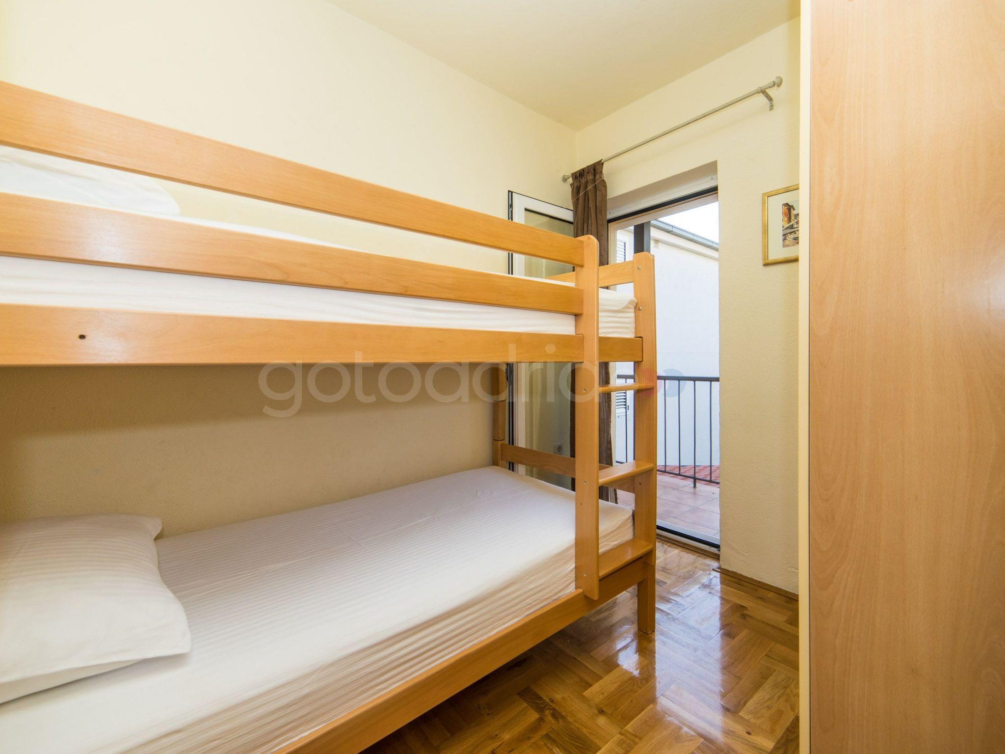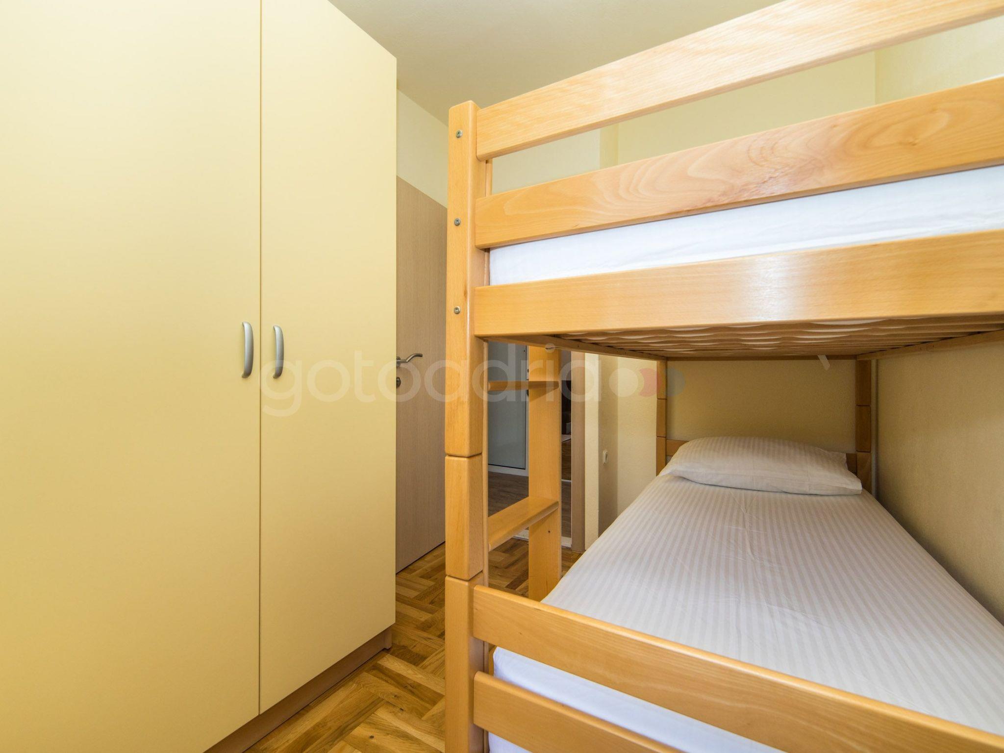 Inside, Apartment Dolore unfolds into a spacious abode tailored for comfort and convenience. The space accommodates up to 7 guests across three bedrooms featuring double beds and one bedroom with a bunk bed, making it ideal for larger families or groups of friends. Two well-appointed private bathrooms ensure ample facilities for all guests, while the partial air conditioning keeps the environment comfortable during those warm Dalmatian days. A kitchen equipped with a coffee machine and electric kettle, alongside a cozy dining area, offers the perfect setting for preparing and enjoying home-cooked meals.