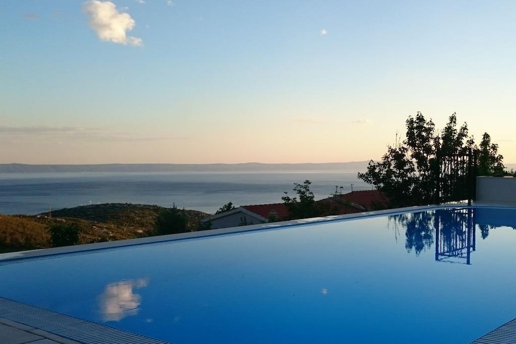 Unser Ferienhaus liegt im Zentrum von Dalmatien, über der Perle der Adria. Das Ferienhaus verfügt über einen großen beheizbaren Pool und einen Garten mit einem offenem Kamin. Im ersten Stock sind zwei Schlafzimmer mit Doppelbett und eigenem Badezimmer. Das Wohnzimmer mit Küche und Esszimmer befinden sich im zweitem Stock, wo sich ebenfalls ein Badezimmer befindet. Das Wohnzimmer bietet darüber hinaus ein Zustellbett für eine fünfte Person. Alle Zimmer haben Balkone mit einem wundervollen Blick auf das Meer. Eine Klimaanlage, Sat-Led TV und Wi-Fi Internet gibt es in allem Zimmern. Unsere Küche ist mit 4 Kochplatten, 1 Backofen, 1 Geschirrspüler, 1 Mikrowelle, 1 Tiefkühler und 1 elektrischen Kaffeemaschine ausgestattet.