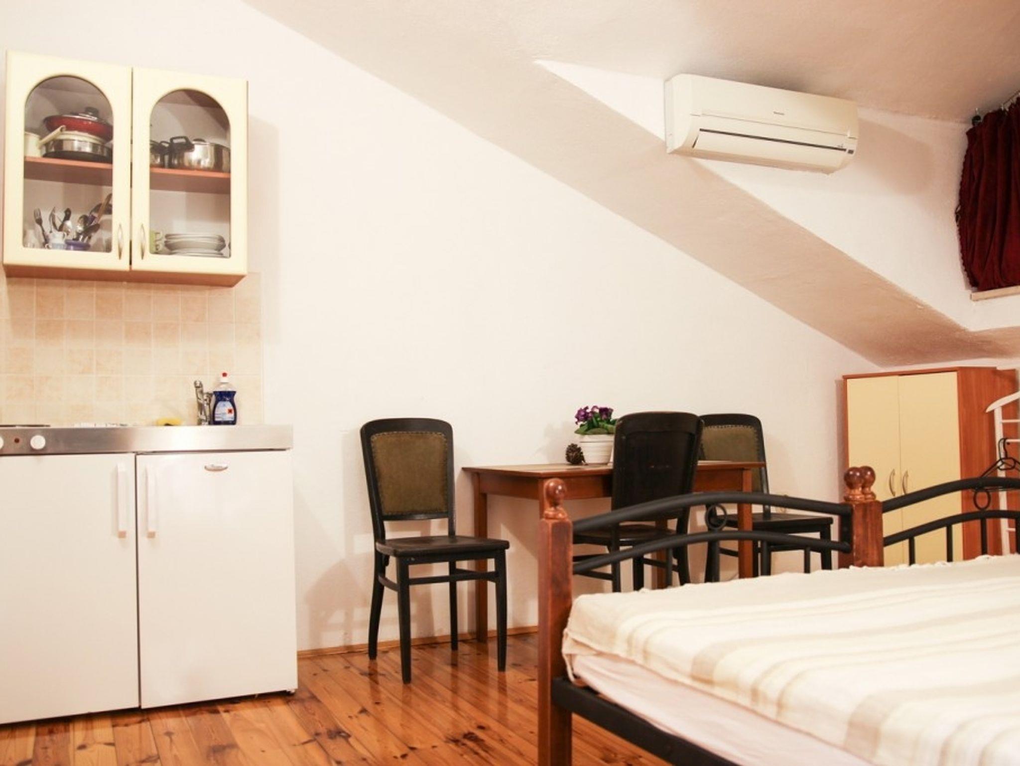 Objekt 15200 im Ort Makarska, Makarska - Mitteldalmatien hat Unterkunftseinheiten vom Typ Ferienwohnung (4), Studio (4) und ist 100 m von Meer entfernt. Der nächste Strand zu dieser Unterkunft ist ein Kiesstrand. Das Objekt hat mehrere Unterkunftseinheiten, so ist es möglich, dass sich während Ihres Urlaubes auch andere Gäste dort befinden werden. Die Hausbesitzer werden während Ihres Urlaubes im Objekt wohnen. Der Eigentümer ist nicht verpflichtet, zusätzliche unangemeldete Personen und Haustiere zu akzeptieren. Sie sollten im Voraus bekannt gegeben werden. INHALT