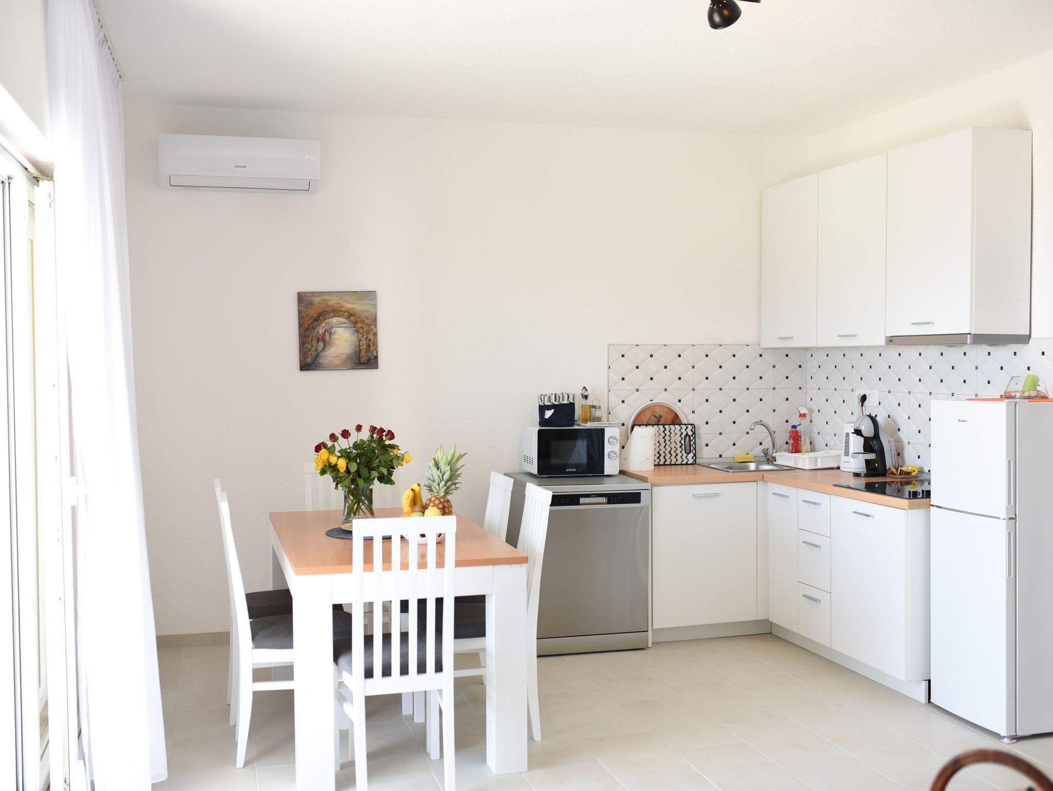 Ferienwohnung bietet Platz für 8 Gäste. Die Betten sind in Schlafzimmern, die es 3 gibt, und in Wohnzimmer, innerhalb einer Gesamtfläche von 75m2, angeordnet. Die Gäste haben eine eigene Terrasse zur Verfügung, auf der sie in warmen Sommernächten genießen können. Das Apartment bietet Meerblick. Für vollen Genuss und Entspannung gibt es einen privaten Grill für Gäste dieser Unterkunft. In der Unterkunftseinheit besteht die Möglichkeit des Mitbringens von Haustieren, und die Dienstleistung ist im Preis der Unterkunft enthalten. IM PREIS INBEGRIFFEN: Kurtaxe, Endreinigung, Klimatisierung, Parkplatz, Internet, Wäschewaschen, Haustiere, Kinderbett, Bügeleisen, Bügelbrett, Föhn. Die Verfügbarkeit zusätzlicher Dienstleistungen in Ihrem reservierten Termin und die Preise derselben (falls nicht aufgeführt) müssen im Voraus überprüft werden. Zusätzliche Dienstleistungen die in der Zahlungsaufforderung nicht aufgeführt sind werden direkt beim Vermieter bezahlt, angenommen der Gast nutzt auch diese. Ermäßigung auf den Grundpreis: Gratistag 28=25 (bei einem Aufenthalt von 28 oder mehr Tagen erhalten Sie 3 kostenlose Tage für den Aufenthalt bis 31.12.26).
