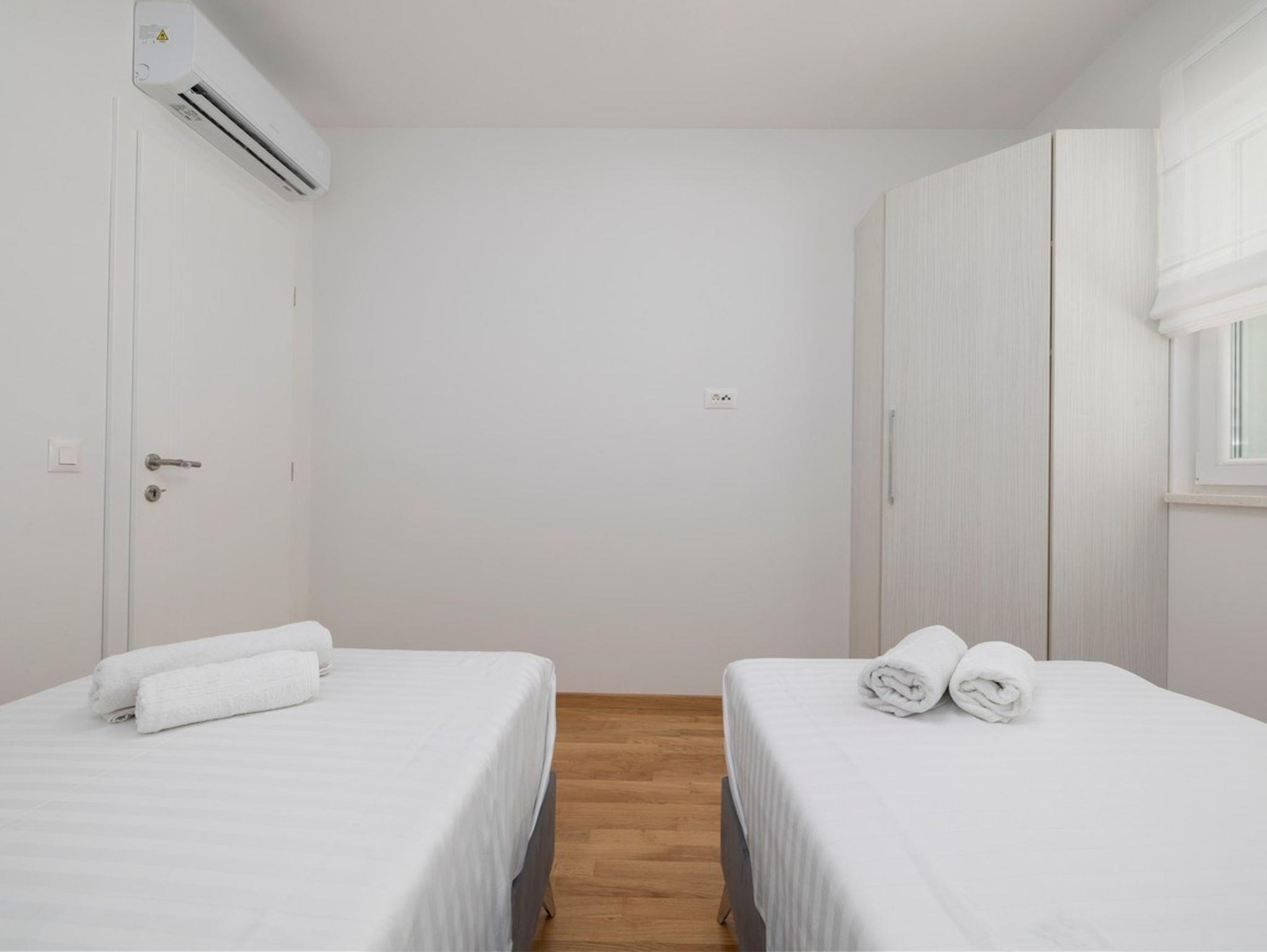 Ferienwohnung bietet Platz für 4 Gäste. Die Betten sind in Schlafzimmern, die es 2 gibt, innerhalb einer Gesamtfläche von 75m2, angeordnet. Die Gäste haben einen eigenen Balkon zur Verfügung, auf der sie in warmen Sommernächten genießen können. Das Apartment bietet Meerblick. IM PREIS INBEGRIFFEN: Kurtaxe, Endreinigung, Parkplatz, Garage, Internet, Bügeleisen, Bügelbrett, Föhn. UNVERBINDLICHE ZUSÄTZLICHE KOSTEN: Klimatisierung (5,00 € pro Nacht). Die Verfügbarkeit zusätzlicher Dienstleistungen in Ihrem reservierten Termin und die Preise derselben (falls nicht aufgeführt) müssen im Voraus überprüft werden. Zusätzliche Dienstleistungen die in der Zahlungsaufforderung nicht aufgeführt sind werden direkt beim Vermieter bezahlt, angenommen der Gast nutzt auch diese.