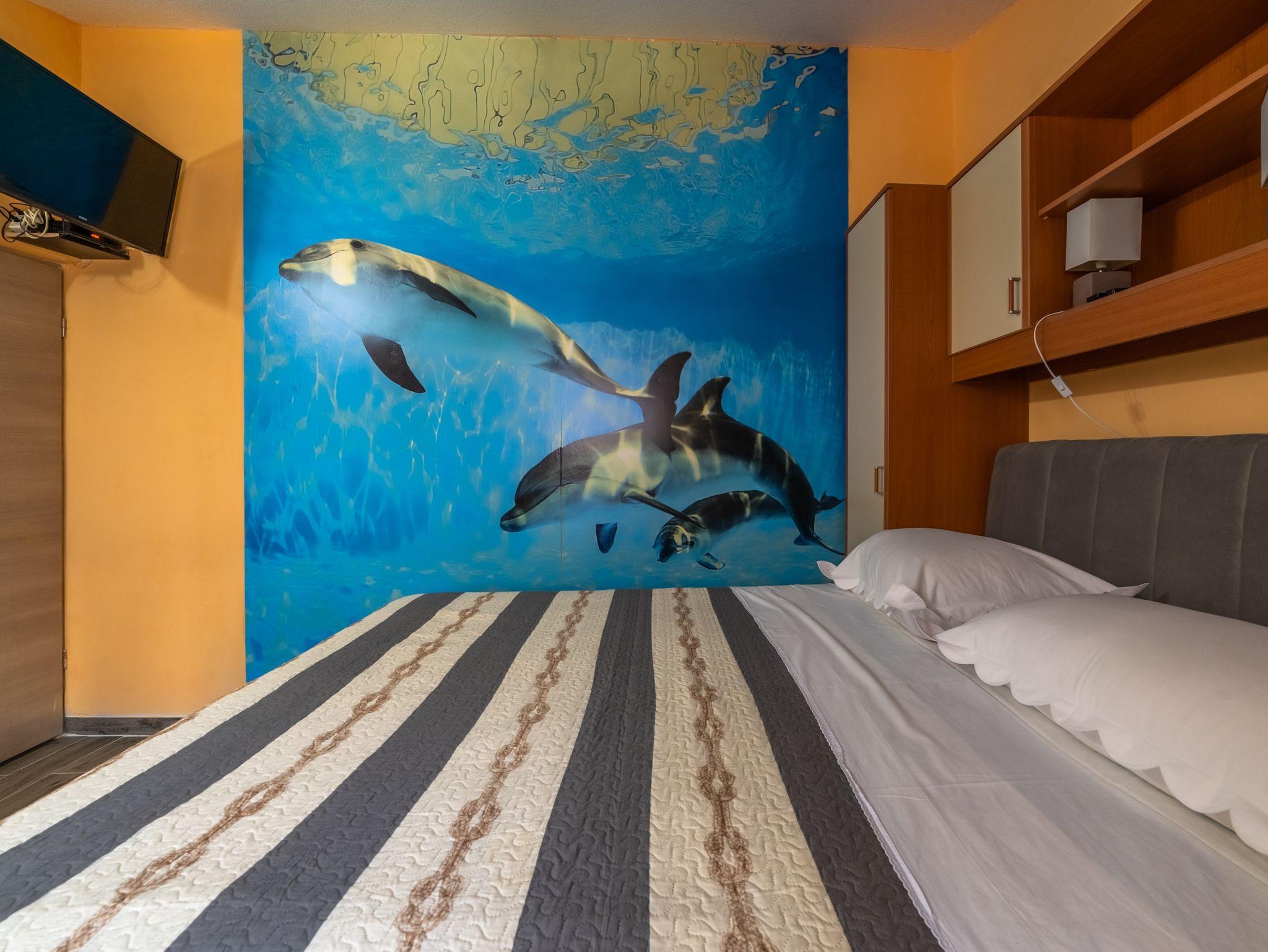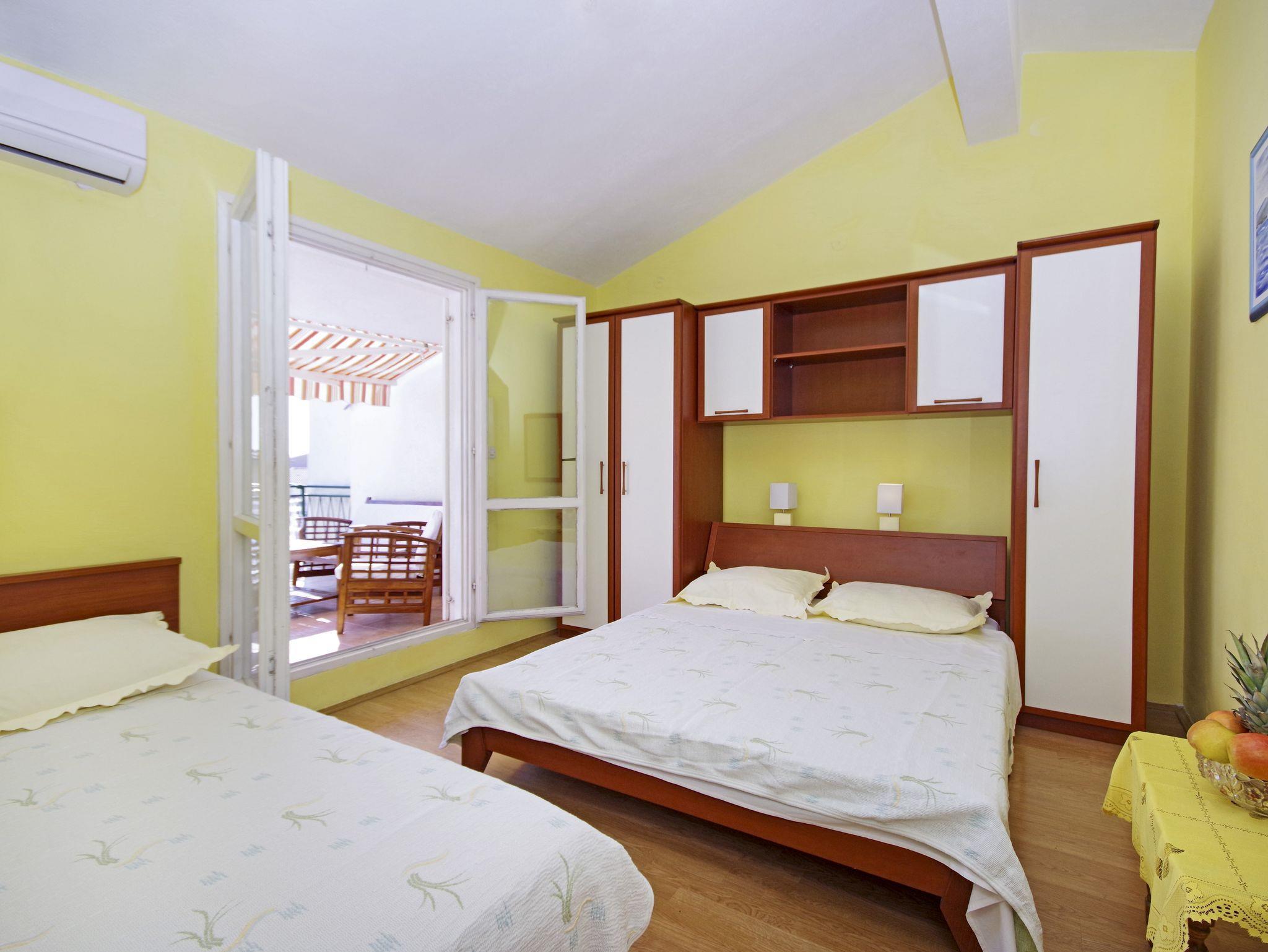 Ferienwohnung bietet Platz für 6 Gäste. Die Betten sind in Schlafzimmern, die es 3 gibt, innerhalb einer Gesamtfläche von 70m2, angeordnet. Die Gäste haben eine eigene Terrasse zur Verfügung, auf der sie in warmen Sommernächten genießen können. Das Apartment bietet Meerblick. Es ist erlaubt, Speisen auf dem Gemeinschafts-Grill vorzubereiten. In der Unterkunftseinheit besteht die Möglichkeit des Mitbringens von Haustieren, und die Dienstleistung ist im Preis der Unterkunft enthalten. IM PREIS INBEGRIFFEN: Kurtaxe, Endreinigung, Klimatisierung, Parkplatz, Internet, Haustiere, Bügeleisen, Bügelbrett, Föhn, tragbarer Grill. Die Verfügbarkeit zusätzlicher Dienstleistungen in Ihrem reservierten Termin und die Preise derselben (falls nicht aufgeführt) müssen im Voraus überprüft werden. Zusätzliche Dienstleistungen die in der Zahlungsaufforderung nicht aufgeführt sind werden direkt beim Vermieter bezahlt, angenommen der Gast nutzt auch diese. Ermäßigung auf den Grundpreis: Gratistag 14=13 (bei einem Aufenthalt von 14 Tagen oder mehr erhalten Sie einen Gratistag für den Aufenthalt bis 31.12.26).
