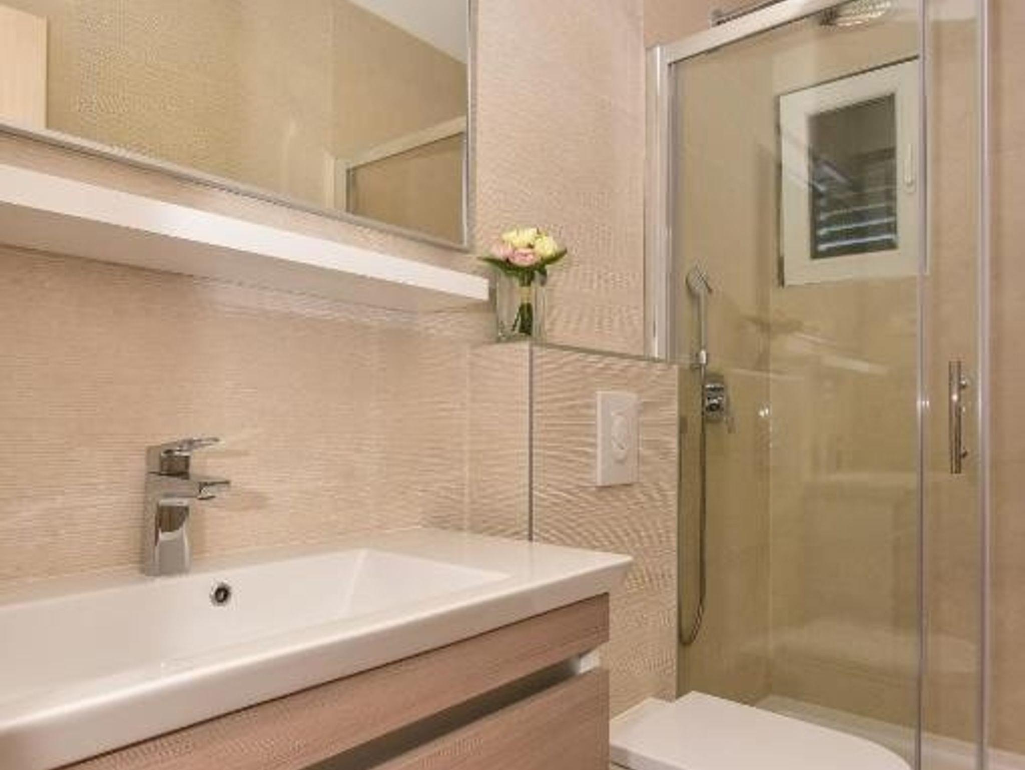 Ferienwohnung bietet Platz für 5 Gäste. Die Betten sind in Schlafzimmern, die es 1 gibt, und in Wohnzimmer, innerhalb einer Gesamtfläche von 42m2, angeordnet. Die Gäste haben eine eigene Terrasse zur Verfügung, auf der sie in warmen Sommernächten genießen können. Das Apartment bietet Meerblick. In der Unterkunftseinheit besteht die Möglichkeit des Mitbringens von Haustieren, und die Dienstleistung ist im Preis der Unterkunft enthalten. IM PREIS INBEGRIFFEN: Kurtaxe, Endreinigung, Klimatisierung, Parkplatz, Internet, Wäschewaschen, Haustiere, Kinderbett, Bügeleisen, Bügelbrett, Föhn. VERBINDLICHE ZUSÄTZLICHE KOSTEN: Aufzahlung für Kurzaufenthalte (prozentualer Zuschlag pro Nächtigungsanzahl: 30% - 1, 20% - 2, 10% - 3). Die Verfügbarkeit zusätzlicher Dienstleistungen in Ihrem reservierten Termin und die Preise derselben (falls nicht aufgeführt) müssen im Voraus überprüft werden. Zusätzliche Dienstleistungen die in der Zahlungsaufforderung nicht aufgeführt sind werden direkt beim Vermieter bezahlt, angenommen der Gast nutzt auch diese.