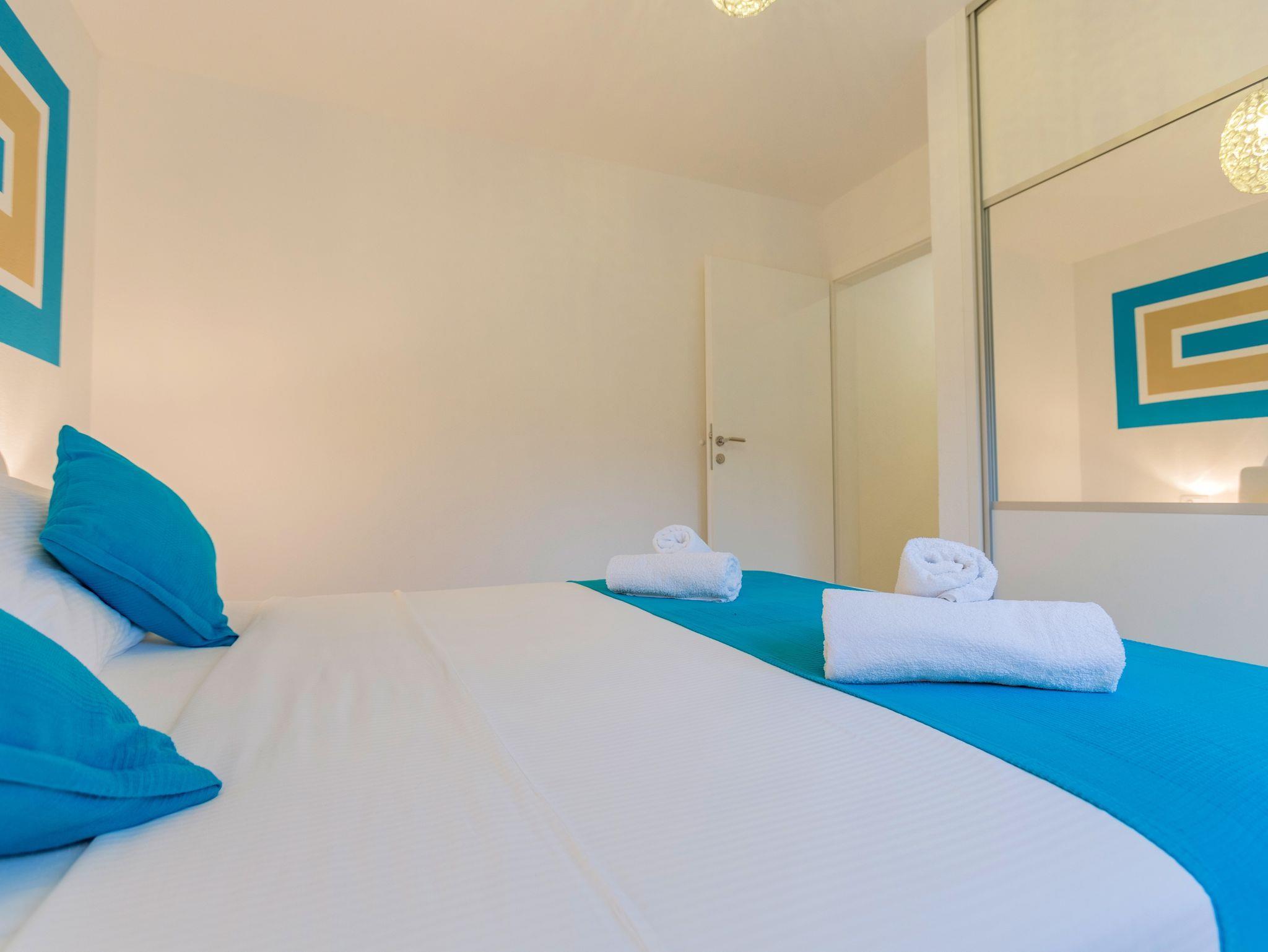 Ferienwohnung bietet Platz für 2 Gäste. Die Betten sind in Schlafzimmern, die es 1 gibt, innerhalb einer Gesamtfläche von 45m2, angeordnet. Die Gäste haben eine eigene Terrasse zur Verfügung, auf der sie in warmen Sommernächten genießen können. Das Apartment bietet Meerblick. Es ist erlaubt, Speisen auf dem Gemeinschafts-Grill vorzubereiten. Während ihres Aufenthalts können Gäste das gemeinsam zur Nutzung stehende Schwimmbad benutzen. IM PREIS INBEGRIFFEN: Kurtaxe, Endreinigung, Klimatisierung, Pool, Parkplatz, Internet, Kinderbett, Bügeleisen, Bügelbrett, Föhn, 2 Kinderbettchen (im Preis enthalten). Die Verfügbarkeit zusätzlicher Dienstleistungen in Ihrem reservierten Termin und die Preise derselben (falls nicht aufgeführt) müssen im Voraus überprüft werden. Zusätzliche Dienstleistungen die in der Zahlungsaufforderung nicht aufgeführt sind werden direkt beim Vermieter bezahlt, angenommen der Gast nutzt auch diese.