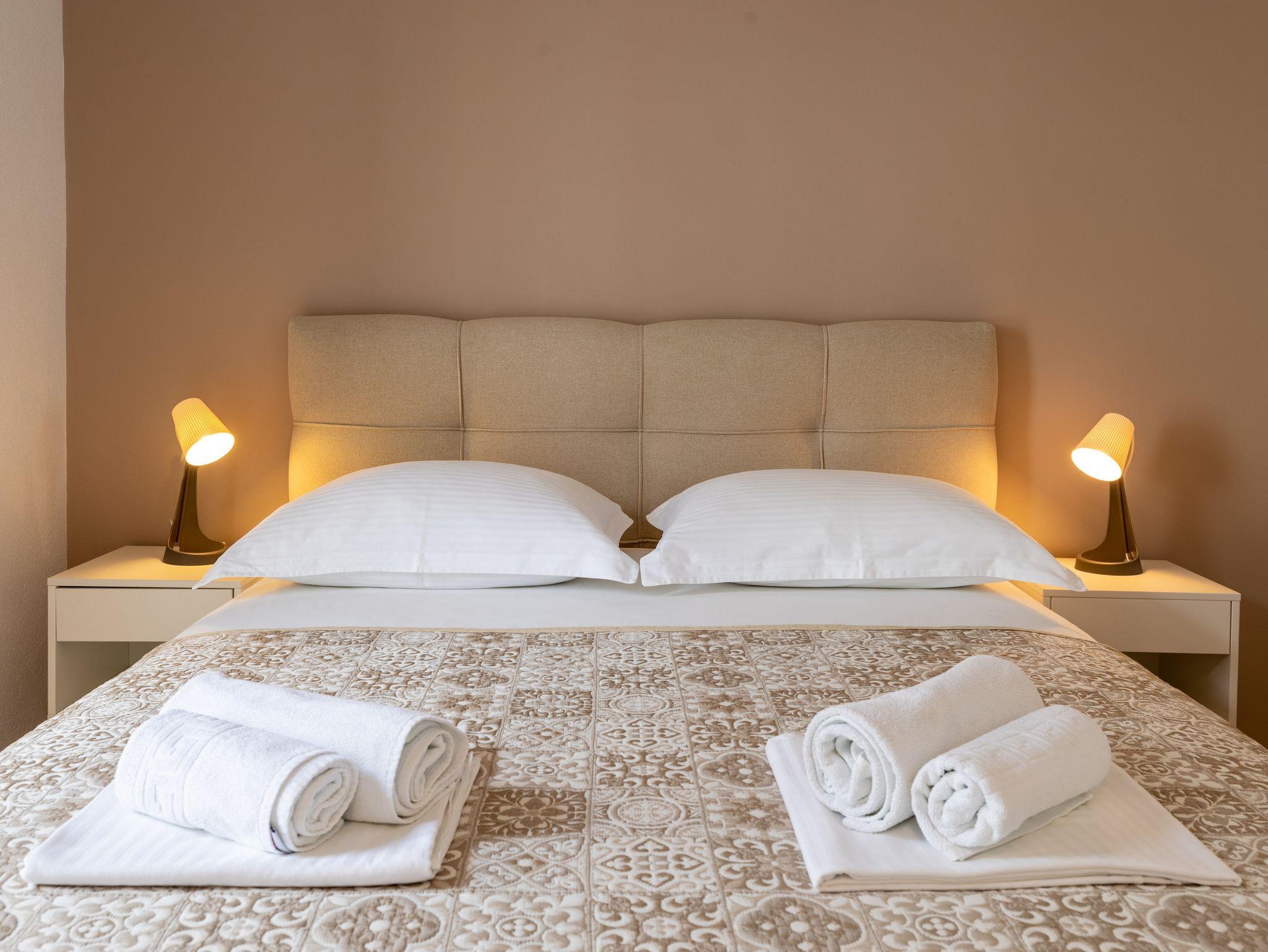 Studio bietet Platz für 2 Gäste. Die Betten sind in Schlafzimmern, die es 1 gibt, innerhalb einer Gesamtfläche von 17m2, angeordnet. Die Gäste haben einen eigenen Balkon zur Verfügung, auf der sie in warmen Sommernächten genießen können. IM PREIS INBEGRIFFEN: Kurtaxe, Endreinigung, Klimatisierung, Parkplatz, Internet, Kinderbett, Bügeleisen, Bügelbrett. VERBINDLICHE ZUSÄTZLICHE KOSTEN: Aufzahlung für Kurzaufenthalte (prozentualer Zuschlag pro Nächtigungsanzahl: 30% - 1, 20% - 2, 10% - 3). Die Verfügbarkeit zusätzlicher Dienstleistungen in Ihrem reservierten Termin und die Preise derselben (falls nicht aufgeführt) müssen im Voraus überprüft werden. Zusätzliche Dienstleistungen die in der Zahlungsaufforderung nicht aufgeführt sind werden direkt beim Vermieter bezahlt, angenommen der Gast nutzt auch diese.