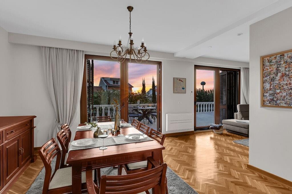 This completely renovated holiday home above the village of Promajna is one of the most beautiful and modern villas in the area. On the roof, there's a spacious terrace with a hot tub, where you can enjoy the beautiful view of the town, the sea, and the islands with a glass of wine, while watching the fantastic sunset. You can create new wonderful memories with your family on the outdoor terrace in the garden or at the barbecue area.