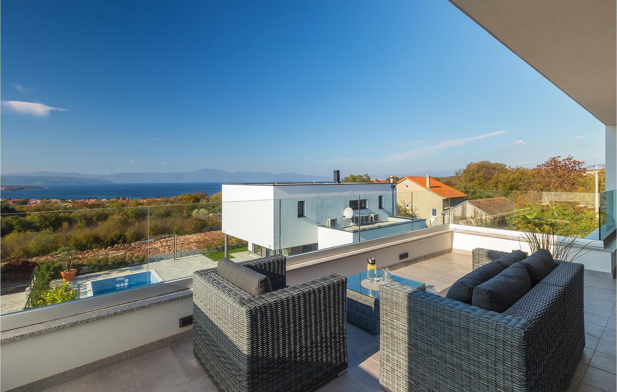 Schon der Name der Villa deutet darauf hin, dass es sich um eine Ferienvilla handelt, in der Sie sich verwöhnen lassen und richtig wohl fühlen können. Die Villa ist bis auf das kleinste Detail stil- und geschmackvoll eingerichtet und bietet Platz für 8 Personen. Im Erdgeschoss finden Sie einen luxuriösen, modernen Wohnbereich mit voll ausgestatteter Küche und Essbereich vor, von wo aus Sie einen wunderschönen Ausblick auf Malinska und das Meer genießen können. Ein Schlafzimmer mit Doppelbett und En-Suite Badezimmer wie auch ein separates Gäste-WC befinden sich ebenfalls im Erdgeschoss. Die anderen drei Schlafzimmer und 2 Badezimmer befinden sich im ersten Stock. Alle Schlafzimmer im Obergeschoss bieten die Möglichkeit, jeden Morgen mit Blick aufs Meer aufzuwachen. Hier werden Sie auch eine Terrasse möbliert mit Loungemöbeln vorfinden, die sich ideal für den ersten Kaffee am Morgen oder ein Glas Malvazija am Abend eignet.