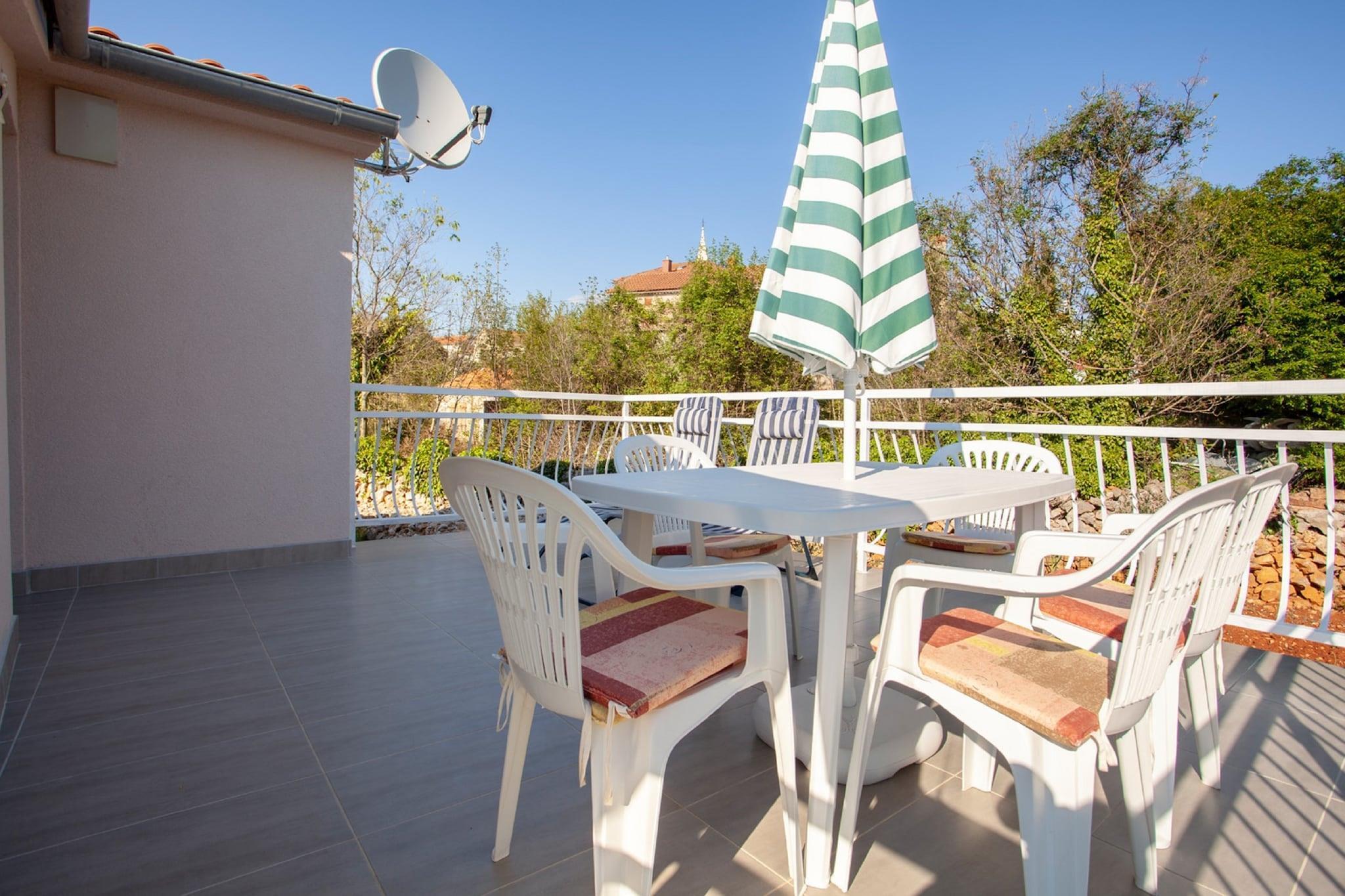 In the picturesque location of Sveti Vid-Miholjice, you will find this spacious 1-bedroom apartment for hosting a couple on vacation. The property also features a private terrace with garden furniture to sit back and enjoy the views. The strategic location of the apartment situates it in the proximity of all the necessary amenities. There are several restaurants and supermarkets within walking distance, and the town centre of Malinska is only 1.5 km away. If you fancy a swim on a sunny day, visit the sandy beach in the region, 1.5 km away. Fun-loving guests can also enjoy the nightlife, 1.5 km away. This apartment is tastefully decorated with comfortable amenities to aid a memorable stay. Unwind watching the satellite TV in the spacious living room, or indulge in a cooking session in the modular kitchen. An evening spent enjoying the barbecue on the terrace will surely be memorable. Parking is on-site. You can check in the property between 2-8 PM and check out between 8-10 AM.