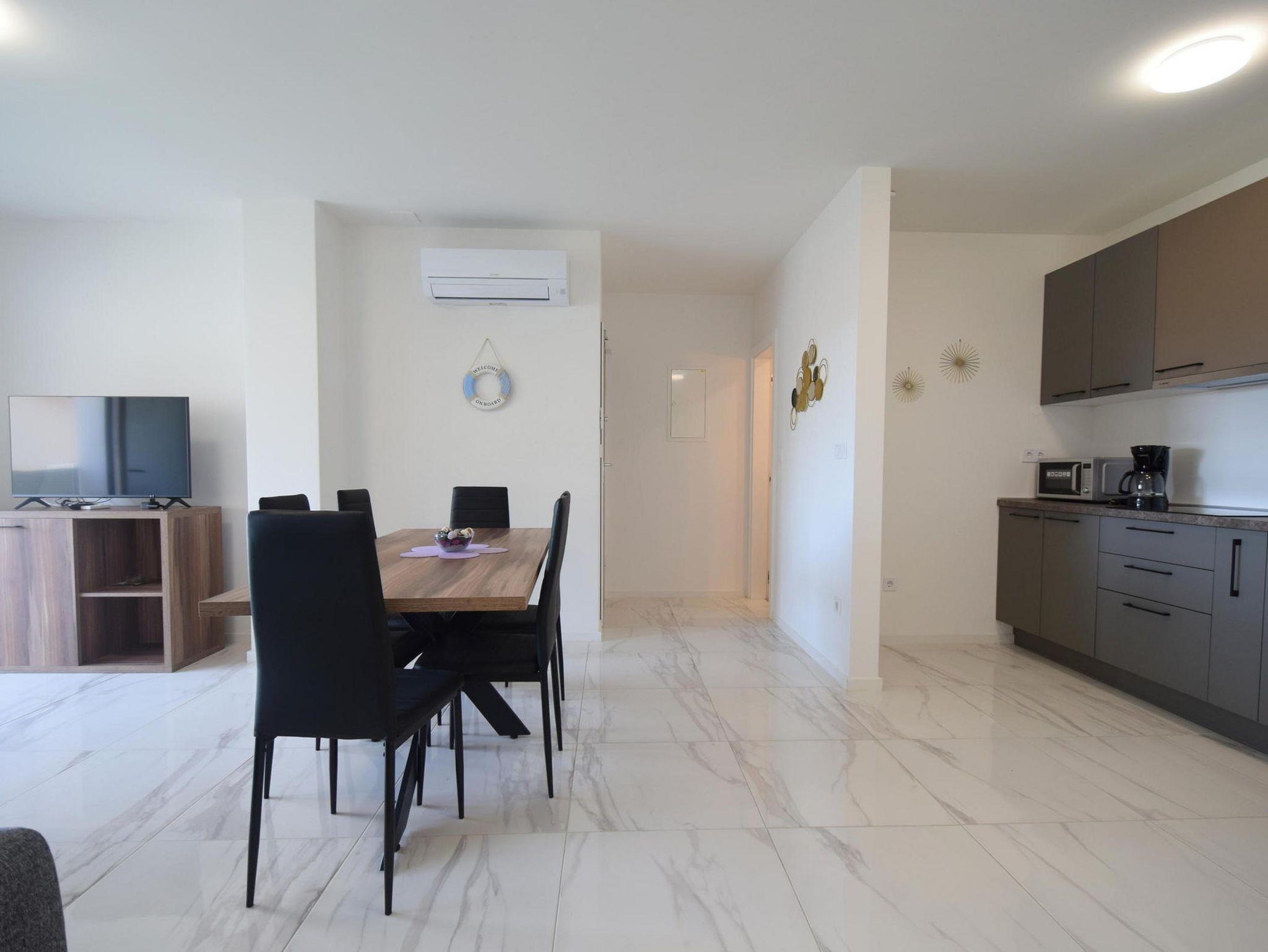Ferienwohnung bietet Platz für 6 Gäste. Die Betten sind in Schlafzimmern, die es 3 gibt, und in Wohnzimmer, innerhalb einer Gesamtfläche von 71m2, angeordnet. Die Gäste haben eine eigene Terrasse zur Verfügung, auf der sie in warmen Sommernächten genießen können. Das Apartment bietet Meerblick. IM PREIS INBEGRIFFEN: Kurtaxe, Endreinigung, Klimatisierung, Parkplatz, Internet. VERBINDLICHE ZUSÄTZLICHE KOSTEN: Aufzahlung für Kurzaufenthalte (prozentualer Zuschlag pro Nächtigungsanzahl: 30% - 1, 20% - 2, 10% - 3). Die Verfügbarkeit zusätzlicher Dienstleistungen in Ihrem reservierten Termin und die Preise derselben (falls nicht aufgeführt) müssen im Voraus überprüft werden. Zusätzliche Dienstleistungen die in der Zahlungsaufforderung nicht aufgeführt sind werden direkt beim Vermieter bezahlt, angenommen der Gast nutzt auch diese.