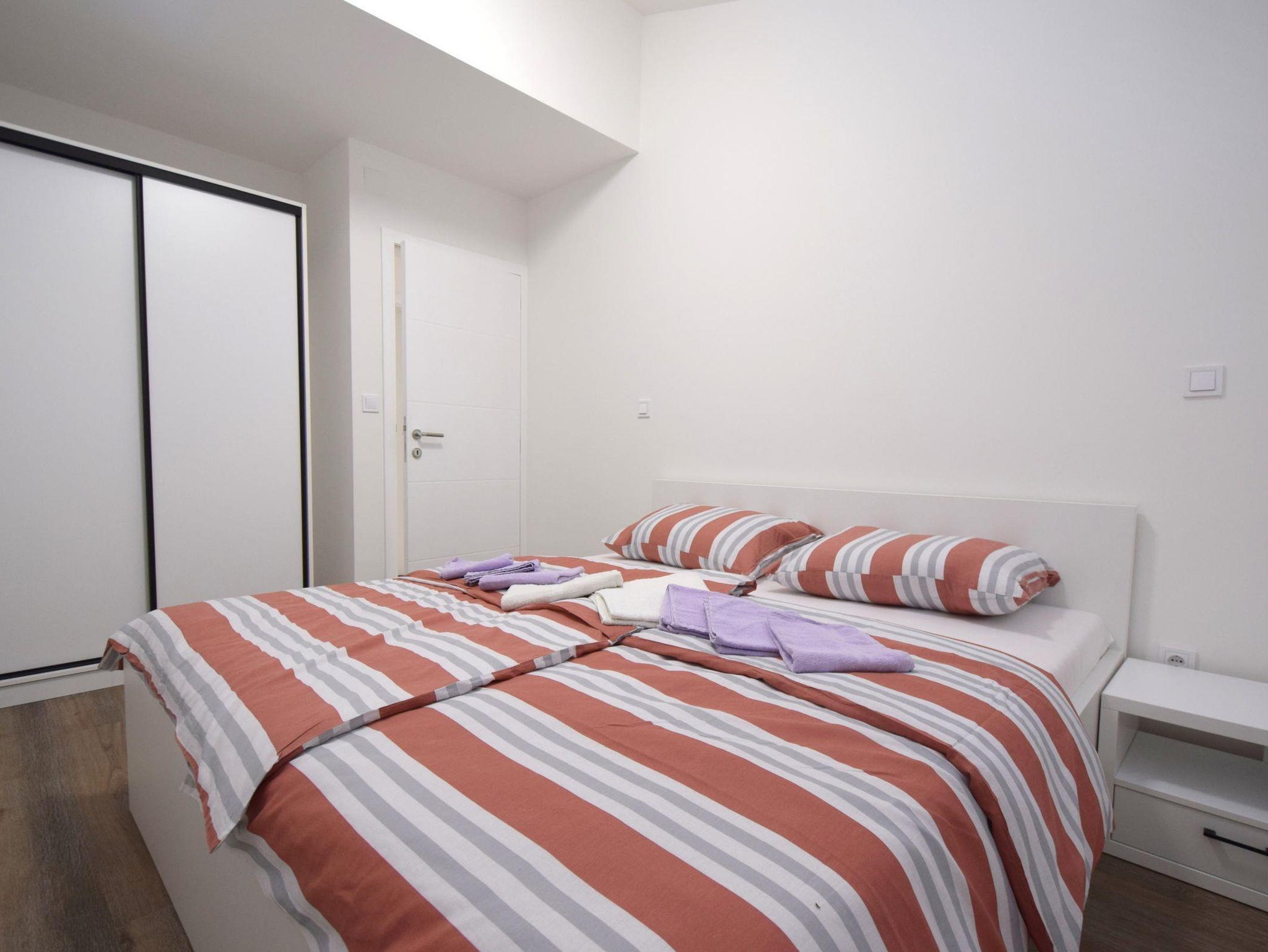 Ferienwohnung bietet Platz für 6 Gäste. Die Betten sind in Schlafzimmern, die es 3 gibt, und in Wohnzimmer, innerhalb einer Gesamtfläche von 71m2, angeordnet. Die Gäste haben eine eigene Terrasse zur Verfügung, auf der sie in warmen Sommernächten genießen können. IM PREIS INBEGRIFFEN: Kurtaxe, Endreinigung, Klimatisierung, Parkplatz, Internet. VERBINDLICHE ZUSÄTZLICHE KOSTEN: Aufzahlung für Kurzaufenthalte (prozentualer Zuschlag pro Nächtigungsanzahl: 30% - 1, 20% - 2, 10% - 3). Die Verfügbarkeit zusätzlicher Dienstleistungen in Ihrem reservierten Termin und die Preise derselben (falls nicht aufgeführt) müssen im Voraus überprüft werden. Zusätzliche Dienstleistungen die in der Zahlungsaufforderung nicht aufgeführt sind werden direkt beim Vermieter bezahlt, angenommen der Gast nutzt auch diese.
