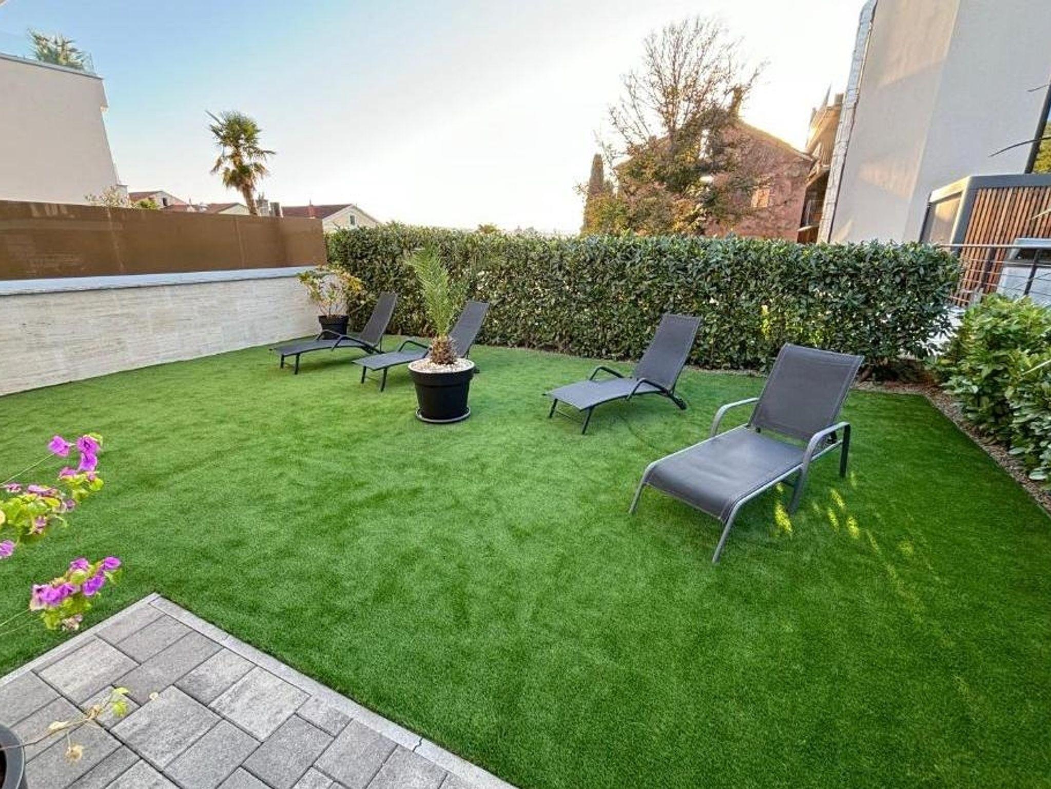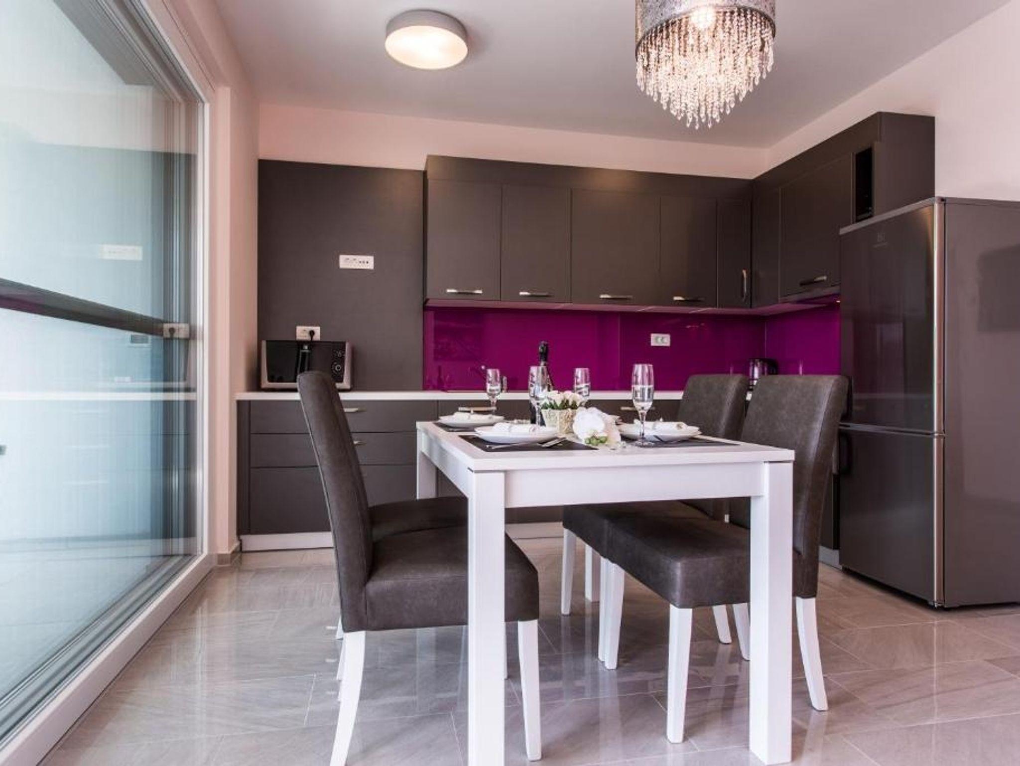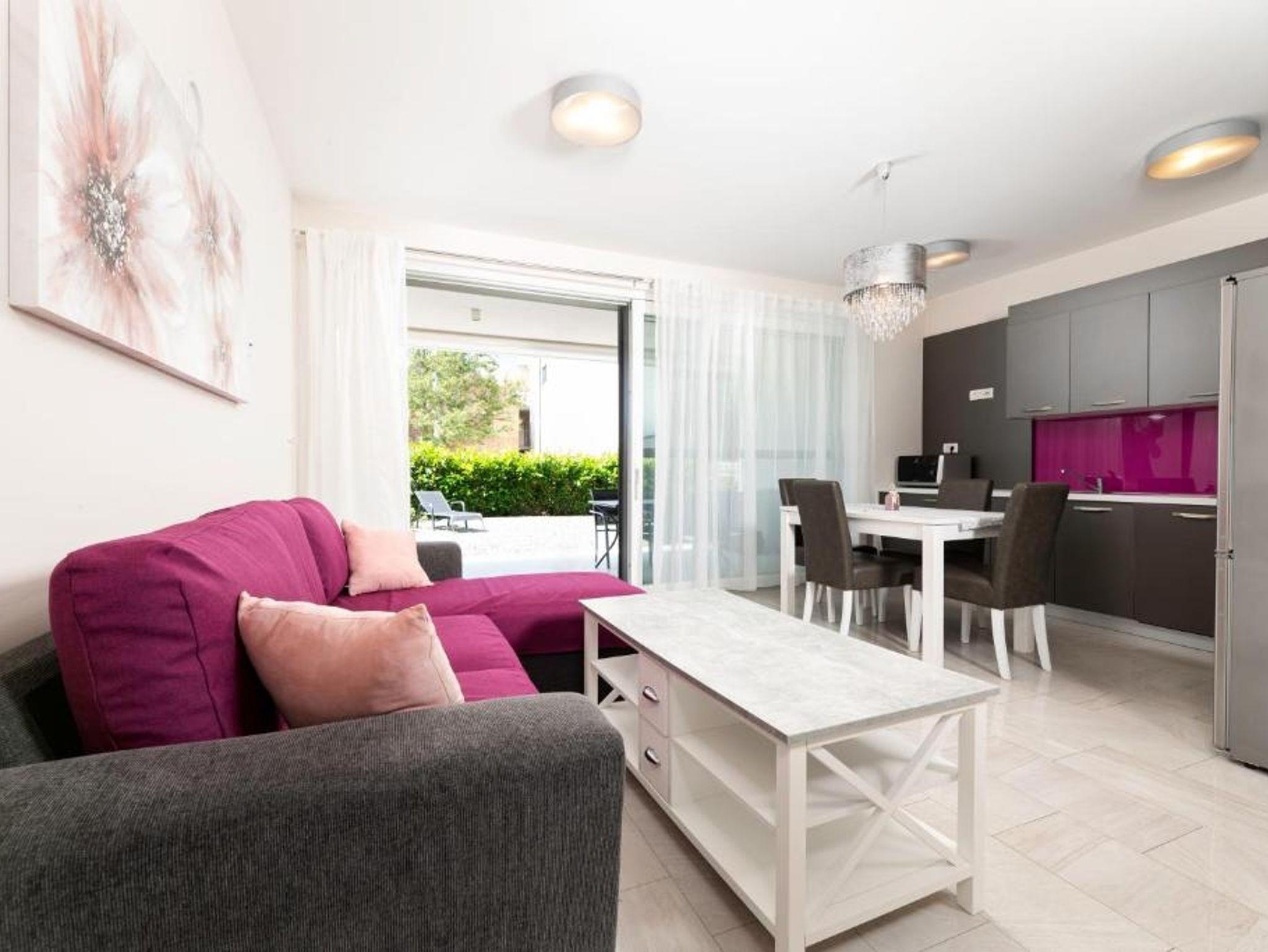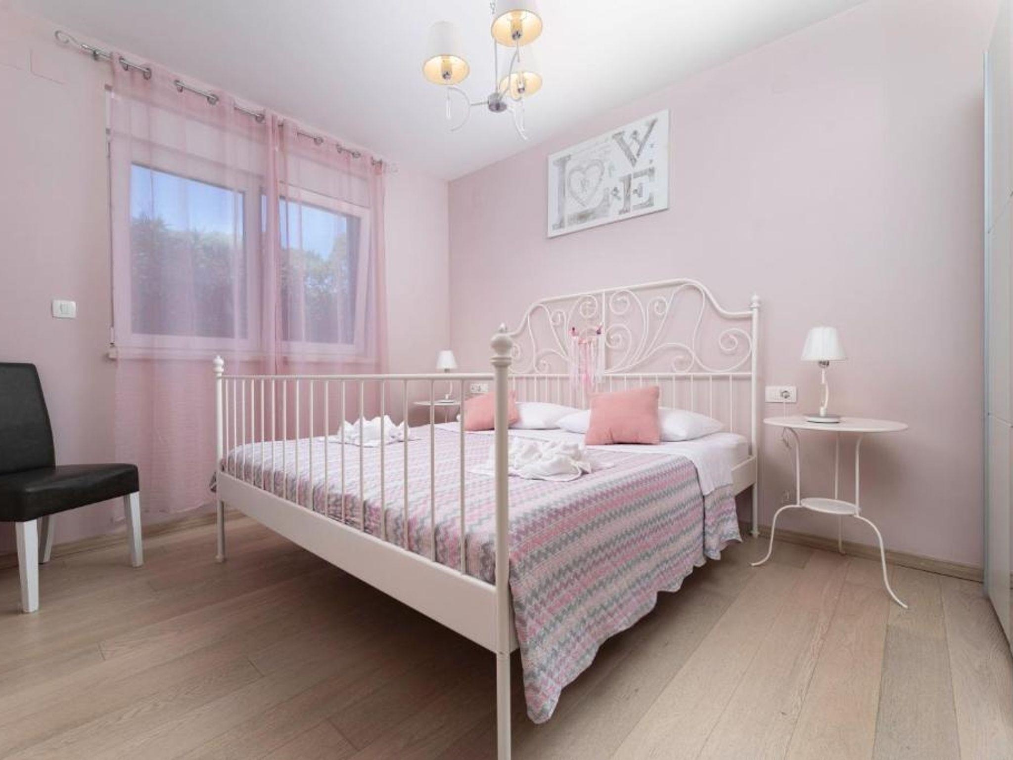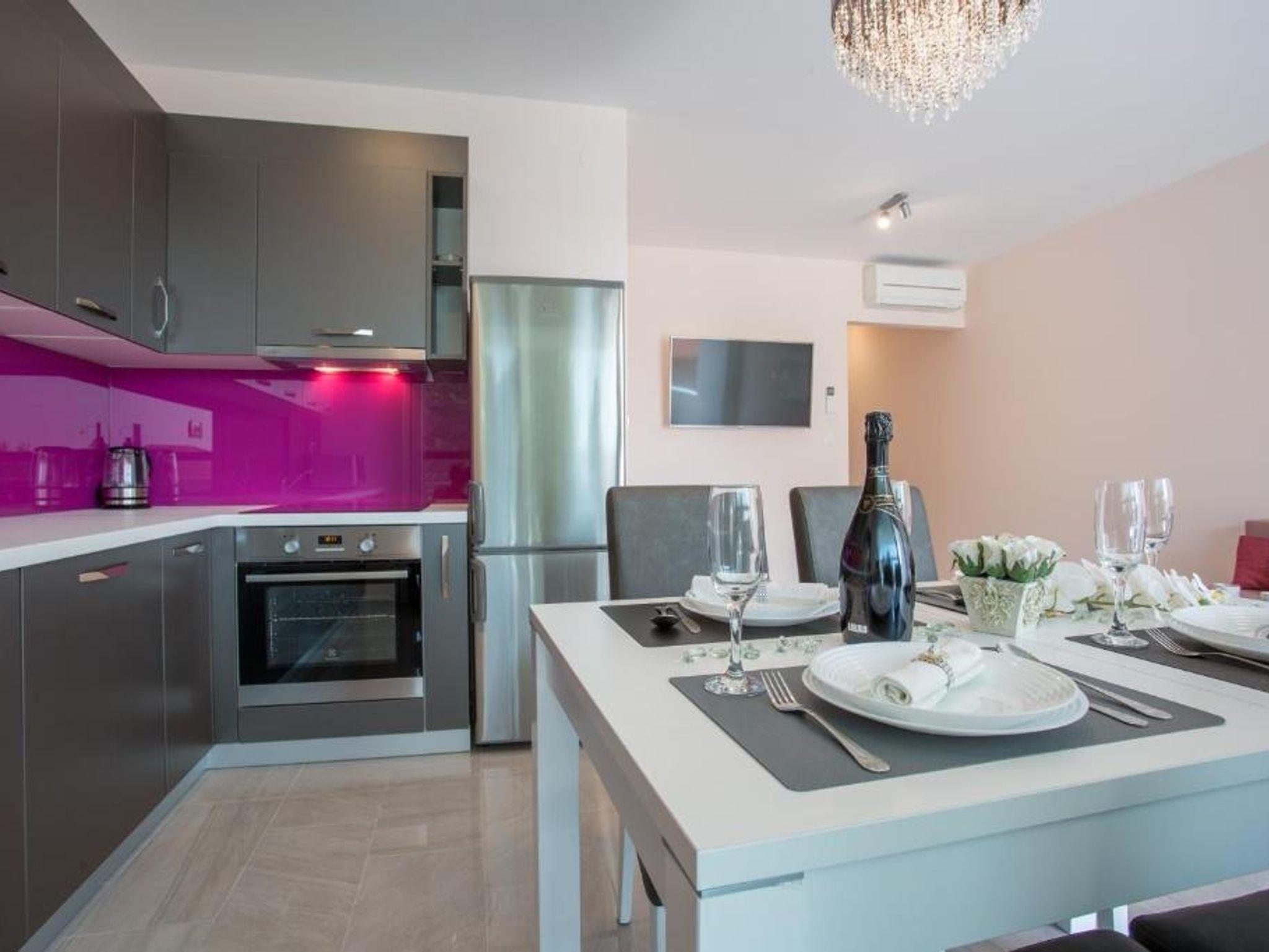 Ferienwohnung bietet Platz für 4 Gäste. Die Betten sind in Schlafzimmern, die es 2 gibt, innerhalb einer Gesamtfläche von 76m2, angeordnet. Die Gäste haben eine eigene Terrasse zur Verfügung, auf der sie in warmen Sommernächten genießen können. Das Apartment bietet Meerblick. Räume der gebuchten Unterkunftseinheit werden nicht in eine Ganze verbunden. IM PREIS INBEGRIFFEN: Kurtaxe, Endreinigung, Klimatisierung, Parkplatz, Internet, Kinderbett, Zusatzbett, Bügeleisen, Bügelbrett, Föhn. VERBINDLICHE ZUSÄTZLICHE KOSTEN: Aufzahlung für Kurzaufenthalte (prozentualer Zuschlag pro Nächtigungsanzahl: 30% - 1, 20% - 2, 10% - 3). Die Verfügbarkeit zusätzlicher Dienstleistungen in Ihrem reservierten Termin und die Preise derselben (falls nicht aufgeführt) müssen im Voraus überprüft werden. Zusätzliche Dienstleistungen die in der Zahlungsaufforderung nicht aufgeführt sind werden direkt beim Vermieter bezahlt, angenommen der Gast nutzt auch diese. Ermäßigung auf den Grundpreis: Gratistag 14=13 (bei einem Aufenthalt von 14 Tagen oder mehr erhalten Sie einen Gratistag für den Aufenthalt bis 31.12.26).