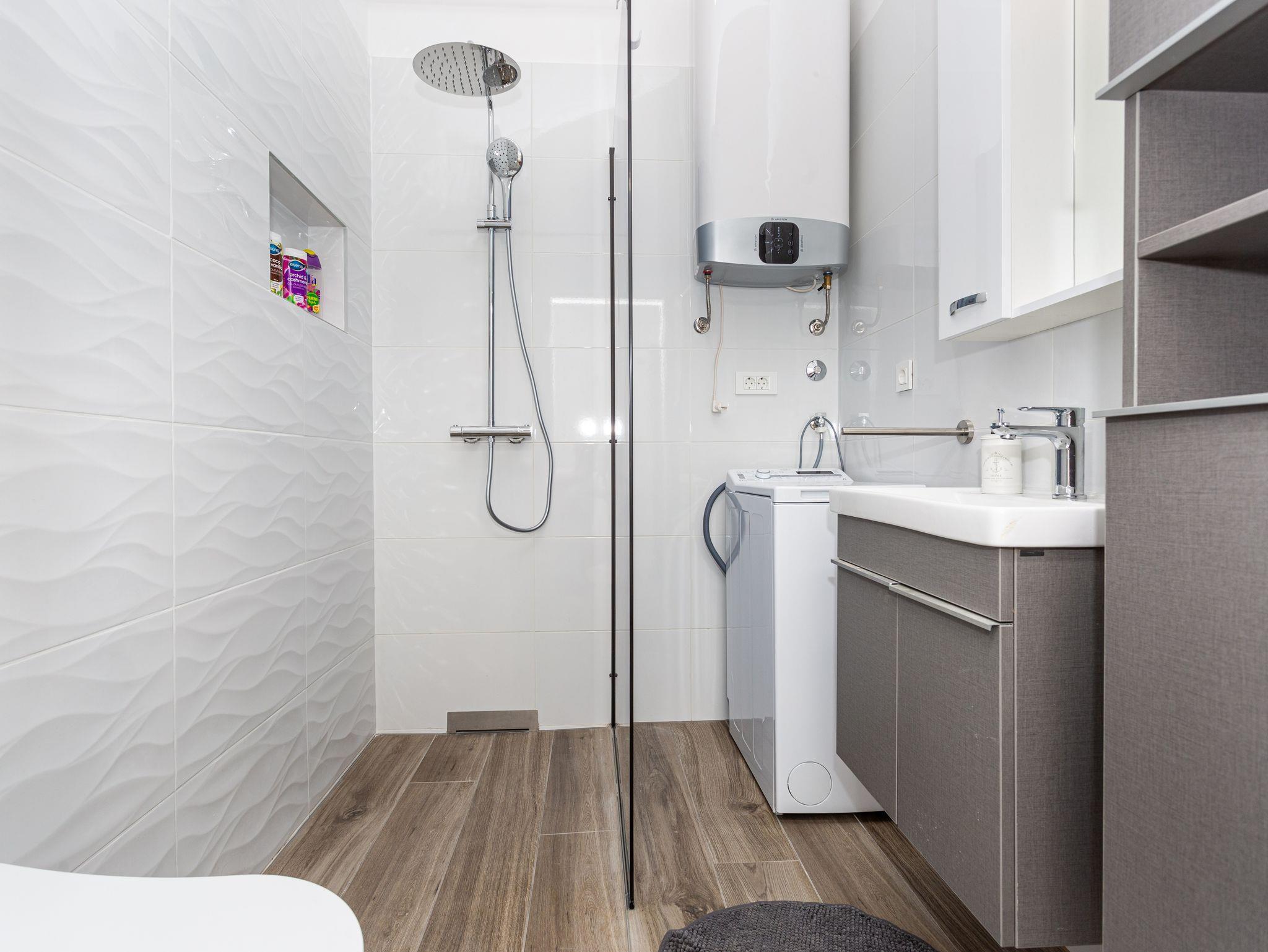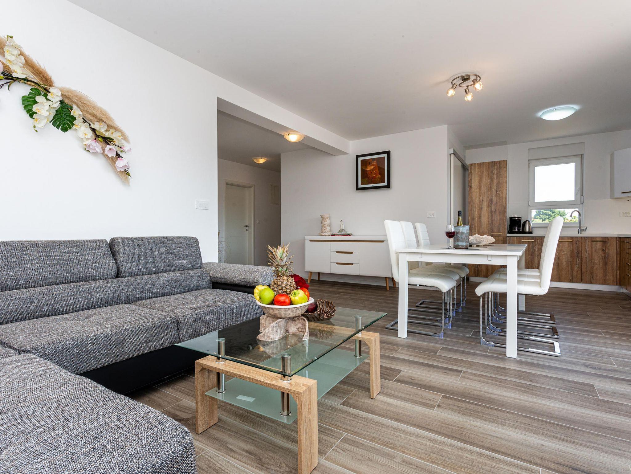 Ferienwohnung bietet Platz für 5 Gäste. Die Betten sind in Schlafzimmern, die es 2 gibt, und in Wohnzimmer, innerhalb einer Gesamtfläche von 76m2, angeordnet. Die Gäste haben eine eigene Terrasse zur Verfügung, auf der sie in warmen Sommernächten genießen können. Das Apartment bietet Meerblick. Es ist erlaubt, Speisen auf dem Gemeinschafts-Grill vorzubereiten. In der Unterkunftseinheit besteht die Möglichkeit des Mitbringens von Haustieren gegen Aufpreis. IM PREIS INBEGRIFFEN: Kurtaxe, Endreinigung, Klimatisierung, Parkplatz, Internet, Bügeleisen, Föhn. VERBINDLICHE ZUSÄTZLICHE KOSTEN: Aufzahlung für Kurzaufenthalte (prozentualer Zuschlag pro Nächtigungsanzahl: 30% - 1, 20% - 2, 10% - 3). UNVERBINDLICHE ZUSÄTZLICHE KOSTEN: Haustiere (15,00 € pro Nacht). Die Verfügbarkeit zusätzlicher Dienstleistungen in Ihrem reservierten Termin und die Preise derselben (falls nicht aufgeführt) müssen im Voraus überprüft werden. Zusätzliche Dienstleistungen die in der Zahlungsaufforderung nicht aufgeführt sind werden direkt beim Vermieter bezahlt, angenommen der Gast nutzt auch diese.