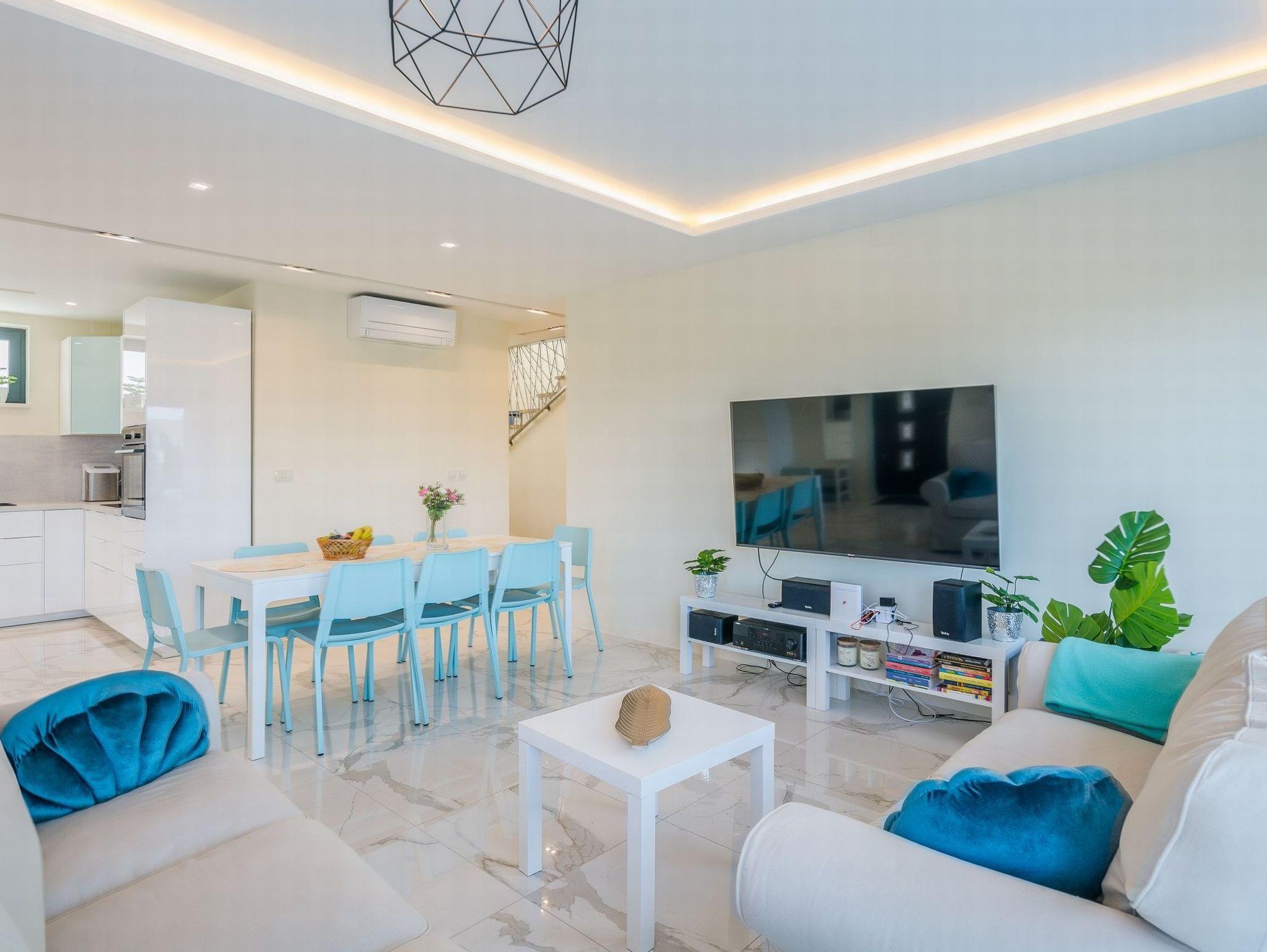 Ferienwohnung bietet Platz für 6 Gäste. Die Betten sind in Schlafzimmern, die es 3 gibt, innerhalb einer Gesamtfläche von 116m2, angeordnet. Die Gäste haben eine eigene Terrasse zur Verfügung, auf der sie in warmen Sommernächten genießen können. Das Apartment bietet Meerblick. Für vollen Genuss und Entspannung gibt es einen privaten Grill für Gäste dieser Unterkunft. Während ihres Aufenthalts können sich Gäste im privaten Schwimmbad entspannen. Räume der gebuchten Unterkunftseinheit werden nicht in eine Ganze verbunden. In der gebuchten Unterkunftseinheit zahlt man am Ort ein Depositum ( der Preis ist an der Internetseite angeführt ). IM PREIS INBEGRIFFEN: Kurtaxe, Endreinigung, Klimatisierung, Pool, Parkplatz, Internet, Kinderbett, Bügeleisen, Bügelbrett, Föhn. VERBINDLICHE ZUSÄTZLICHE KOSTEN: Kaution (500,00 € Einmalzahlung), Aufzahlung für Kurzaufenthalte (prozentualer Zuschlag pro Nächtigungsanzahl: 30% - 1, 20% - 2, 10% - 3). Die Verfügbarkeit zusätzlicher Dienstleistungen in Ihrem reservierten Termin und die Preise derselben (falls nicht aufgeführt) müssen im Voraus überprüft werden. Zusätzliche Dienstleistungen die in der Zahlungsaufforderung nicht aufgeführt sind werden direkt beim Vermieter bezahlt, angenommen der Gast nutzt auch diese.