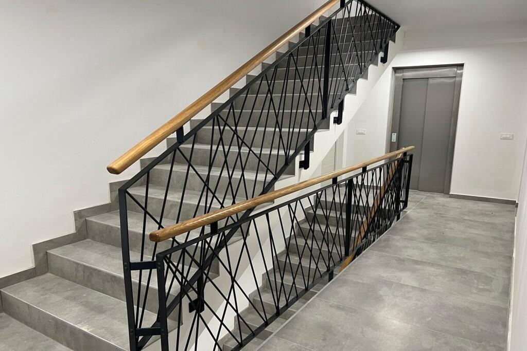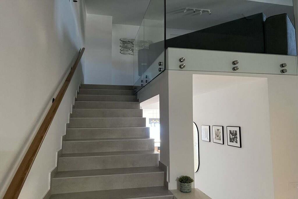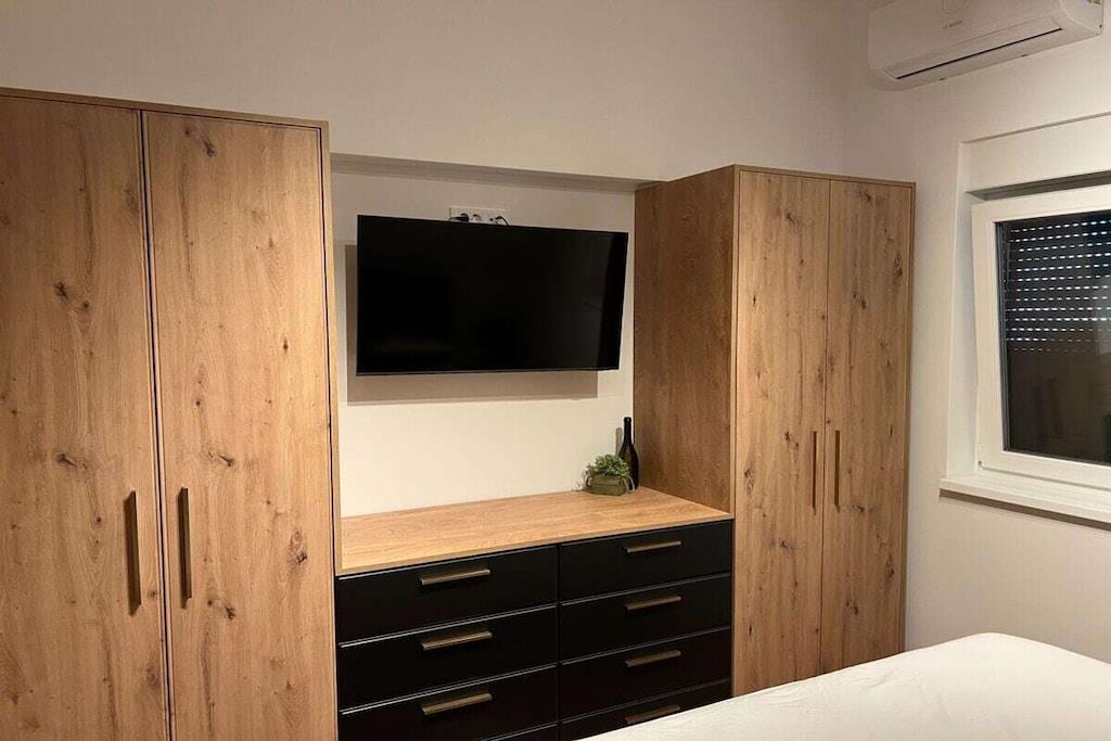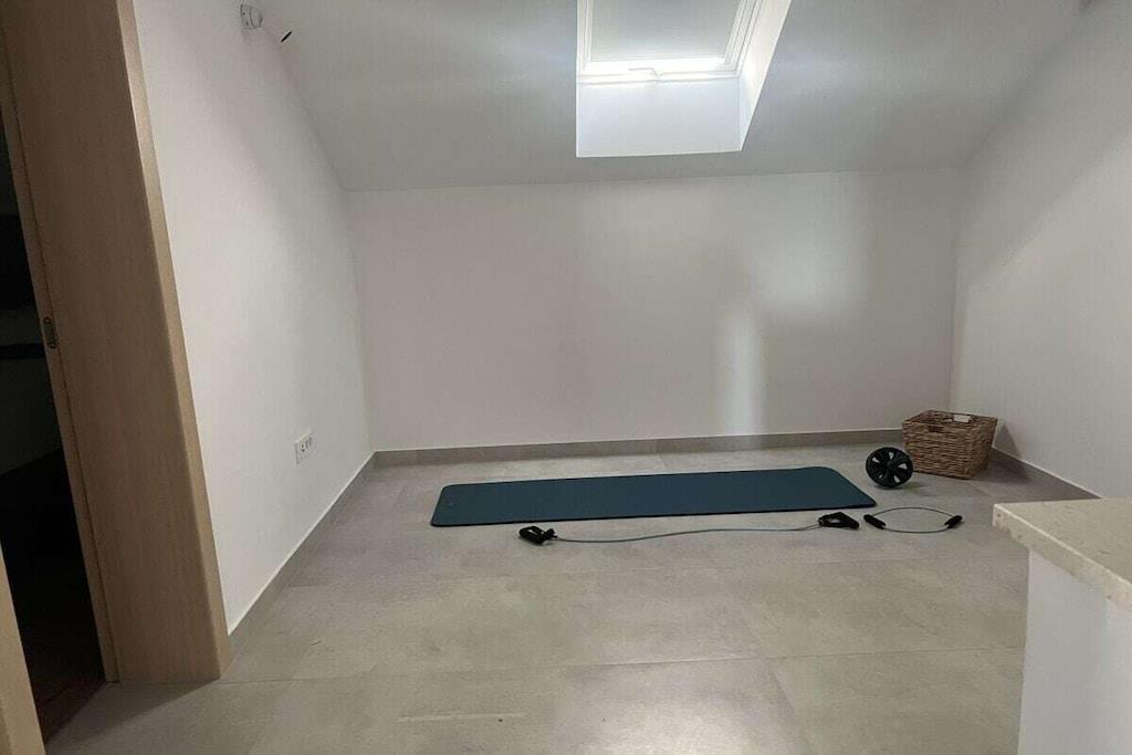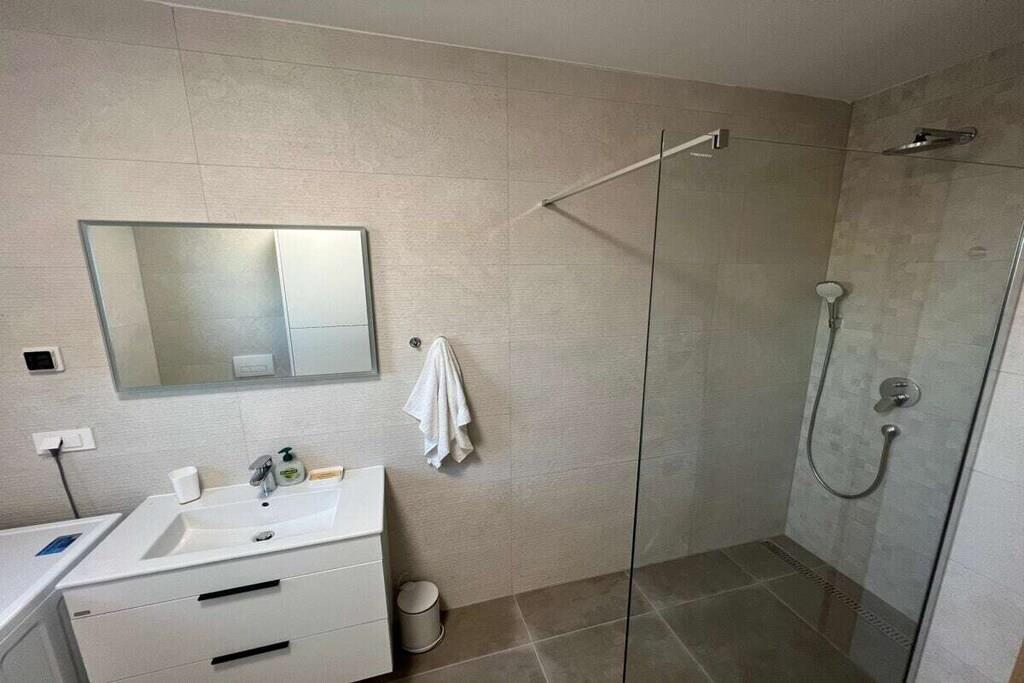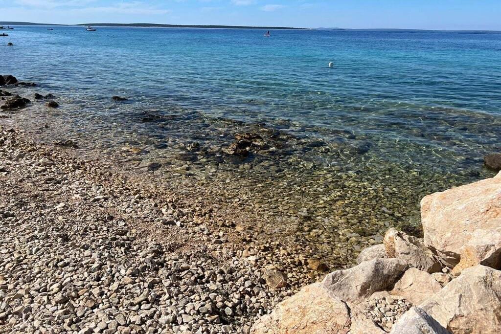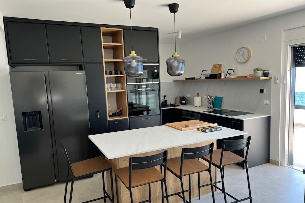 Luxurious two-story apartment of 135 m² on the island of Mandre in Pag, Croatia, for 4 to 6 people. Only 40 m from the sea and the beach. Fully equipped with top-of-the-line appliances, two bedrooms plus a gallery, a separate living room, two bathrooms, a room for exercise, a sunbathing area, and beautiful views of the sea and the islands in the distance. Four air conditioning units. The apartment is on the top floor and has an elevator. Everything is brand new. Two bedrooms plus a gallery. A whirlpool tub is on the upper terrace with a beautiful view. The kitchen is fully equipped, including a large refrigerator with ice maker and drinking water, a dishwasher, an induction cooktop with a range hood, a microwave, a coffee maker, and a toaster.