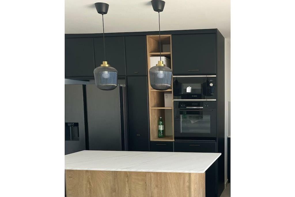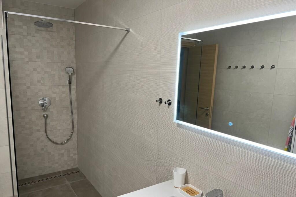 On the 3rd floor: (Living room(TV, seating area), Kitchen(hob, toaster, hood, coffee machine, microwave, dishwasher, fridge, dishes and cutlery), bedroom(double bed), bedroom(double bed), bathroom(shower, washbasin, toilet), bathroom(shower, washbasin, toilet)) Elevator, Fire Alarm, Hot Water, Internet Access DSL, Vacuum Cleaner, Internet access, Internet access, tumble dryer, washing machine, parking, ironing board, drying cabinet, Charging post for electric cars