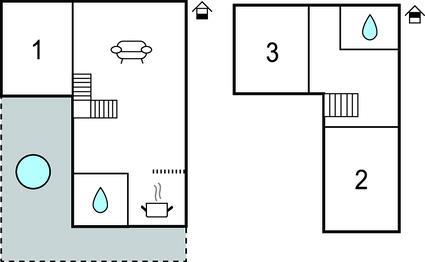 Badezimmer 3m2 (nr. 1) - WC. Warmes und kaltes Wasser. Dusche