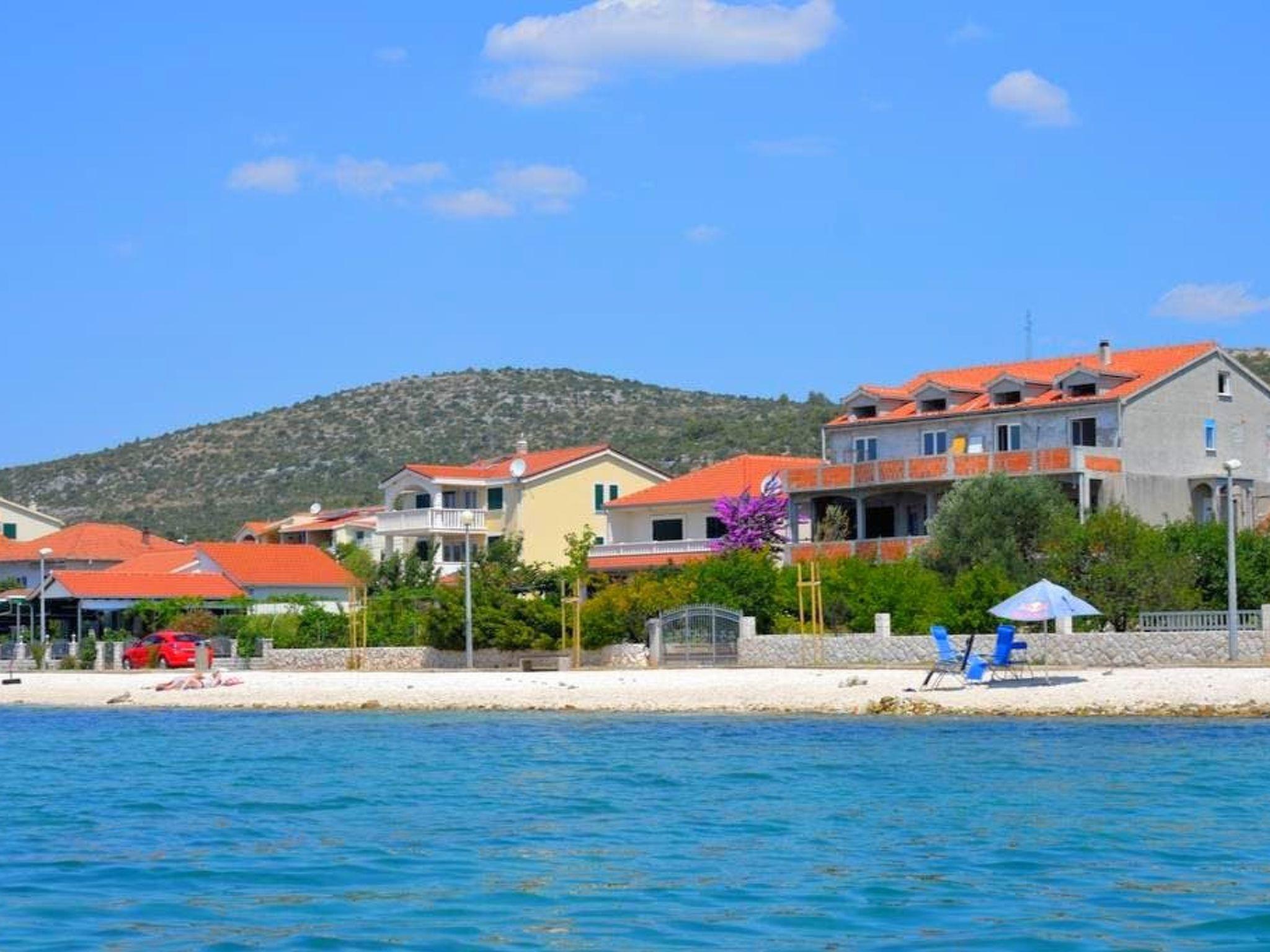 This house is situated directly on sea and only 50 m from nice pebble beach. It has 2 apartments on ground floor. A1 apartment consists of 2 bedrooms, kitchen with dining area and sofa, bathroom, terrace with grill, seating area and sea view. The apartment has air conditioning, internet, bed linen and towels and other things you might need. It's close to all services and children's playground is only 20 m from house. The apartment is great for family vacation.