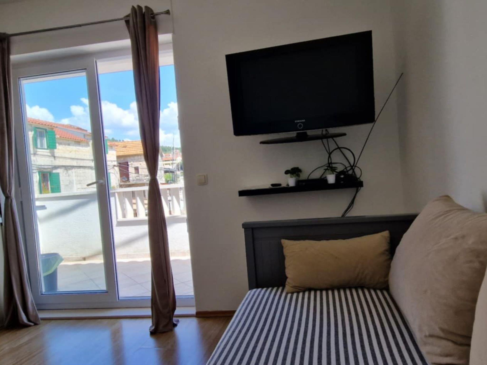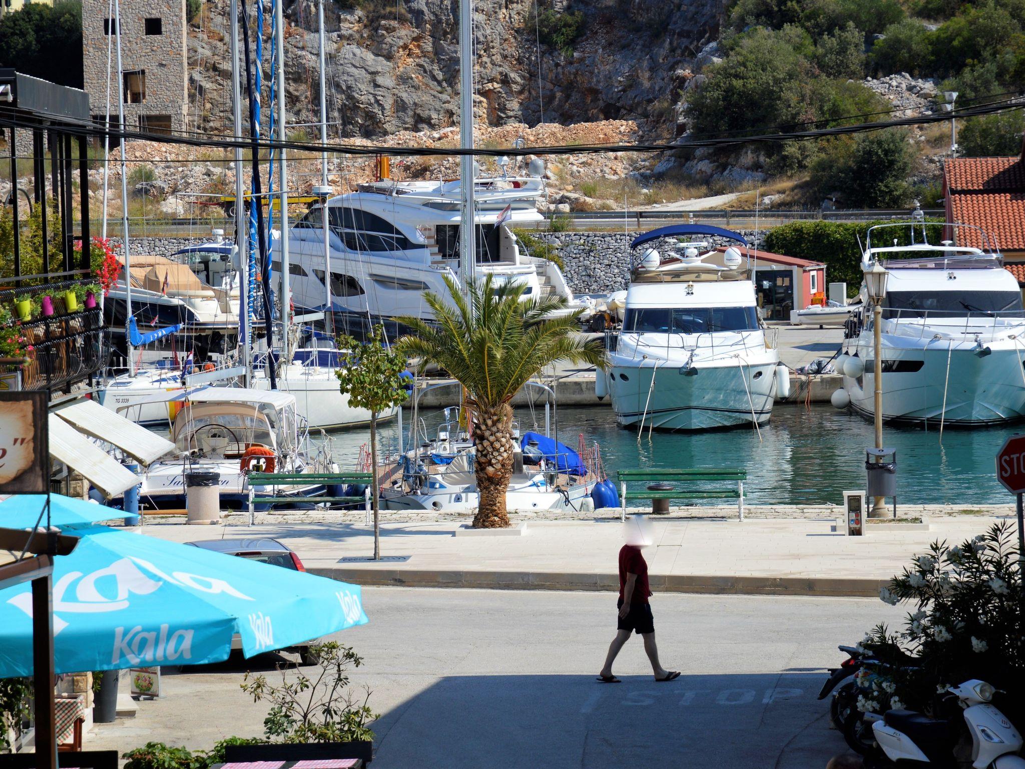 Apartment is situated in the center of place Marina, on the first floor of completely refurbished stone house in vicinity of all services. It is fully equipped and it consists of: one bedroom with bathroom, separate toilet , kitchen with living room and dining room from where you exit to balcony that gives you beautiful view to center and partially sea .You can park your car on fenced private parking lot by the house. Apartment is suitable for families with children, young and older people. Owners live only 60 m away in other house and they’re there for anything you may need.