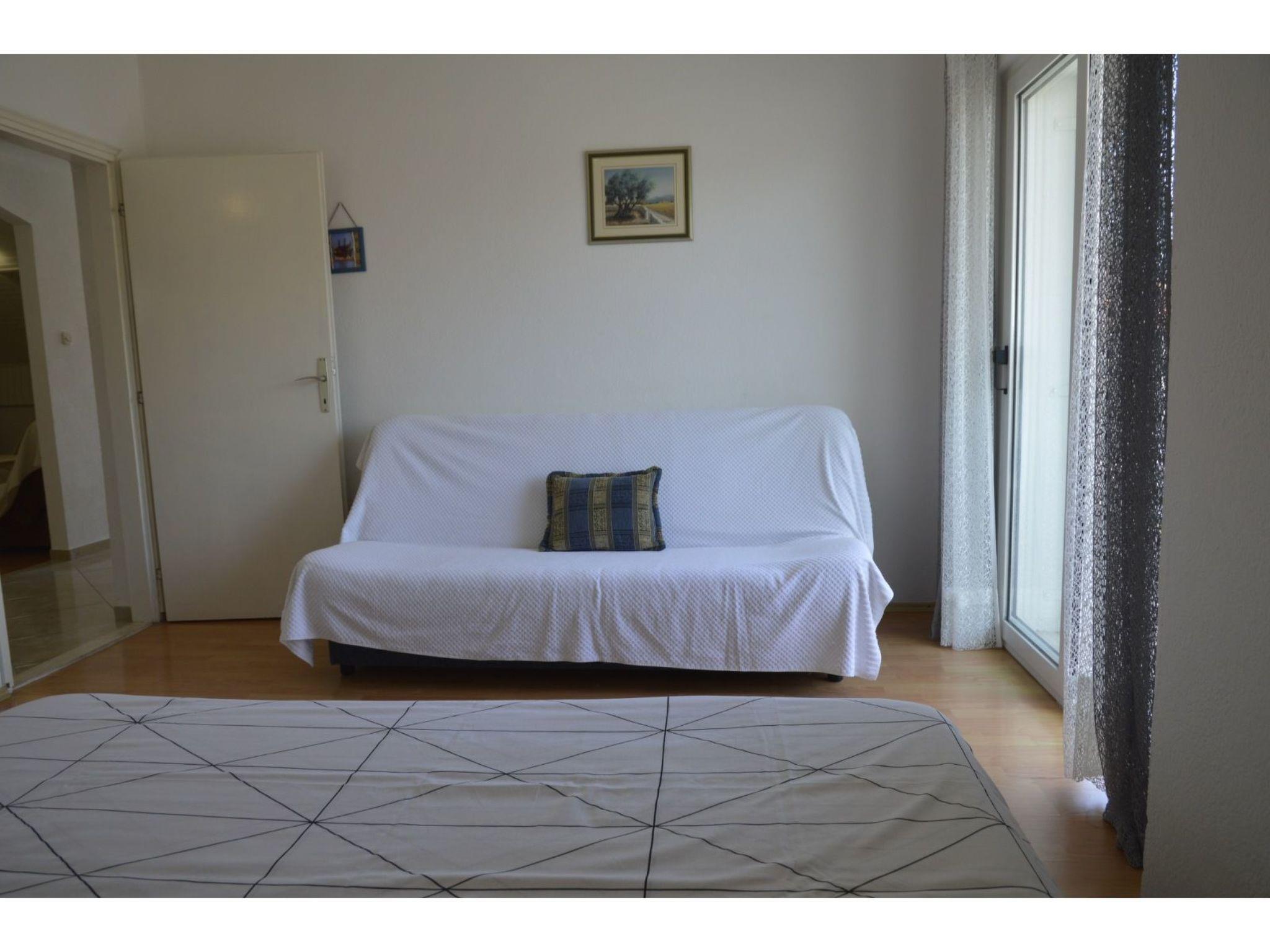 The apartment is situated on the upper house floor in the family house, giving you a nice sea view and the old Marina tower . It is much bigger than standard apartments so you'll have a full comfort here. You will have a whole house floor(90 sqm) with separate entrance and 2 balconies ( 10+8 sqm) on your disposal . There is one more apartment in house which can be combined with this one. It is fully equipped, spacious with nice croft, garden with grill. It consists of: two big bedrooms (double and additional bed) with exit to balcony with sea view, bathroom with toilet, kitchen with living room and dinning room also with exit to another balcony with garden view and private fenced parking lot for 2 cars. It is in vicinity of all services and the owners live on the first floor so they're always there for you. It is suitable for families with children or group of young people. General information: - Space 90 m2+ balconies, capacity 4 adults ,sea and garden view - Air conditioning, free parking lot, Internet,, changing bed linen and towels once a week, using grill, - using washing machine on the first house floor free of charge - Check in 14:00 pm - Check out 10:00 am Equipment: - Utensils, cutlery ,glasses ,toilet paper, kitchen role, soap, dishtowels, hair dryer - Kettle, toaster, mixer, coffee machine, iron - TV, microwave oven, fridge with deep freezer , electrical stove Distances: - Fish and green market , post office, and pharmacy 250m,doctor 30 m In vicinity of all major attractions. Possibility of leisure activities and sports & adventure activities. *** Price includes: - parking lot for 2 cars, air conditioning, visitor's tax, bed linen, towels, dishtowels, changing bed linen and towels once a week, using grill, internet access, final cleaning, energy costs, late arrival