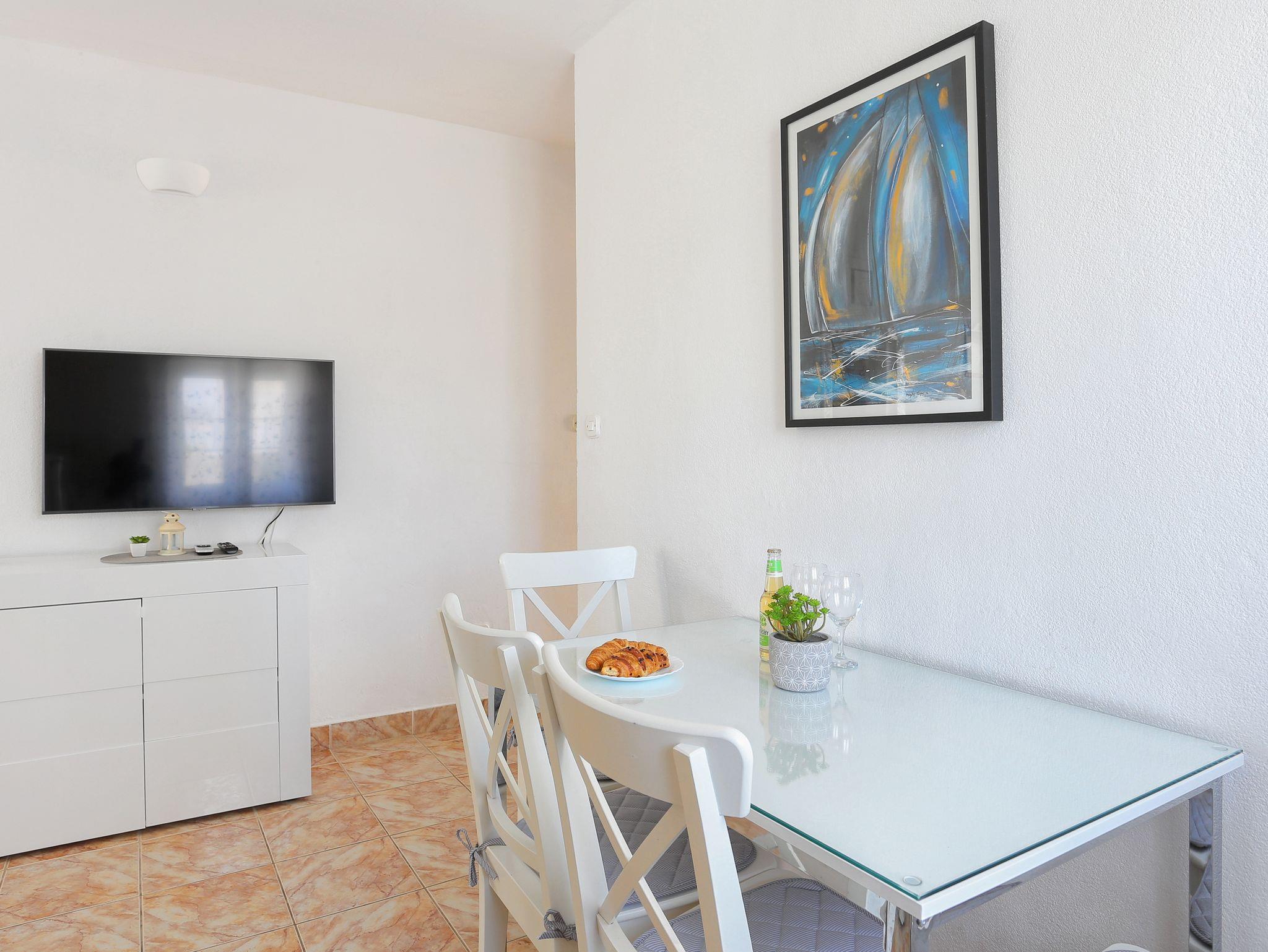 Ferienwohnung bietet Platz für 4 Gäste. Die Betten sind in Schlafzimmern, die es 2 gibt, innerhalb einer Gesamtfläche von 36m2, angeordnet. Die Gäste haben eine eigene Terrasse zur Verfügung, auf der sie in warmen Sommernächten genießen können. Das Apartment bietet Meerblick. Es ist erlaubt, Speisen auf dem Gemeinschafts-Grill vorzubereiten. IM PREIS INBEGRIFFEN: Kurtaxe, Endreinigung, Klimatisierung, Parkplatz, Internet, Bootsanlegeplatz, Bügeleisen, Bügelbrett, Föhn, Sonnenschirm. Die Verfügbarkeit zusätzlicher Dienstleistungen in Ihrem reservierten Termin und die Preise derselben (falls nicht aufgeführt) müssen im Voraus überprüft werden. Zusätzliche Dienstleistungen die in der Zahlungsaufforderung nicht aufgeführt sind werden direkt beim Vermieter bezahlt, angenommen der Gast nutzt auch diese.