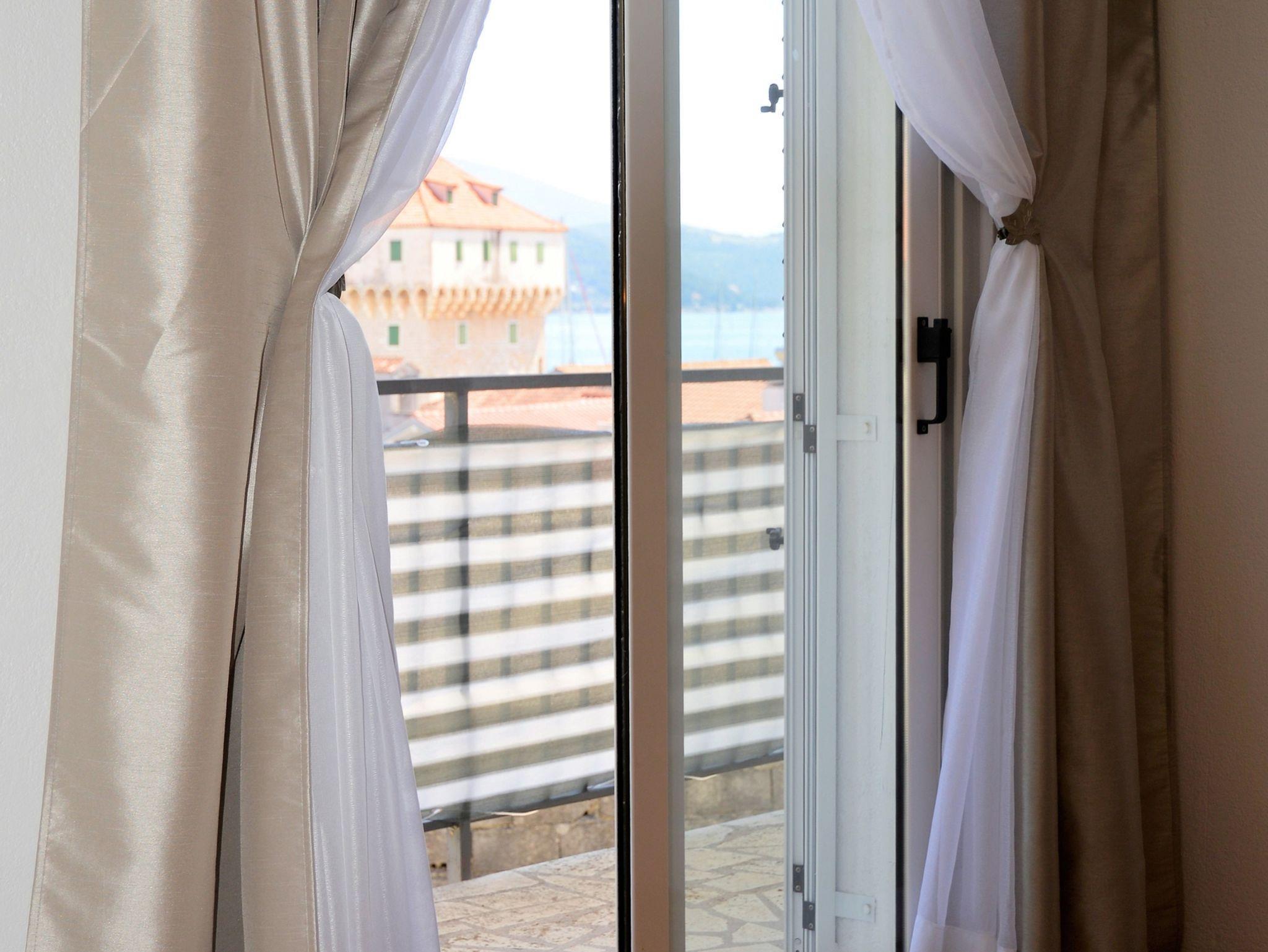 Ferienwohnung bietet Platz für 6 Gäste. Die Betten sind in Schlafzimmern, die es 2 gibt, innerhalb einer Gesamtfläche von 70m2, angeordnet. Die Gäste haben eine eigene Terrasse zur Verfügung, auf der sie in warmen Sommernächten genießen können. Das Apartment bietet Meerblick. Es ist erlaubt, Speisen auf dem Gemeinschafts-Grill vorzubereiten. IM PREIS INBEGRIFFEN: Kurtaxe, Endreinigung, Klimatisierung, Parkplatz, Internet, Wäschewaschen, Bügeleisen, Bügelbrett, Föhn. VERBINDLICHE ZUSÄTZLICHE KOSTEN: Aufzahlung für Kurzaufenthalte (prozentualer Zuschlag pro Nächtigungsanzahl: 30% - 1, 20% - 2, 10% - 3). Die Verfügbarkeit zusätzlicher Dienstleistungen in Ihrem reservierten Termin und die Preise derselben (falls nicht aufgeführt) müssen im Voraus überprüft werden. Zusätzliche Dienstleistungen die in der Zahlungsaufforderung nicht aufgeführt sind werden direkt beim Vermieter bezahlt, angenommen der Gast nutzt auch diese.
