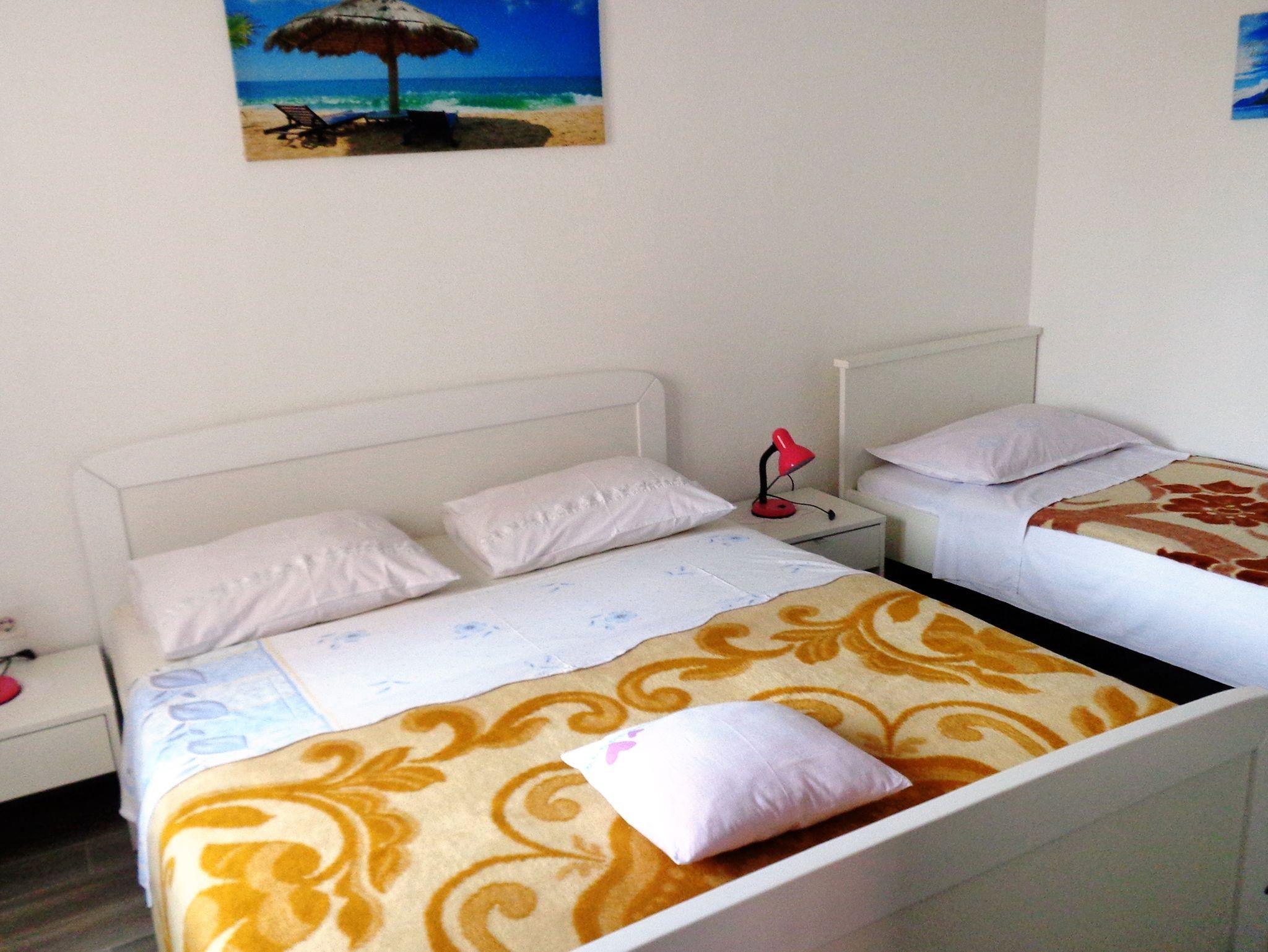 Ferienwohnung bietet Platz für 3 Gäste. Die Betten sind in Schlafzimmern, die es 1 gibt, innerhalb einer Gesamtfläche von 23m2, angeordnet. Die Gäste haben eine eigene Terrasse zur Verfügung, auf der sie in warmen Sommernächten genießen können. Es ist erlaubt, Speisen auf dem Gemeinschafts-Grill vorzubereiten. In der Unterkunftseinheit besteht die Möglichkeit des Mitbringens von Haustieren gegen Aufpreis. IM PREIS INBEGRIFFEN: Kurtaxe, Endreinigung, Klimatisierung, Parkplatz, Internet, Wäschewaschen, Kinderbett, Bügeleisen, Bügelbrett, Föhn. VERBINDLICHE ZUSÄTZLICHE KOSTEN: Aufzahlung für Kurzaufenthalte (prozentualer Zuschlag pro Nächtigungsanzahl: 30% - 1, 20% - 2, 10% - 3). UNVERBINDLICHE ZUSÄTZLICHE KOSTEN: Haustiere (15,00 € pro Nacht). Die Verfügbarkeit zusätzlicher Dienstleistungen in Ihrem reservierten Termin und die Preise derselben (falls nicht aufgeführt) müssen im Voraus überprüft werden. Zusätzliche Dienstleistungen die in der Zahlungsaufforderung nicht aufgeführt sind werden direkt beim Vermieter bezahlt, angenommen der Gast nutzt auch diese. Ermäßigung auf den Grundpreis: Gratistag 14=13 (bei einem Aufenthalt von 14 Tagen oder mehr erhalten Sie einen Gratistag für den Aufenthalt bis 31.12.26).