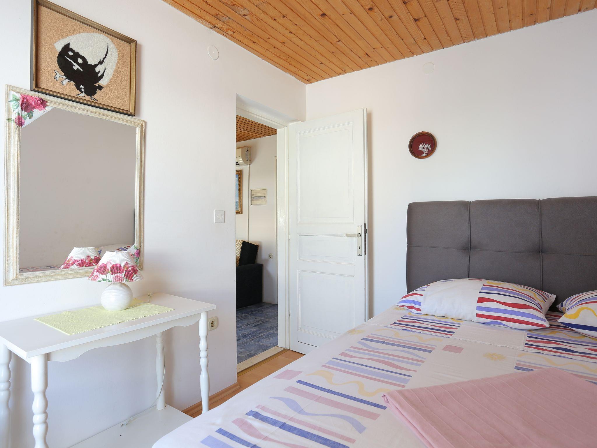 Ferienwohnung bietet Platz für 4 Gäste. Die Betten sind in Schlafzimmern, die es 2 gibt, innerhalb einer Gesamtfläche von 34m2, angeordnet. Die Gäste haben eine eigene Terrasse zur Verfügung, auf der sie in warmen Sommernächten genießen können. Das Apartment bietet Meerblick. Es ist erlaubt, Speisen auf dem Gemeinschafts-Grill vorzubereiten. IM PREIS INBEGRIFFEN: Kurtaxe, Endreinigung, Klimatisierung, Parkplatz, Internet, Kinderbett, Bügeleisen, Bügelbrett, Föhn. VERBINDLICHE ZUSÄTZLICHE KOSTEN: Aufzahlung für Kurzaufenthalte (prozentualer Zuschlag pro Nächtigungsanzahl: 30% - 1, 20% - 2, 10% - 3). UNVERBINDLICHE ZUSÄTZLICHE KOSTEN: Wäschewaschen (5,00 € Waschen). Die Verfügbarkeit zusätzlicher Dienstleistungen in Ihrem reservierten Termin und die Preise derselben (falls nicht aufgeführt) müssen im Voraus überprüft werden. Zusätzliche Dienstleistungen die in der Zahlungsaufforderung nicht aufgeführt sind werden direkt beim Vermieter bezahlt, angenommen der Gast nutzt auch diese.