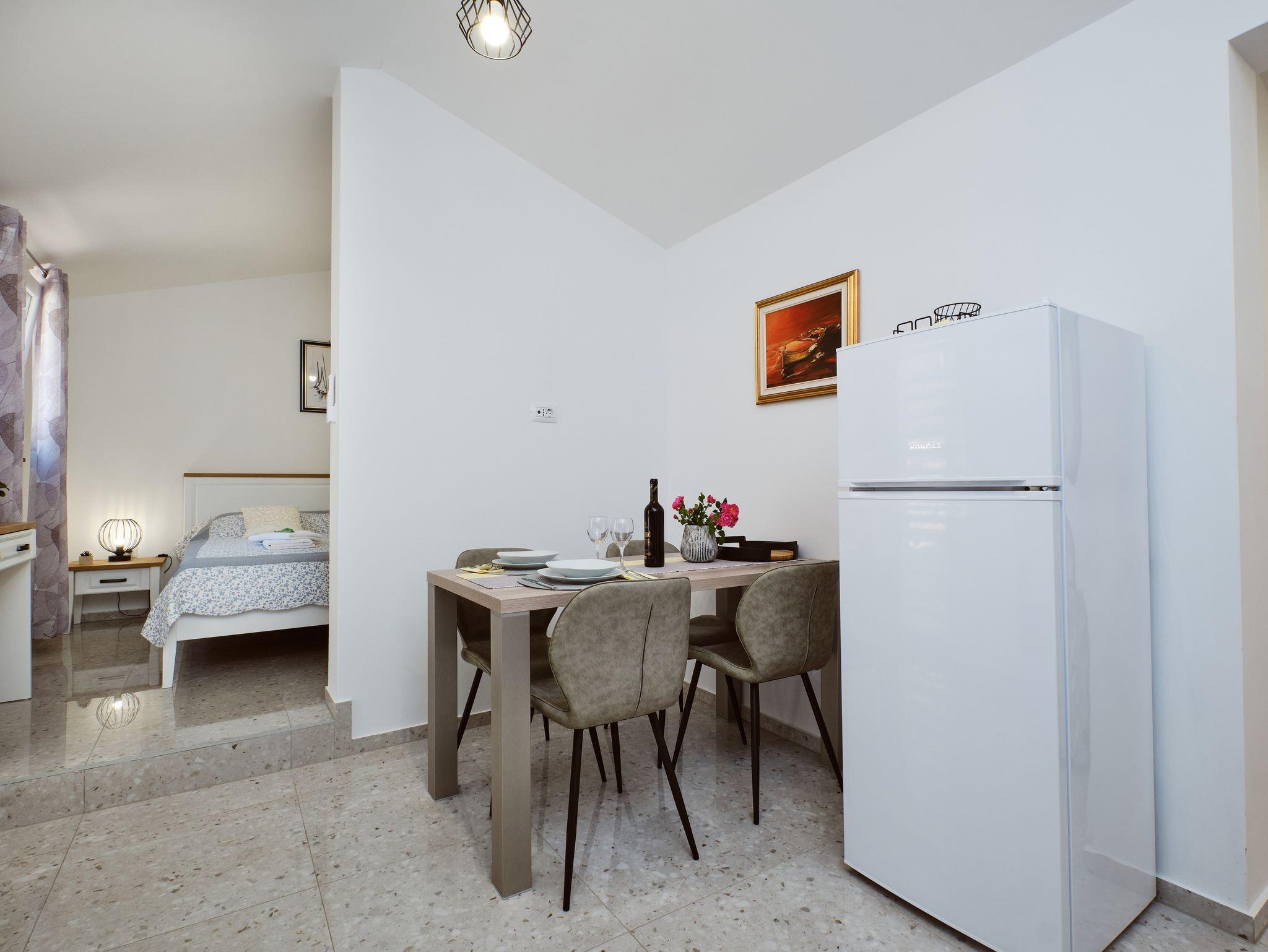 Studio bietet Platz für 2 Gäste. Die Betten sind in Schlafzimmern, die es 1 gibt, innerhalb einer Gesamtfläche von 28m2, angeordnet. Die reservierte Unterkunftseinheit verfügt über einen gemeinsame Terrasse. IM PREIS INBEGRIFFEN: Kurtaxe, Endreinigung, Klimatisierung, Parkplatz, Internet, Föhn. VERBINDLICHE ZUSÄTZLICHE KOSTEN: Aufzahlung für Kurzaufenthalte (prozentualer Zuschlag pro Nächtigungsanzahl: 30% - 1, 20% - 2, 10% - 3). Die Verfügbarkeit zusätzlicher Dienstleistungen in Ihrem reservierten Termin und die Preise derselben (falls nicht aufgeführt) müssen im Voraus überprüft werden. Zusätzliche Dienstleistungen die in der Zahlungsaufforderung nicht aufgeführt sind werden direkt beim Vermieter bezahlt, angenommen der Gast nutzt auch diese. Ermäßigung auf den Grundpreis: Gratistag 14=13 (bei einem Aufenthalt von 14 Tagen oder mehr erhalten Sie einen Gratistag für den Aufenthalt bis 31.12.26).