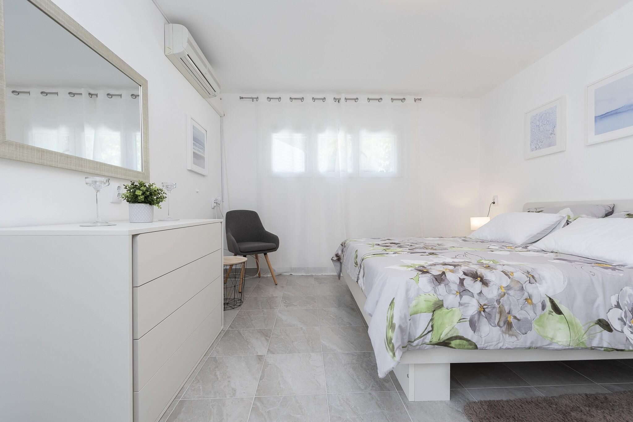 With its fantastic seafront location and a private swimming pool, this 3-bedroom villa in Maslenica offers a comfortable stay for a family of 8 persons. You can soak up the sun on the loungers before taking a refreshing dip in the pool. The villa is within walking distance from the sea, restaurants and supermarkets. After enjoying a day by the sea, you can enjoy a scrumptious meal and buy groceries. The national park Paklenica and Krka waterfalls are popular in the area. Visit the town of Zadar - walk on the Roman Forum, listen to the sounds of the well-known sea orgs, or taste local delicacies. All bedrooms of the villa are air-conditioned. The private terrace with a lounge set is ideal for having delicious home-cooked meals and barbecuing in the evenings. You can go for walks in the private illuminated garden at night or lie down gazing at the stars. A cot and a high chair are provided for free on request. Parking is available. Zadar International Airport is at 33 km.
