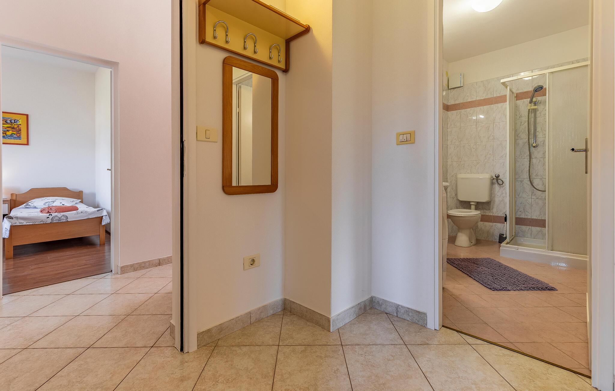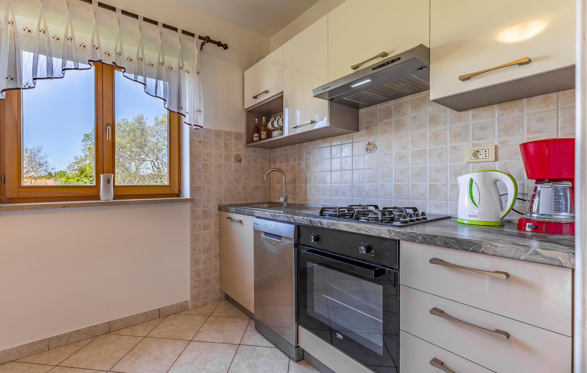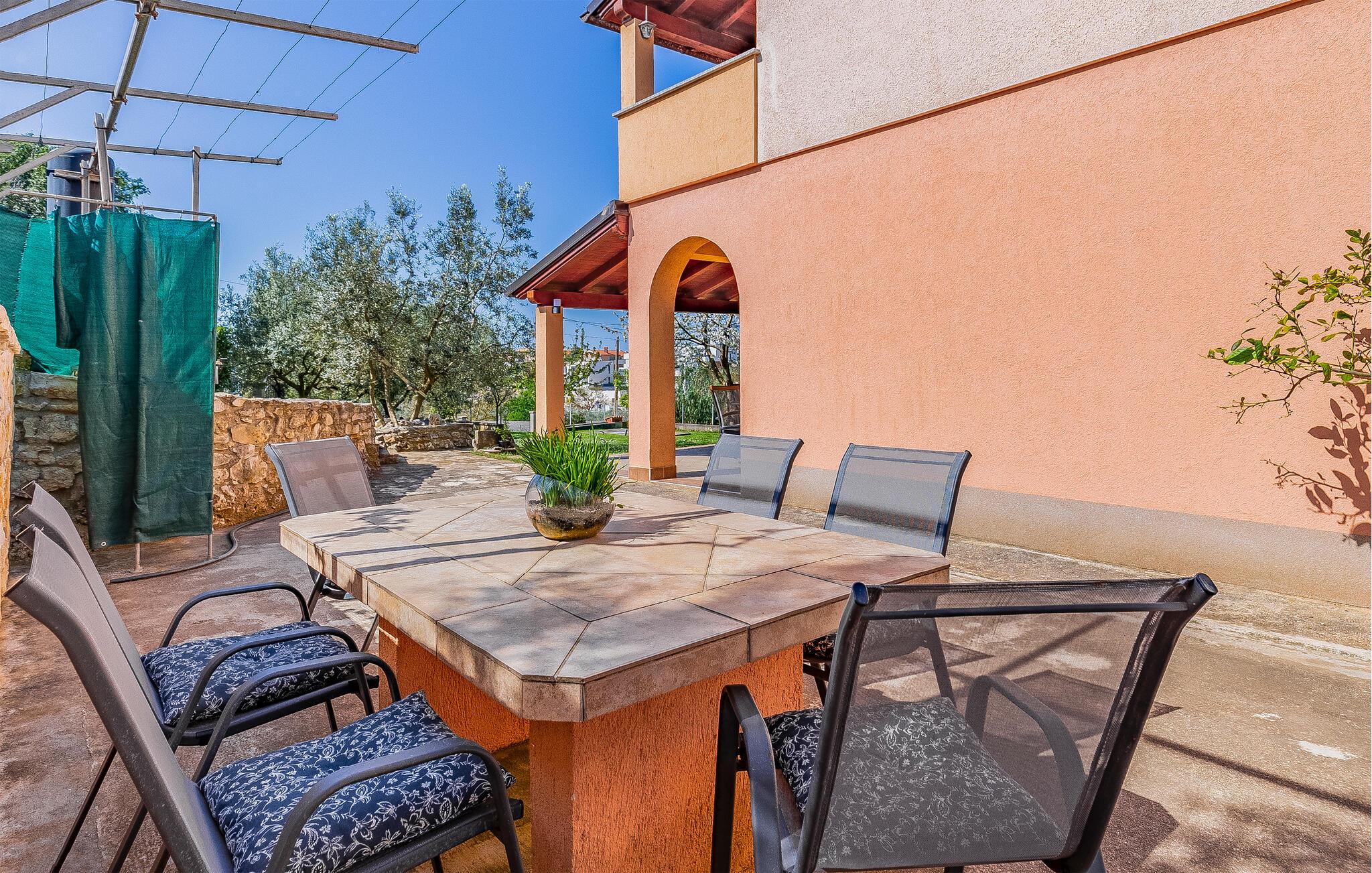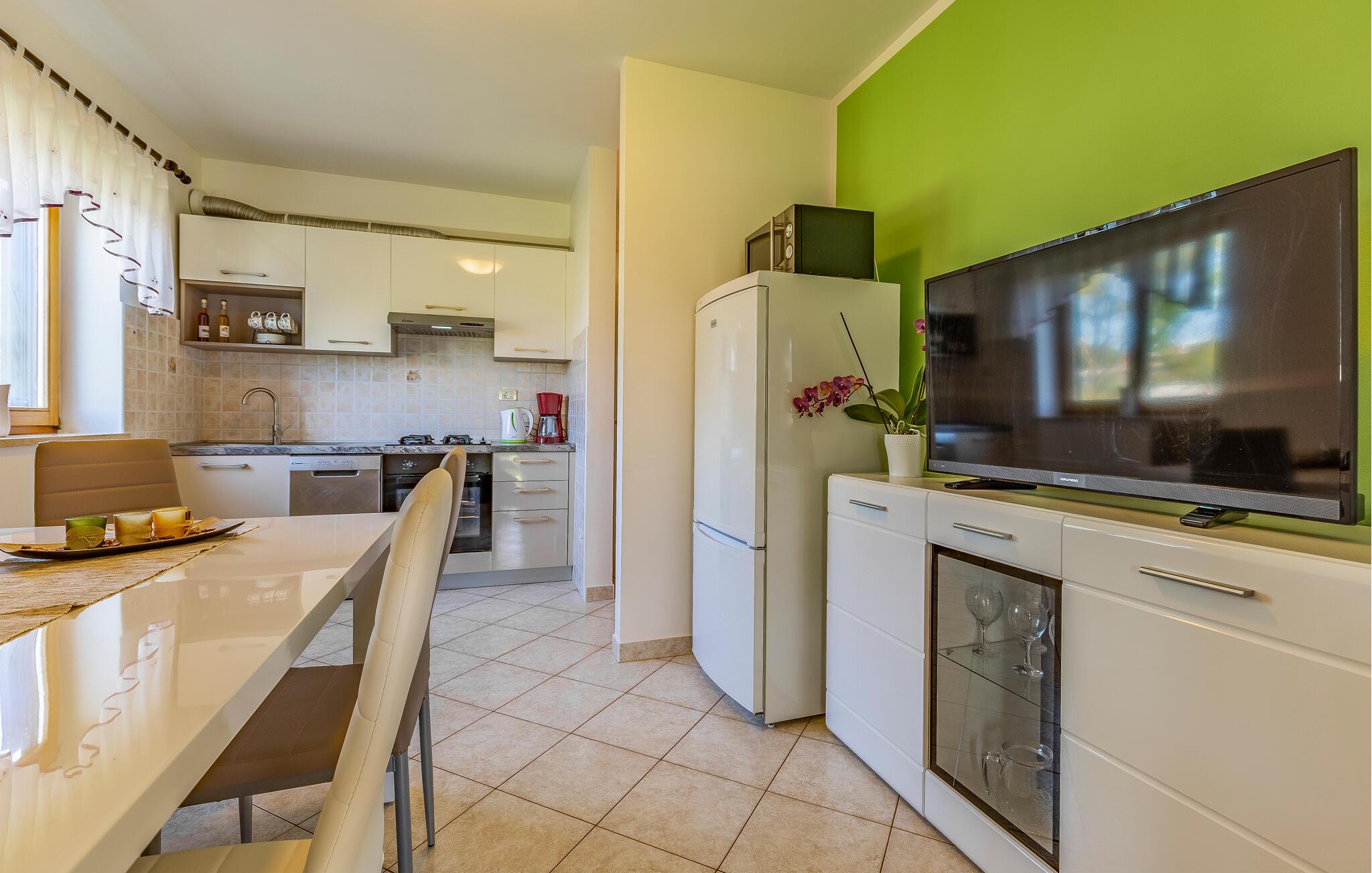 Diese einfach und funktionell eingerichtete Ferienwohnung befindet sich im begehrten Ort Medulin, der mit sämtlichen Unterhaltungs- und Sportmöglichkeiten unzählige Besucher anzieht. Erkunden Sie die Umgebung und suchen Sie sich einen Naturstrand nach Ihrem Geschmack aus. Die Ferienwohnung verfügt ebenso über eine überdachte Terrasse, die Sie zum Entspannen einlädt. Auf Grund der Lage empfehlen wir Ihnen, die Orte in der Nachbarschaft zu besuchen, z.B. die Stadt Pula, die für alle Altersgruppen spannende Attraktionen bietet. Das Naturschutzgebiet Kap Kamenjak in Premantura lädt Sie ebenso ein, sich von seinen Naturschönheiten begeistern zu lassen.