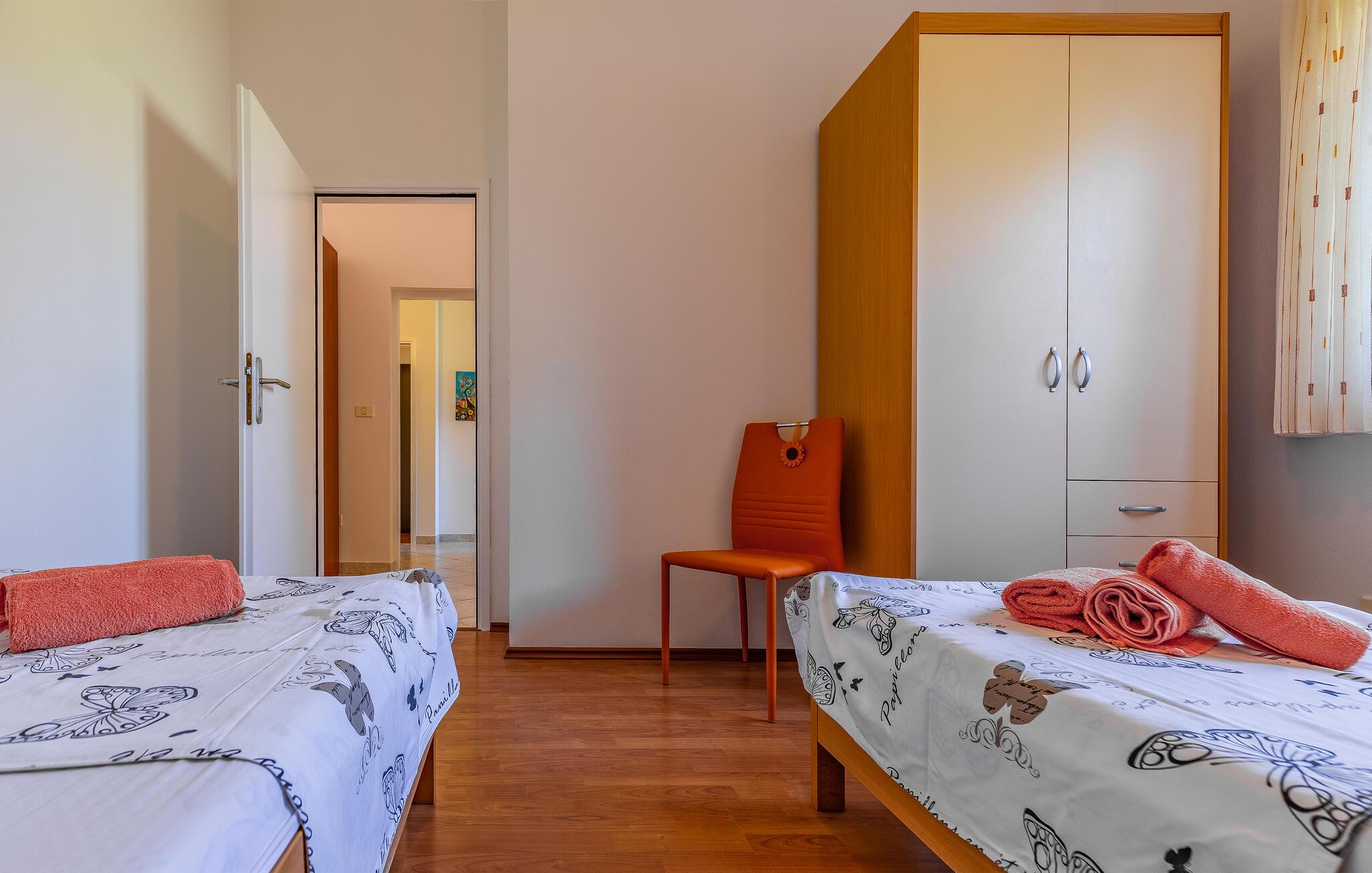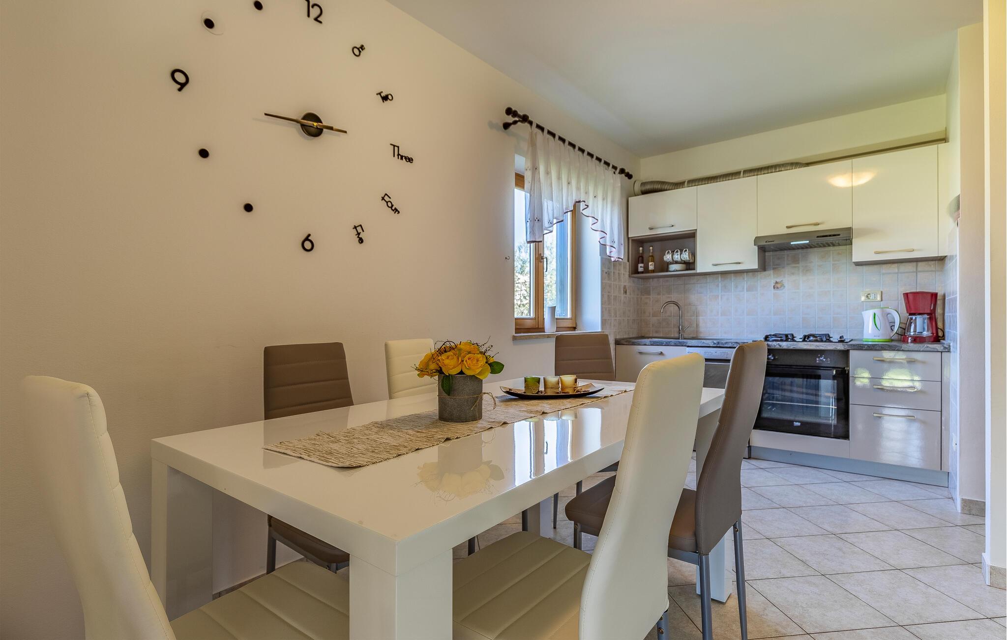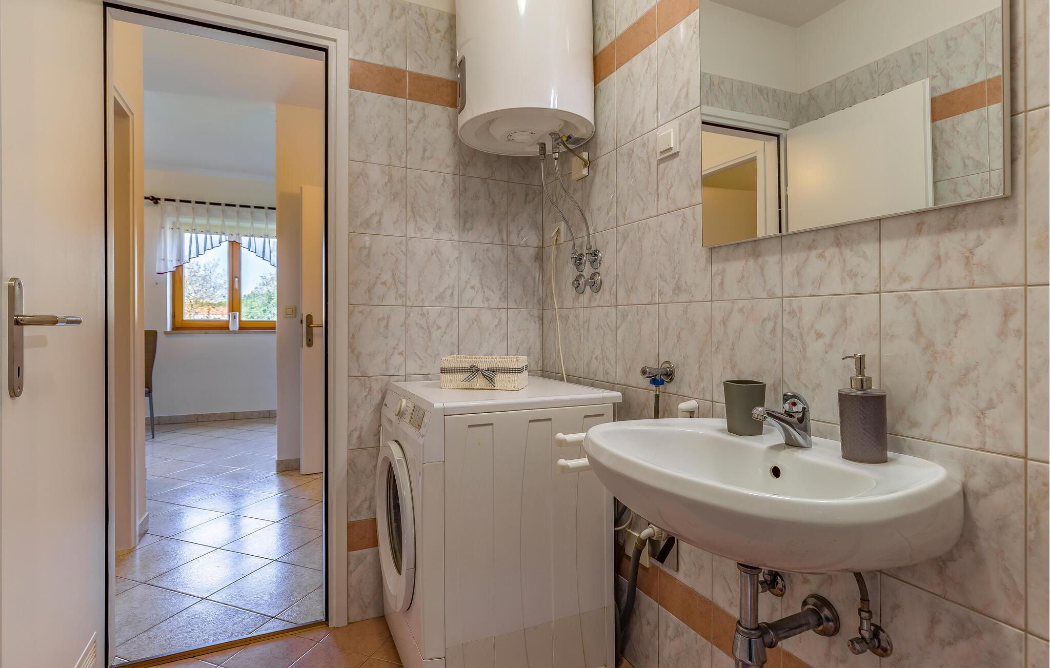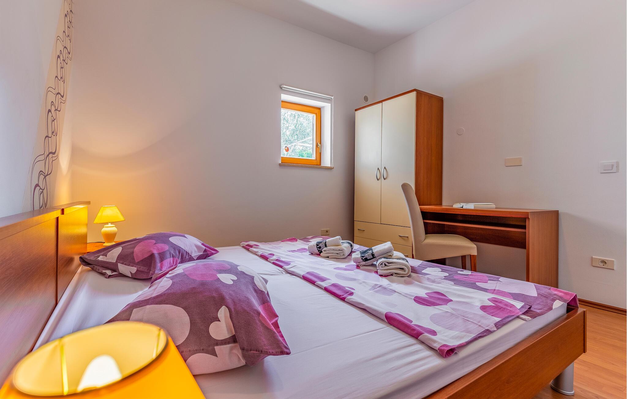 Diese einfach und funktionell eingerichtete Ferienwohnung befindet sich im begehrten Ort Medulin, der mit sämtlichen Unterhaltungs- und Sportmöglichkeiten unzählige Besucher anzieht. Erkunden Sie die Umgebung und suchen Sie sich einen Naturstrand nach Ihrem Geschmack aus. Die Ferienwohnung verfügt ebenso über eine überdachte Terrasse, die Sie zum Entspannen einlädt. Auf Grund der Lage empfehlen wir Ihnen, die Orte in der Nachbarschaft zu besuchen, z.B. die Stadt Pula, die für alle Altersgruppen spannende Attraktionen bietet. Das Naturschutzgebiet Kap Kamenjak in Premantura lädt Sie ebenso ein, sich von seinen Naturschönheiten begeistern zu lassen.
