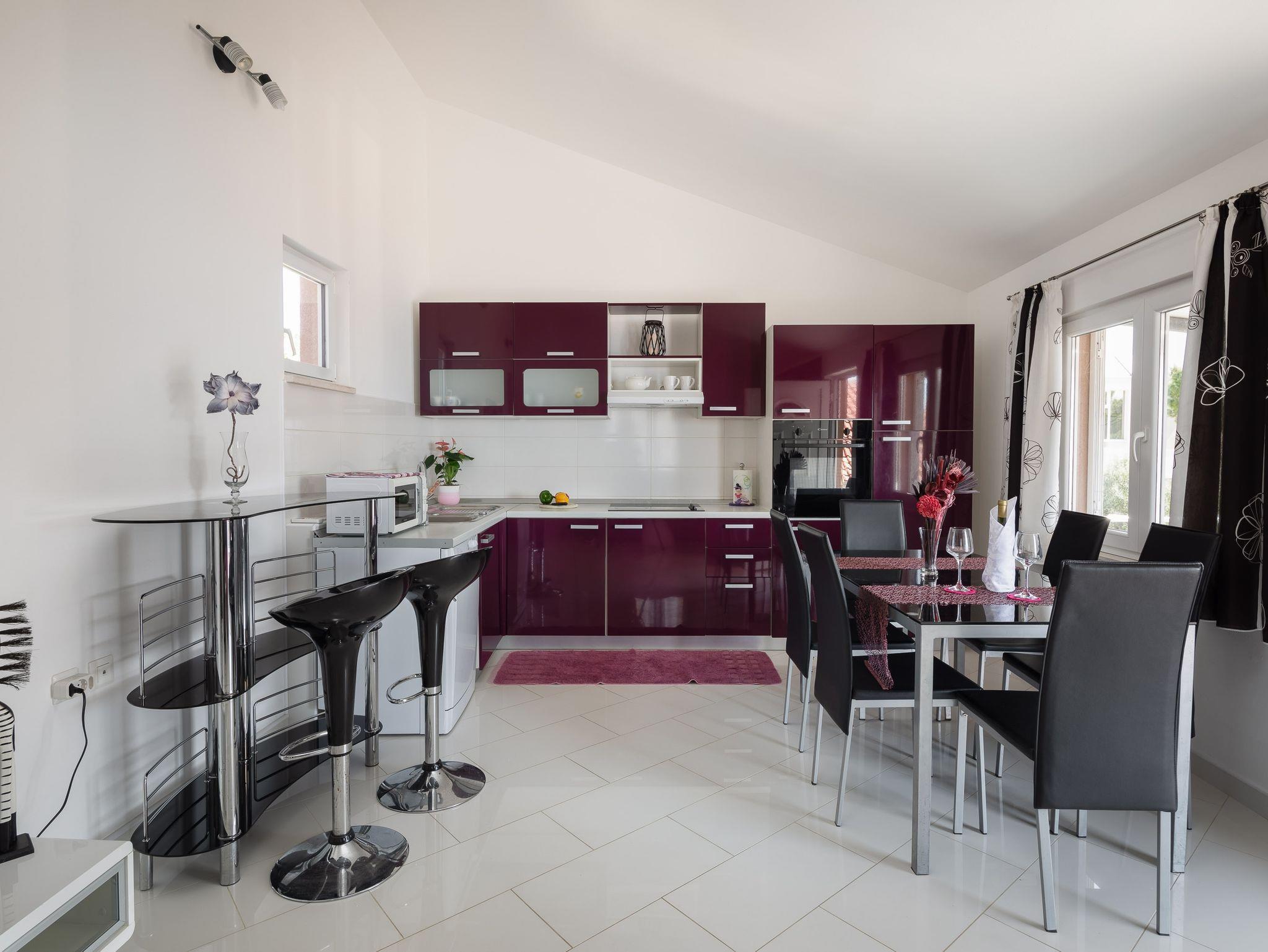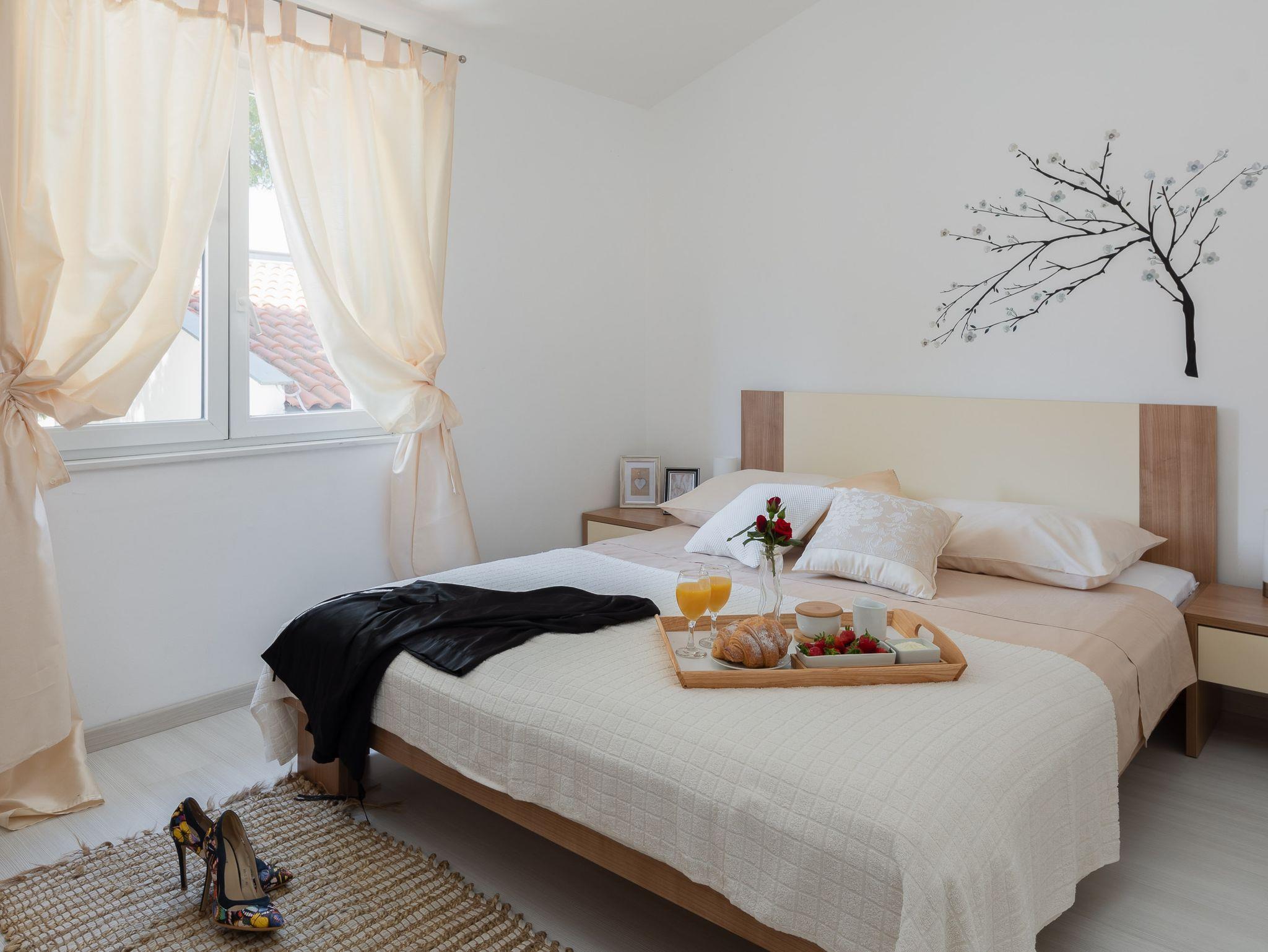 Ferienwohnung bietet Platz für 6 Gäste. Die Betten sind in Schlafzimmern, die es 2 gibt, und in Wohnzimmer, innerhalb einer Gesamtfläche von 51m2, angeordnet. Die Gäste haben eine eigene Terrasse zur Verfügung, auf der sie in warmen Sommernächten genießen können. Das Apartment bietet Meerblick. Es ist erlaubt, Speisen auf dem Gemeinschafts-Grill vorzubereiten. In der Unterkunftseinheit besteht die Möglichkeit des Mitbringens von Haustieren, und die Dienstleistung ist im Preis der Unterkunft enthalten. IM PREIS INBEGRIFFEN: Kurtaxe, Endreinigung, Klimatisierung, Parkplatz, Internet, Wäschewaschen, Bootsanlegeplatz, Haustiere, Kinderbett, Liegestühle. Die Verfügbarkeit zusätzlicher Dienstleistungen in Ihrem reservierten Termin und die Preise derselben (falls nicht aufgeführt) müssen im Voraus überprüft werden. Zusätzliche Dienstleistungen die in der Zahlungsaufforderung nicht aufgeführt sind werden direkt beim Vermieter bezahlt, angenommen der Gast nutzt auch diese. Ermäßigung auf den Grundpreis: Gratistag 21=19 (bei einem Aufenthalt von 21 Tagen oder mehr erhalten Sie 2 Gratistage für den Aufenthalt bis 31.12.25).