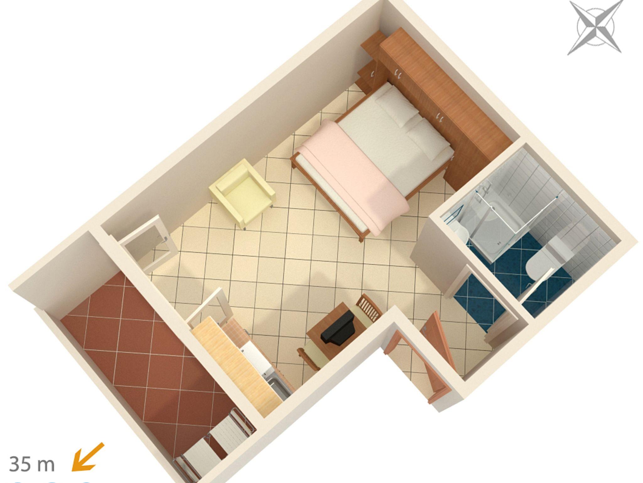Studio bietet Platz für 3 Gäste. Die Betten sind in Schlafzimmern, die es 1 gibt, innerhalb einer Gesamtfläche von 18m2, angeordnet. Die Gäste haben einen eigenen Balkon zur Verfügung, auf der sie in warmen Sommernächten genießen können. Das Studio-Apartment bietet Meerblick. Es ist erlaubt, Speisen auf dem Gemeinschafts-Grill vorzubereiten. IM PREIS INBEGRIFFEN: Kurtaxe, Endreinigung, Parkplatz, Internet, Kinderbett, Bügeleisen, Bügelbrett, Föhn, Sonnenschirm. VERBINDLICHE ZUSÄTZLICHE KOSTEN: Aufzahlung für Kurzaufenthalte (prozentualer Zuschlag pro Nächtigungsanzahl: 30% - 1, 20% - 2, 10% - 3). UNVERBINDLICHE ZUSÄTZLICHE KOSTEN: Klimatisierung (0,50 € pro Stunde), Wäschewaschen (5,00 € Waschen). Die Verfügbarkeit zusätzlicher Dienstleistungen in Ihrem reservierten Termin und die Preise derselben (falls nicht aufgeführt) müssen im Voraus überprüft werden. Zusätzliche Dienstleistungen die in der Zahlungsaufforderung nicht aufgeführt sind werden direkt beim Vermieter bezahlt, angenommen der Gast nutzt auch diese. Ermäßigung auf den Grundpreis: Gratistag 28=25 (bei einem Aufenthalt von 28 oder mehr Tagen erhalten Sie 3 kostenlose Tage für den Aufenthalt bis 31.12.26).