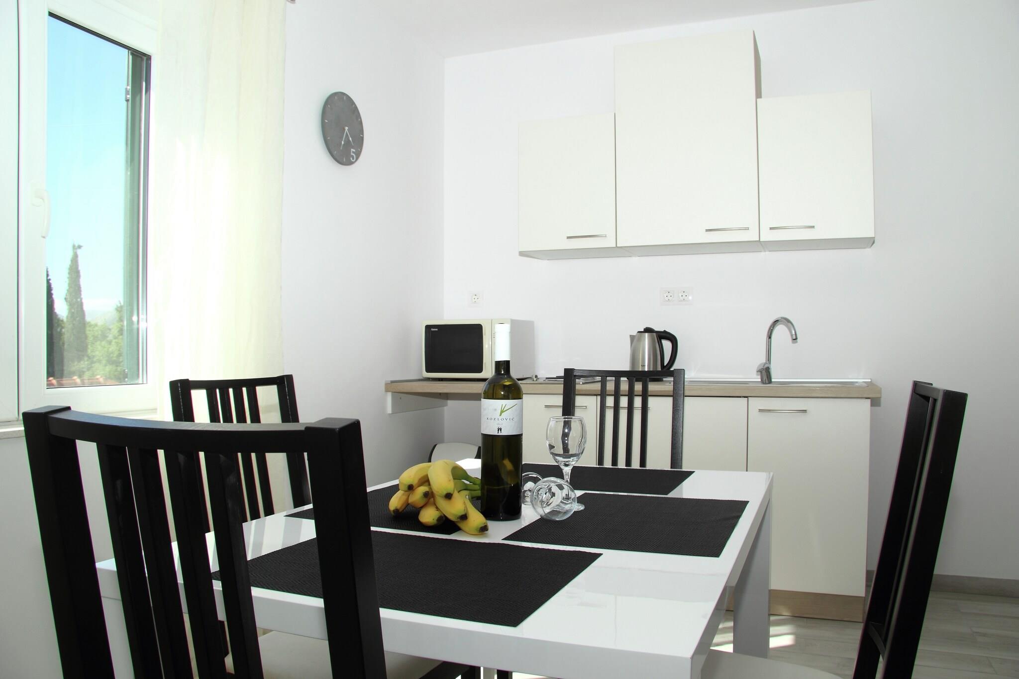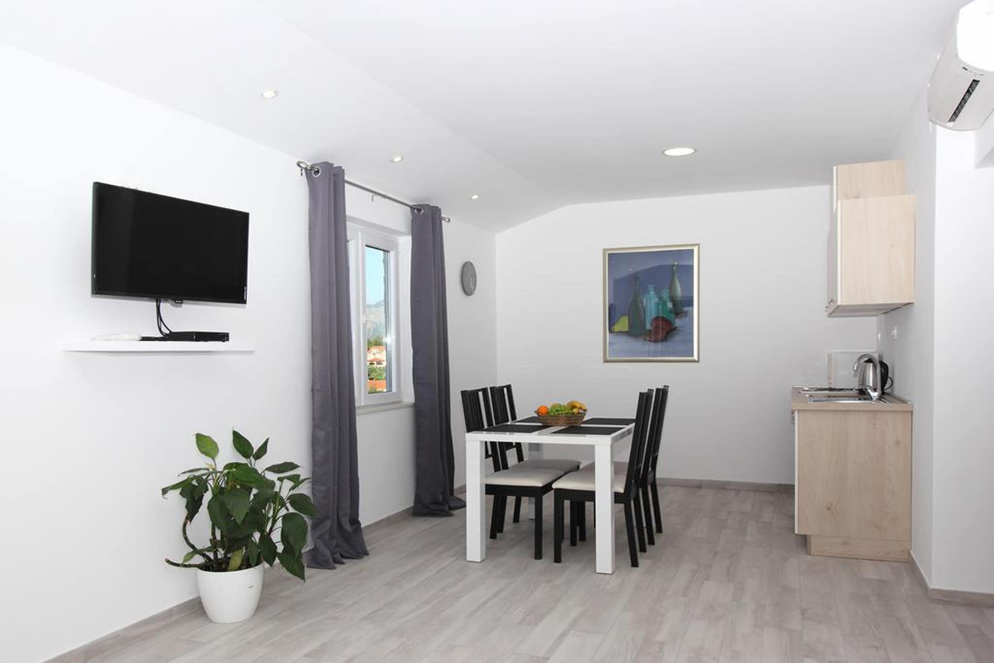 Set in peaceful Mocici, this modern 1-bedroom apartment is perfect for up to 4 guests, making it ideal for couples, friends, or small families. The apartment offers a cozy retreat with access to free Wi-Fi, air conditioning, and everything you need for a comfortable stay. Guests can also enjoy a tasty barbecue in the shared outdoor area. Step onto the balcony or patio to relax in the fresh air and take in the green surroundings. Inside, the kitchen comes fully equipped with an electric kettle, microwave, cooker, and refrigerator, while other thoughtful amenities include a hairdryer, iron, and a cot on request. On sunny days, lounge under the parasol with your favorite drink. With restaurants just 100 meters away and Cavtat’s sandy beach only 3 km from the property, there's plenty to explore. The famous Old Town of Dubrovnik is just 15 km away, and the Dubrovnik Airport is a short 2 km drive, making this a convenient base for your Adriatic getaway.