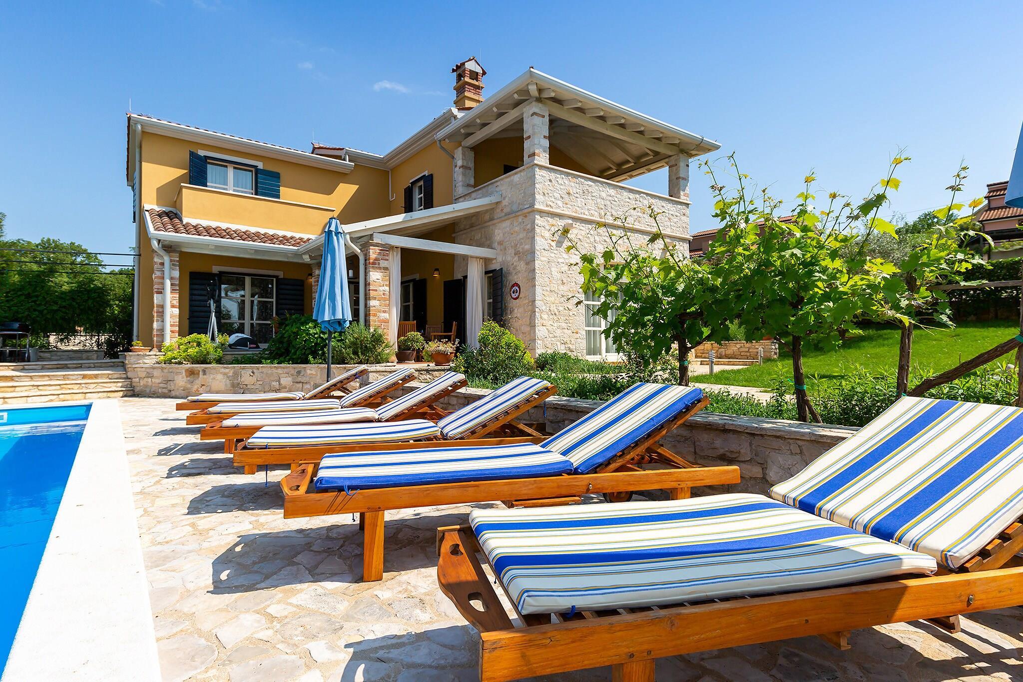 This charming villa in Montižana offers a homely atmosphere with 4 bedrooms, comfortably accommodating up to 8 guests. The 220 m² villa is bright and spacious, featuring a beautiful garden and a private swimming pool. Located just 9 meters from the rocky Porec beach, the property is perfect for beach lovers. The villa is also conveniently close to various attractions, including the Dino Park, Aquacolors water park, and the Fuente sand beach, all within 6 km. Guests can also visit the nearby towns of Porec and Vrsar, both around 7 km away, with shops, restaurants, and entertainment options. Nature and adventure enthusiasts can explore the Mirna River (25 km), the Istralandia water park, and the Istarske Toplice thermal springs. The villa is also ideally located for excursions to the Briuni Islands nature reserve, 50 km away. The peaceful and family-friendly surroundings, with forests nearby, provide a serene setting for relaxation while still being close to exciting attractions and activities. The villa is equipped with modern amenities, including an independent kitchen with essential appliances, Wi-Fi, air conditioning, and central heating. The spacious living areas include a cozy fireplace, a hot tub, and a terrace with outdoor furniture, perfect for enjoying meals or lounging in the fresh air. With its tranquil location and proximity to the beach and local attractions, this villa is an ideal retreat for families seeking both relaxation and adventure in Istria.