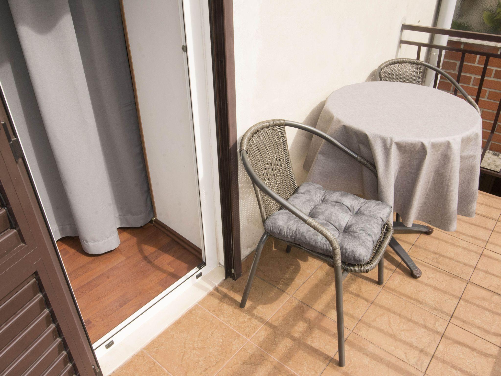Ferienwohnung bietet Platz für 2 Gäste. Die Betten sind in Schlafzimmern, die es 1 gibt, innerhalb einer Gesamtfläche von 28m2, angeordnet. Die Gäste haben eine eigene Terrasse zur Verfügung, auf der sie in warmen Sommernächten genießen können. IM PREIS INBEGRIFFEN: Kurtaxe, Endreinigung, Klimatisierung, Parkplatz, Internet, Bügeleisen, Bügelbrett, Föhn. VERBINDLICHE ZUSÄTZLICHE KOSTEN: Aufzahlung für Kurzaufenthalte (prozentualer Zuschlag pro Nächtigungsanzahl: 30% - 1, 20% - 2, 10% - 3). Die Verfügbarkeit zusätzlicher Dienstleistungen in Ihrem reservierten Termin und die Preise derselben (falls nicht aufgeführt) müssen im Voraus überprüft werden. Zusätzliche Dienstleistungen die in der Zahlungsaufforderung nicht aufgeführt sind werden direkt beim Vermieter bezahlt, angenommen der Gast nutzt auch diese. Ermäßigung auf den Grundpreis: Gratistag 21=19 (bei einem Aufenthalt von 21 Tagen oder mehr erhalten Sie 2 Gratistage für den Aufenthalt bis 31.12.26).