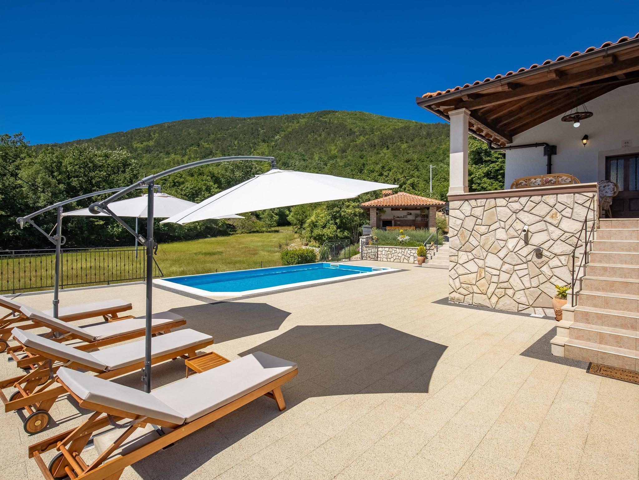 Haus 18442 im Ort Rošici, Opatija - Kvarner ist 7,1 km vom Meer entfernt. Der nächste Strand zu dieser Unterkunft ist ein Kiesstrand. Dieses Haus befindet sich in der Kategorie Objekte mit Schwimmbad. Da sich im Objekt keine weiteren Unterkunftseinheiten befinden, werden nur Sie sich dort aufhalten. Während Ihres Urlaubes, wohnen die Hausbesitzer nicht im Objekt. Der Eigentümer ist nicht verpflichtet, zusätzliche unangemeldete Personen und Haustiere zu akzeptieren. Sie sollten im Voraus bekannt gegeben werden. INHALT