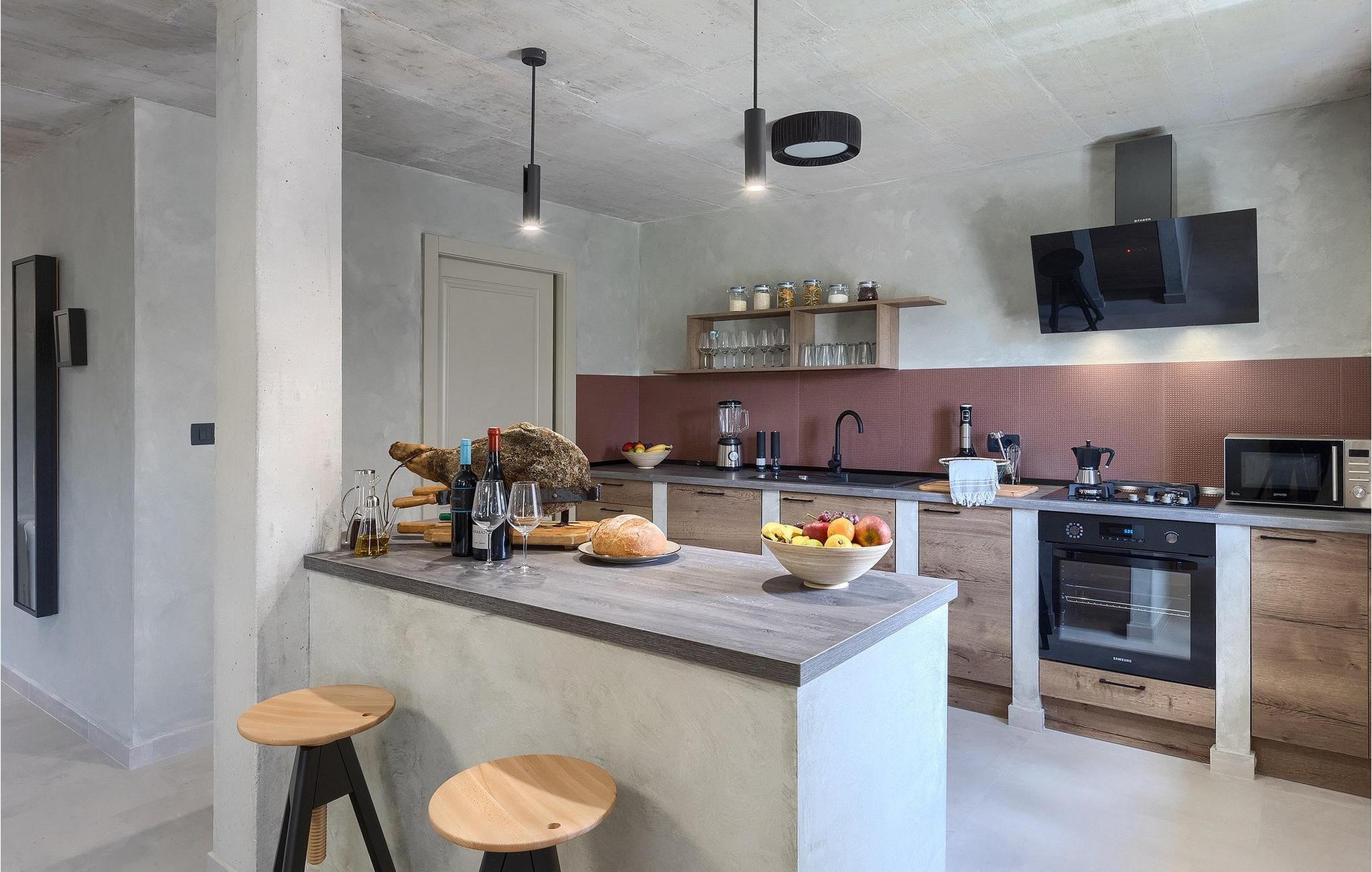 Umgeben von Natur? Weit von der Hektik der Stadt? Luxuriös? Gemütlich? Casa Jovanin bietet wirklich alles an! Diese ganz neue Villa liegt in einem kleinen Dorf in Zentralistrien und kann problemlos 12 Personen beherbergen, wobei alle Reiseteilnehmer die Möglichkeit haben werden, Ihre Privatsphäre auch im Urlaub zu genießen. Die Villa und das Grundstück haben 3 Etagen. Auf der niedrigsten Etage befindet sich der einladende Pool. Erfrischen Sie sich mit einem Sprung in das Wasser oder genießen Sie die Sonne auf den bequemen Sonnenliegen. Die gut ausgestattete Sommerküche hat eine erhöhte Lage und damit einen Blick auf den Pool. Hier finden Sie einen Kühlschrank sowie einen Esstisch, damit Sie Ihre Mahlzeiten auch im Freien genießen können. Die Sommerküche hat auch einen Holzkohlegrill - werden Sie zum Grillmeister während Ihres Urlaubs!