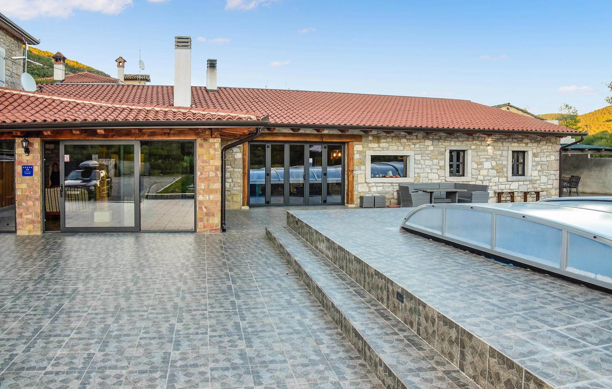 Auf dem großen Grundstück befindet sich eine geräumige Terrasse mit privatem Pool, der in den kälteren Monaten überdacht und beheizt werden kann. Im Außenbereich steht Ihnen auch eine Sitzecke sowie ein Steingrill zur Verfügung, aber das Besondere an dieser Villa ist ein großer Garten, wo Sie den atemberaubenden Blick auf die märchenhafte Natur genießen können.