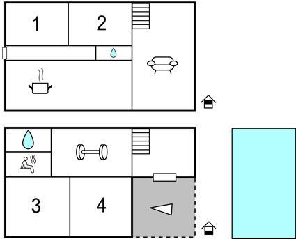 Schlafzimmer (nr. 4) - 1 Schlafmöglichkeit. (Einzelbett(en)). 2 Schlafmöglichkeiten. (Doppelbett(en)).