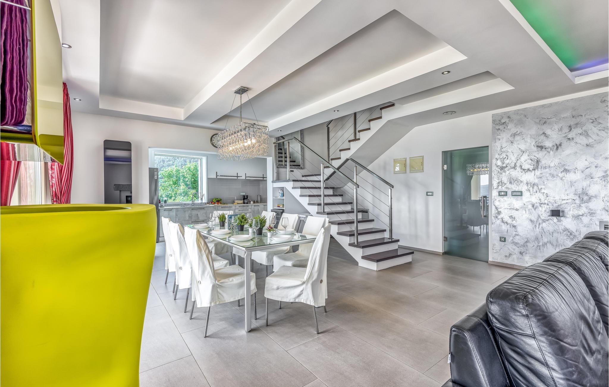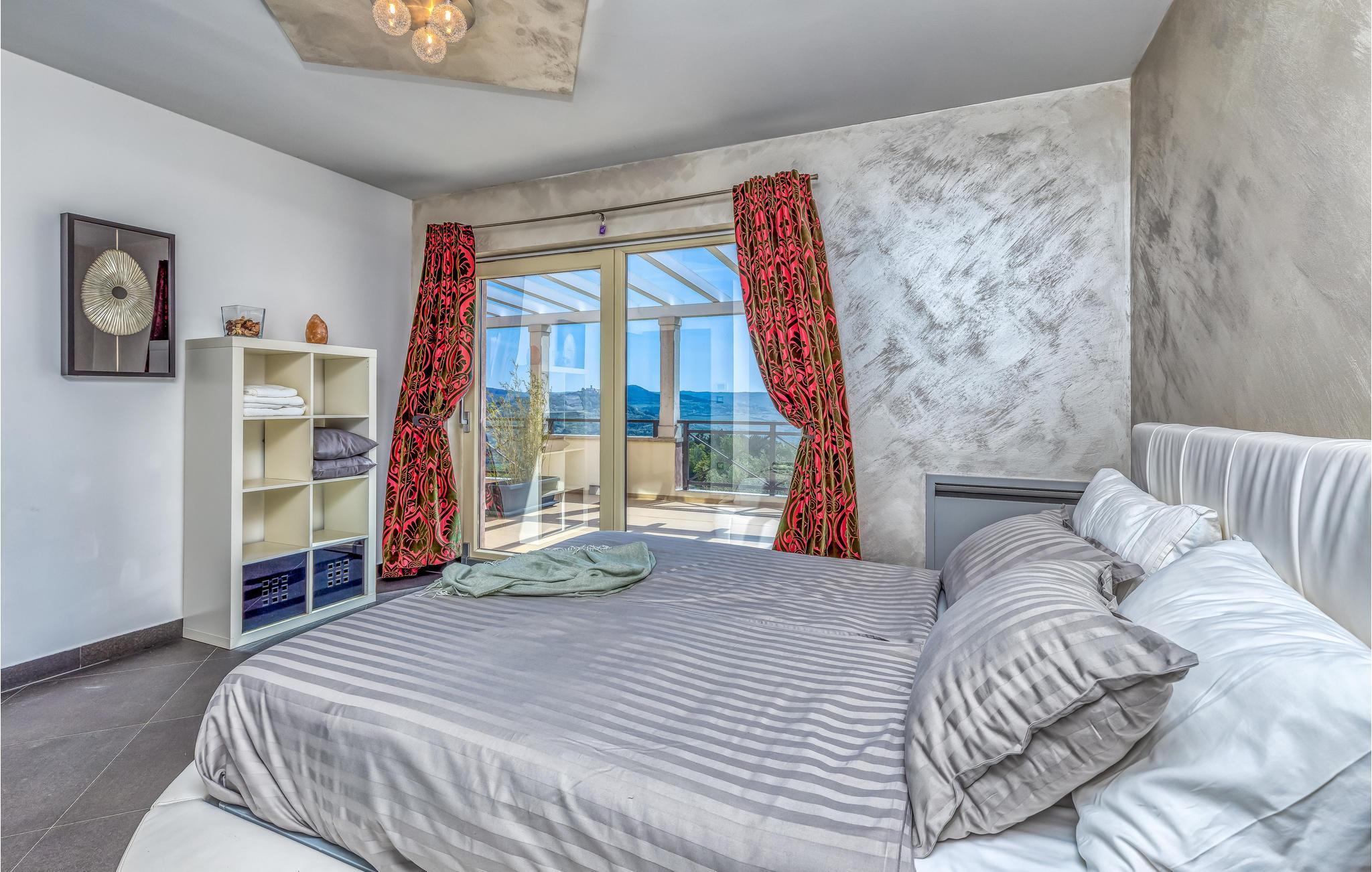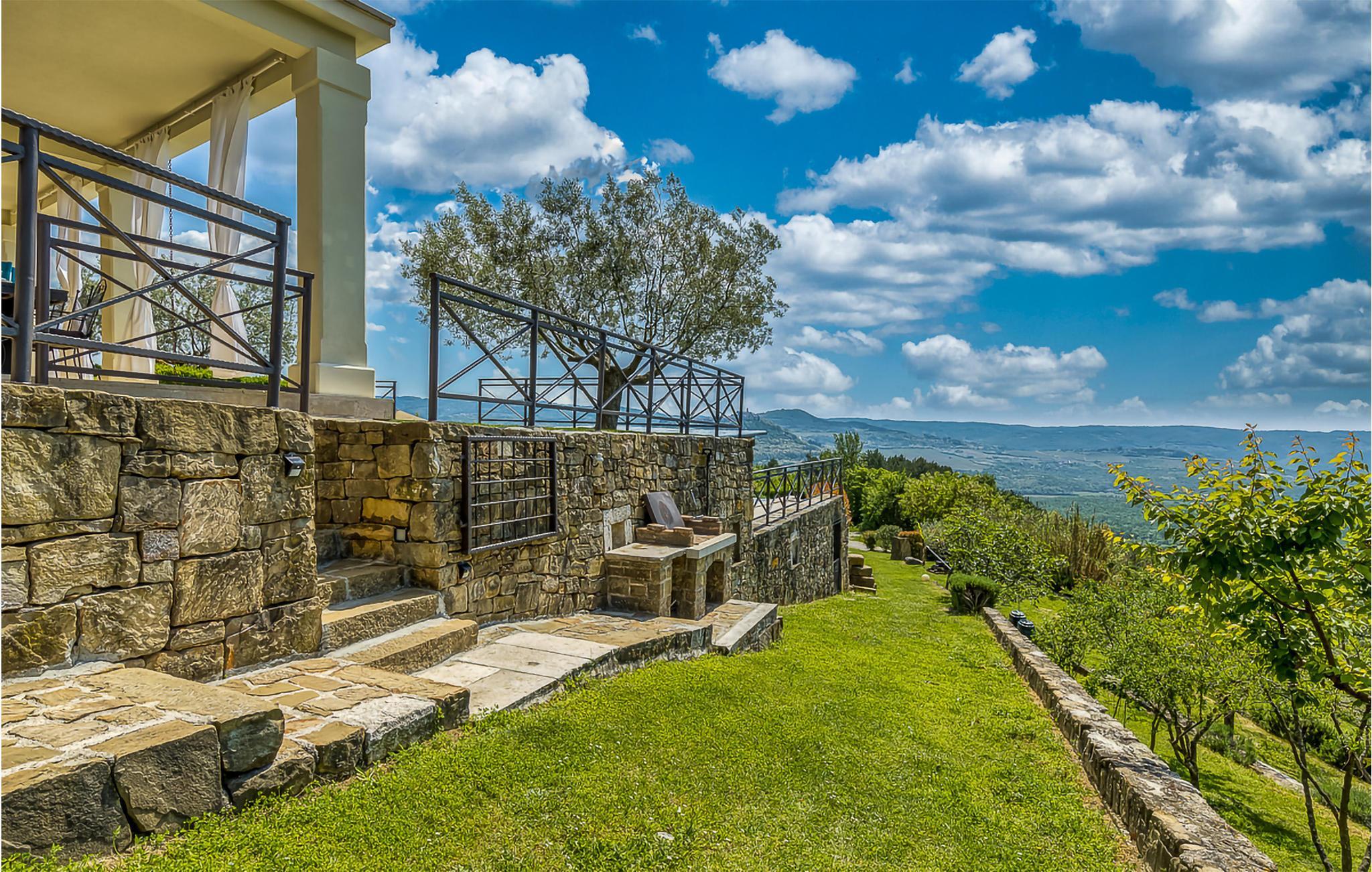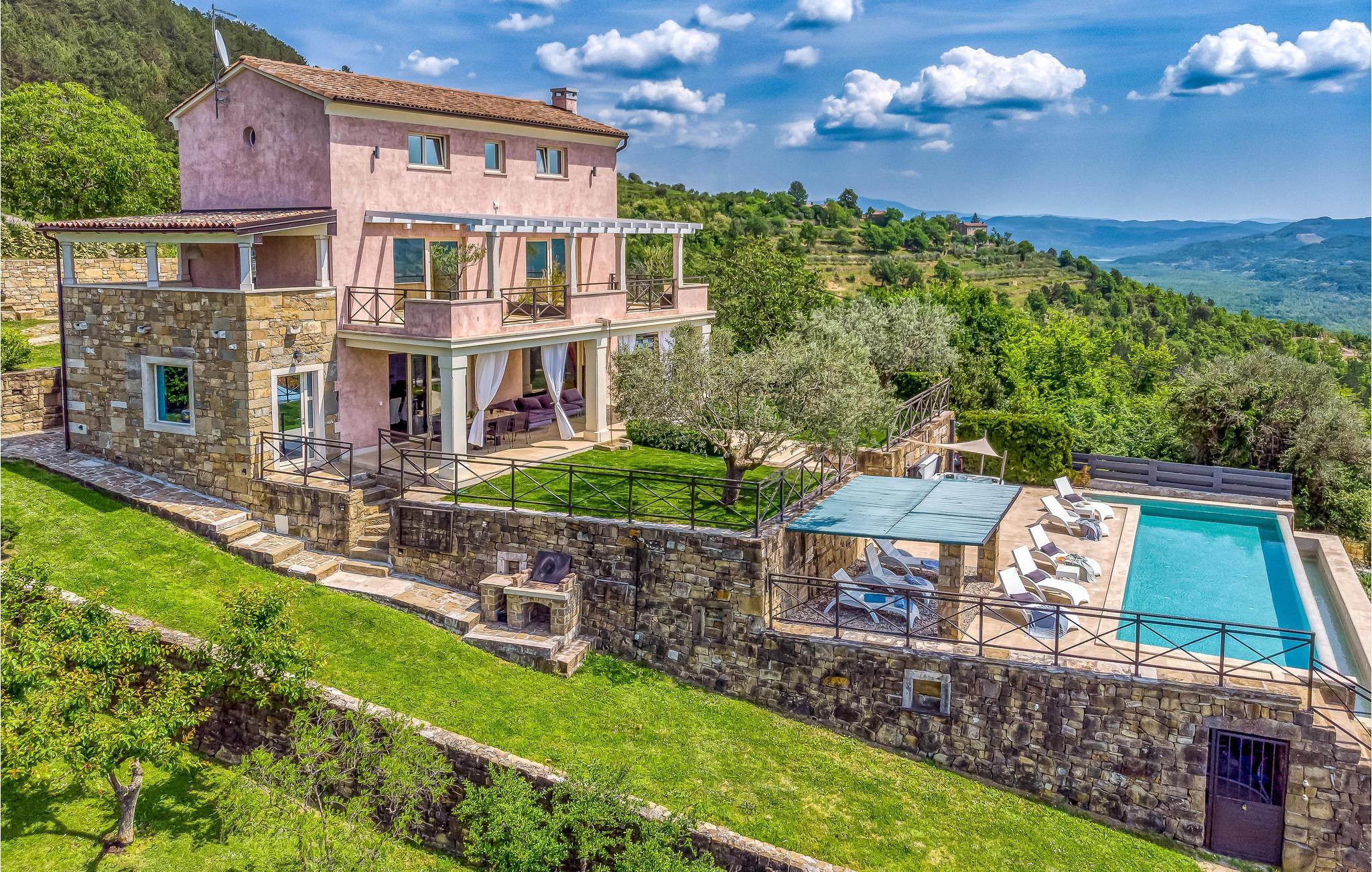 Wenn Sie sich nach einem Urlaub in ruhiger Umgebung sehnen, dann ist dieses schöne Ferienhaus die richtige Wahl für Sie. Sie haben hier auch eine Aussicht auf das Flusstal Mirna, den See Butonega oder die berühmte Stadt Motovun. Sie wohnen am Dorfrand und 280 Metern über dem Meeresspiegel, oberhalb vom Ort Livade. Hier ist das Klima sehr mild. Genießen Sie vom Haus den Panoramablick auf die Landschaft und die unberührte Natur. Das Anwesen ist von einer Steinmauer umgeben, die Privatsphäre bietet. Darüber hinaus gibt es einen offenen Garten von 2000 m², wo viele Obstbäume und Kräuter mit ihrem Duft entspannend auf Körper und Geist wirken. Vor dem Haus gibt es den großen Salzwasser-Pool und Whirlpool, die Erfrischung während der Sommerhitze bringen werden. Am Abend können Sie auf einer der schönen Terrassen einen herrlichen Blick auf den Sternenhimmel werfen. Der Garten fällt in Kaskaden, die mit Stein-Treppen verbunden sind. Das Haus wurde im venezianischen Stil renoviert und mit modernen Möbeln ausgestattet. Es ist voll klimatisiert und von jedem Zimmer und Wohnzimmer bietet sich ein Panoramablick auf die Landschaft. Nicht nur die Anlage wird Ihnen Freude bringen, sondern auch das Kulturerbe dieser Region. Schauen Sie sich den Wasserfall in der Nähe des Hauses an, der auch während des Sommers Wasser hat. Kosten Sie die leckeren Spezialitäten dieser Gegend, zu denen Trüffelgerichte gehören und entdecken Sie die Geschichte mit Hilfe des Museums Prenzane, Loggia Oprtalj und Festung von Motovun. Begeben Sie sich auf die Parenzana - mit dem Fahrrad oder zu Fuß – sie erstreckt sich zwischen Groznjan und Vizinada. Reitpferde und Wellness zum Buchen gibt es bereits in einem Abstand von wenigen Kilometern.
